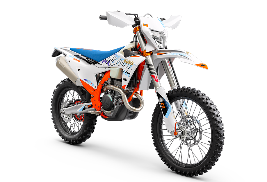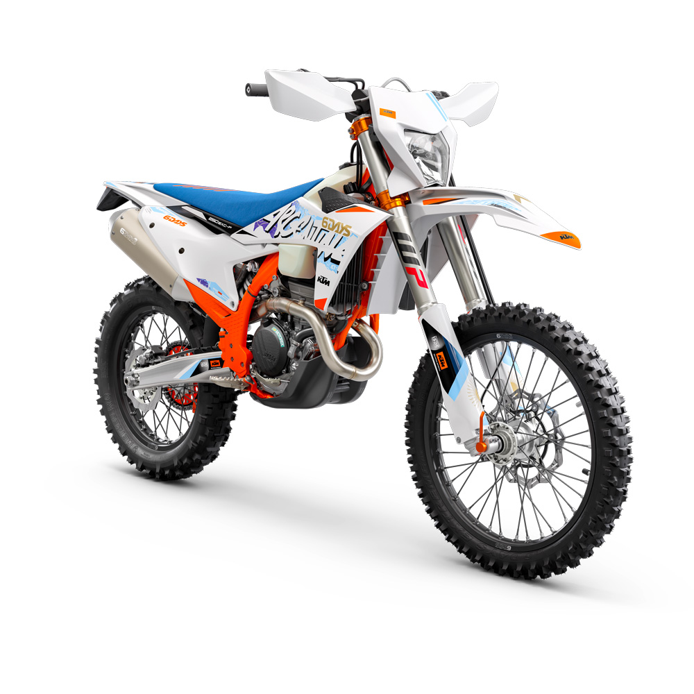 Die KTM 250 EXC-F SIX DAYS mag vielleicht den kleinsten Motor im 4-Takt-Stall von KTM haben, aber wenn es hart auf hart kommt, zeigt sie, was sie draufhat. Ein komplett neues, leichtes Fahrgestell, eine unglaubliche Drehzahlbegrenzung und ein vertrauenserweckendes Fahrverhalten machen sie zum echten Enduro-Helden. Ein Blick auf den beeindruckenden Trophäenschrank und die ebenso beeindruckenden Verkaufszahlen reicht aus, um zu beweisen, dass die KTM 250 EXC-F SIX DAYS 2024 keine halben Sachen macht.