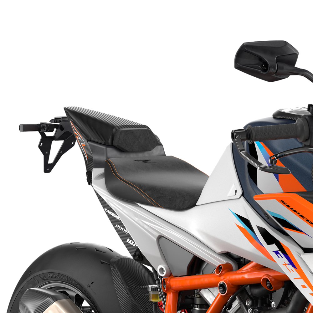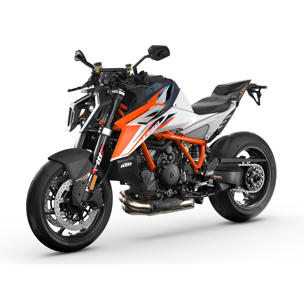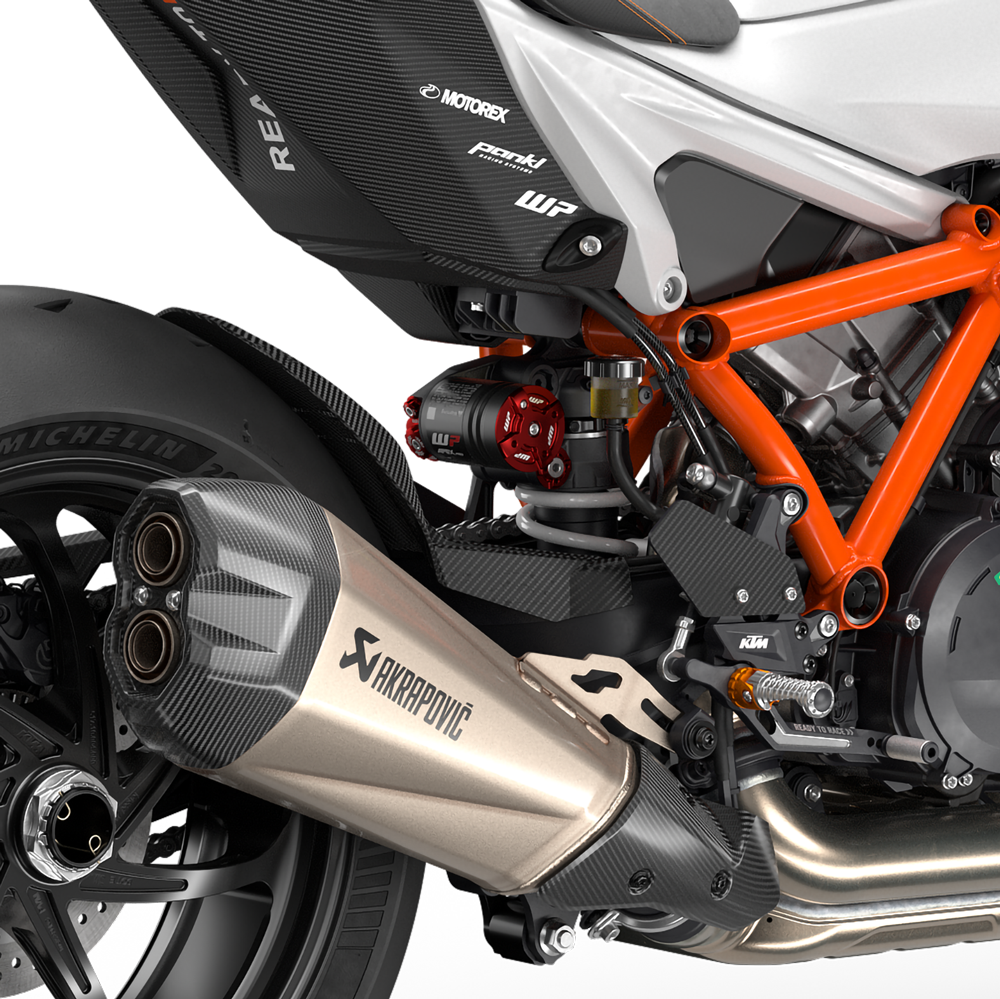 Du willst das Rezept für pure, unverfälschte NAKED-Performance? Nimm einen furchterregenden 1350ccm V-Twin Motor mit CAMSHIFT Technologie. Füge ein erhabenes Fahrwerk mit leichten 7-Speichen-Schmiederädern hinzu, die mit Michelin Power GP Hypersport-Gummi ummantelt sind und für Agilität sorgen. Dann greifst du nach dem obersten Regal und fügst eine Prise WP PRO COMPONENTS aus der MotoGP mit frisch gepressten BREMBO Bremsen hinzu. Zu guter Letzt wird das Ganze mit einem kompletten Satz Karbonteile für zusätzliche Exklusivität kombiniert und mit dem komplettesten Elektronikpaket, das es je bei einer KTM gab, serviert. Das Ergebnis? Begrüße die KTM 1390 SUPER DUKE RR – ein Einsitzer, der nur darauf wartet, entfesselt zu werden.