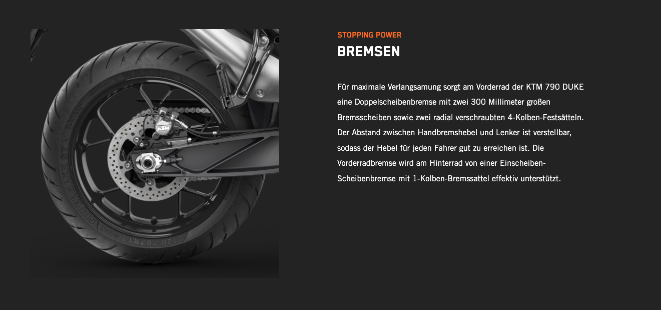| Bremse vorne | 2× radial montierter Vierkolben-Bremssattel |