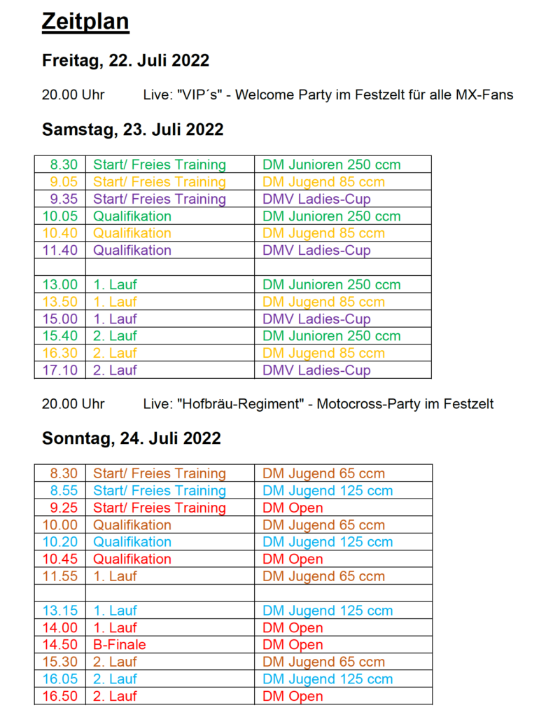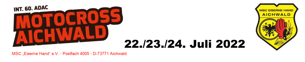 Der Motorsportclub „Eiserne Hand“ e. V. Aichwald wird in diesem Jahr fünf deutsche Meisterschaften durchführen: Die DM Open, die Deutsche Motorcross-Junioren-Meisterschaft 250 ccm, die Deutschen Jugend-Motocross-Meisterschaften 125ccm, 85ccm und 65 ccm. Das Ganze wird mit dem DMV MX Ladies-Cup abgerundet.