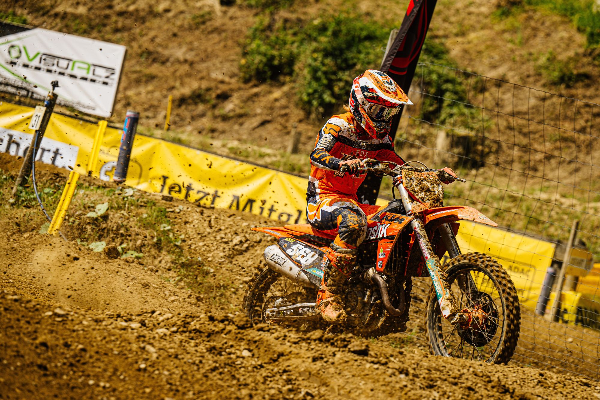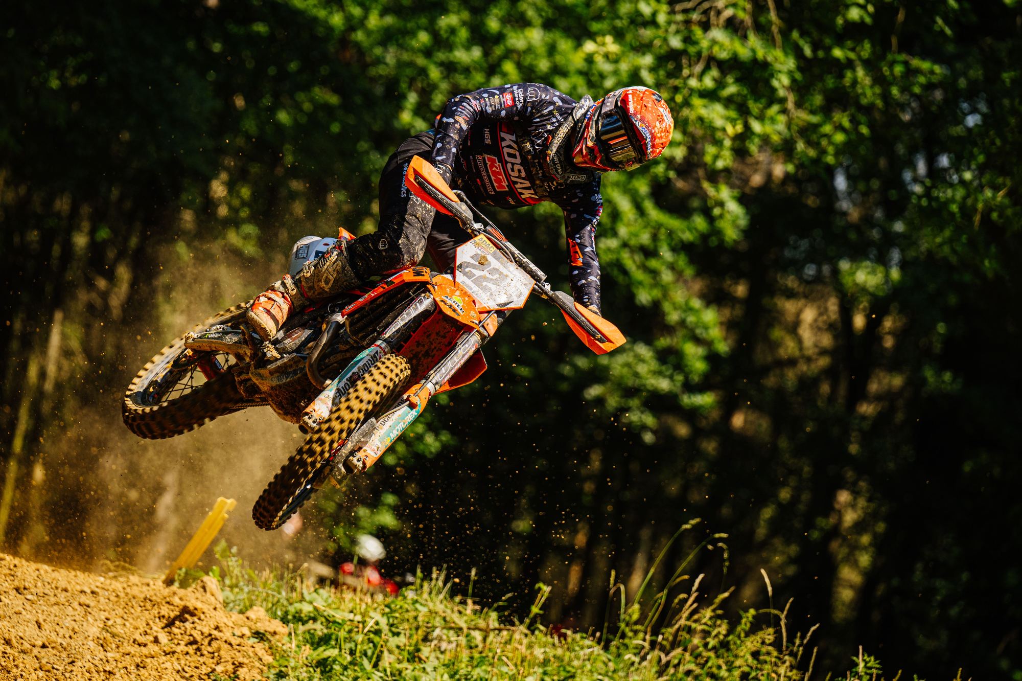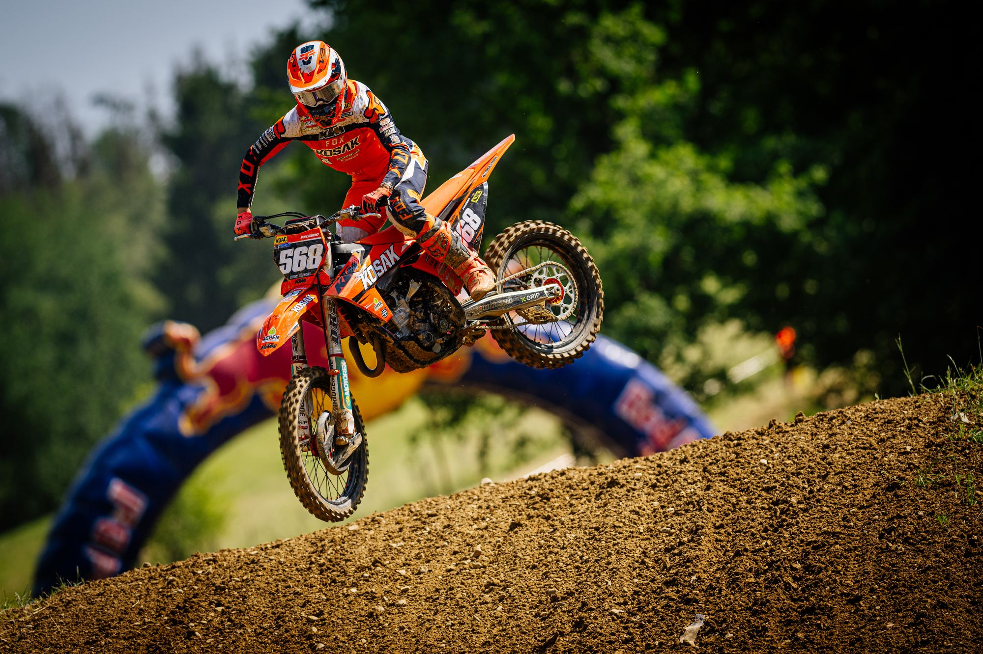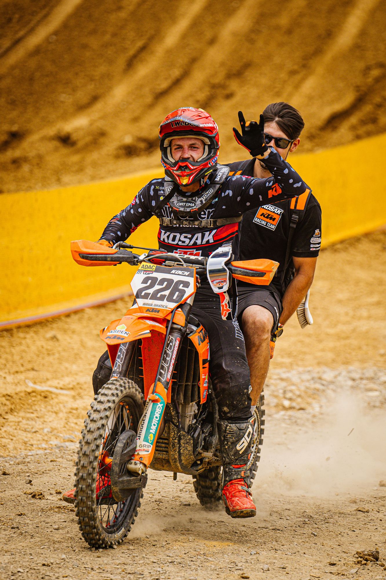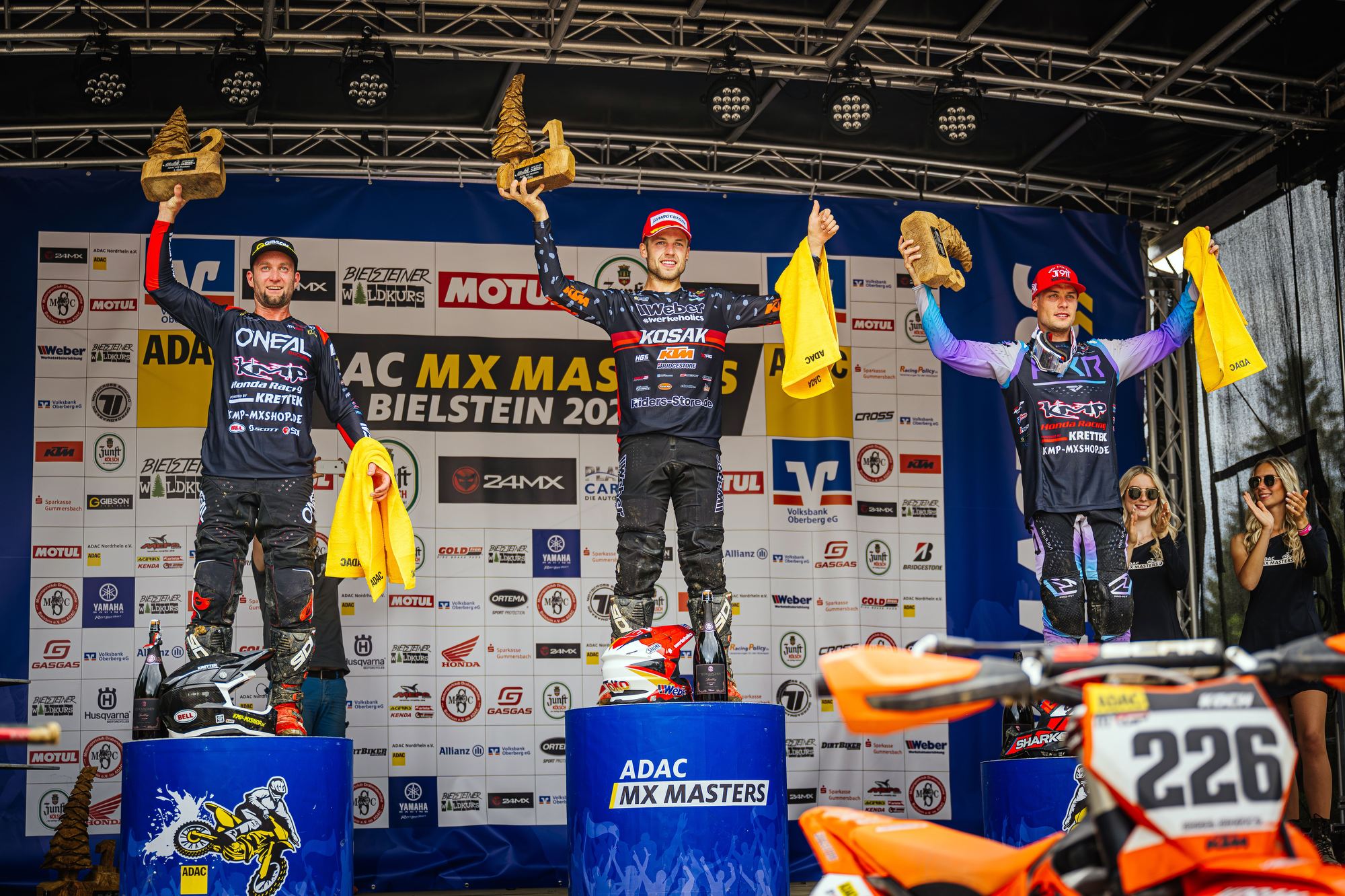 Auch der Start in das dritte Rennen gelang Tom Koch wieder super. Sofort fuhr er auf der anspruchsvollen Strecke wieder auf dem zweiten Platz und konnte dem Führenden einige Runden folgen, kam aber für einen Überholversuch nicht nahe genug heran. In der Box wurde gerechnet, dass bei diesem Rennverlauf der zweite Platz für den Gesamtsieg reicht. Tom begnügte sich damit den zweiten Platz zu halten und sicher ins Ziel zu bringen. Die Rechnung ging auf und er wurde mit einem Punkt Vorsprung Tagessieger. Sichtlich zufrieden zeigte er sich nach der Siegerehrung „Der zweite Gesamtsieg bei einem ADAC MX Masters innerhalb von zwei Wochen ist schon der Hammer, so kann es weiter gehen. Es zeigt mir, dass ich auf dem richtigen Weg bin. Vor unserem Zeittraining wurde die Strecke gut gewässert, da war es stellenweise sehr rutschig. Daher ist mein zweiter Platz in der Quali ok. Die nächsten Masters Rennen sind erst Anfang August in Gaildorf. Vorher stehen noch im Juli WM Rennen in Tschechien, Belgien, Finnland und gleich nach Gaildorf Schweden in meinem Kalender. Aber nun freue ich mich auf einen Gaststart bei den DM Open in Aichwald.“ Bei der Halbzeitmeisterschaft liegt Tom Koch nun auf dem Zweiten Platz.