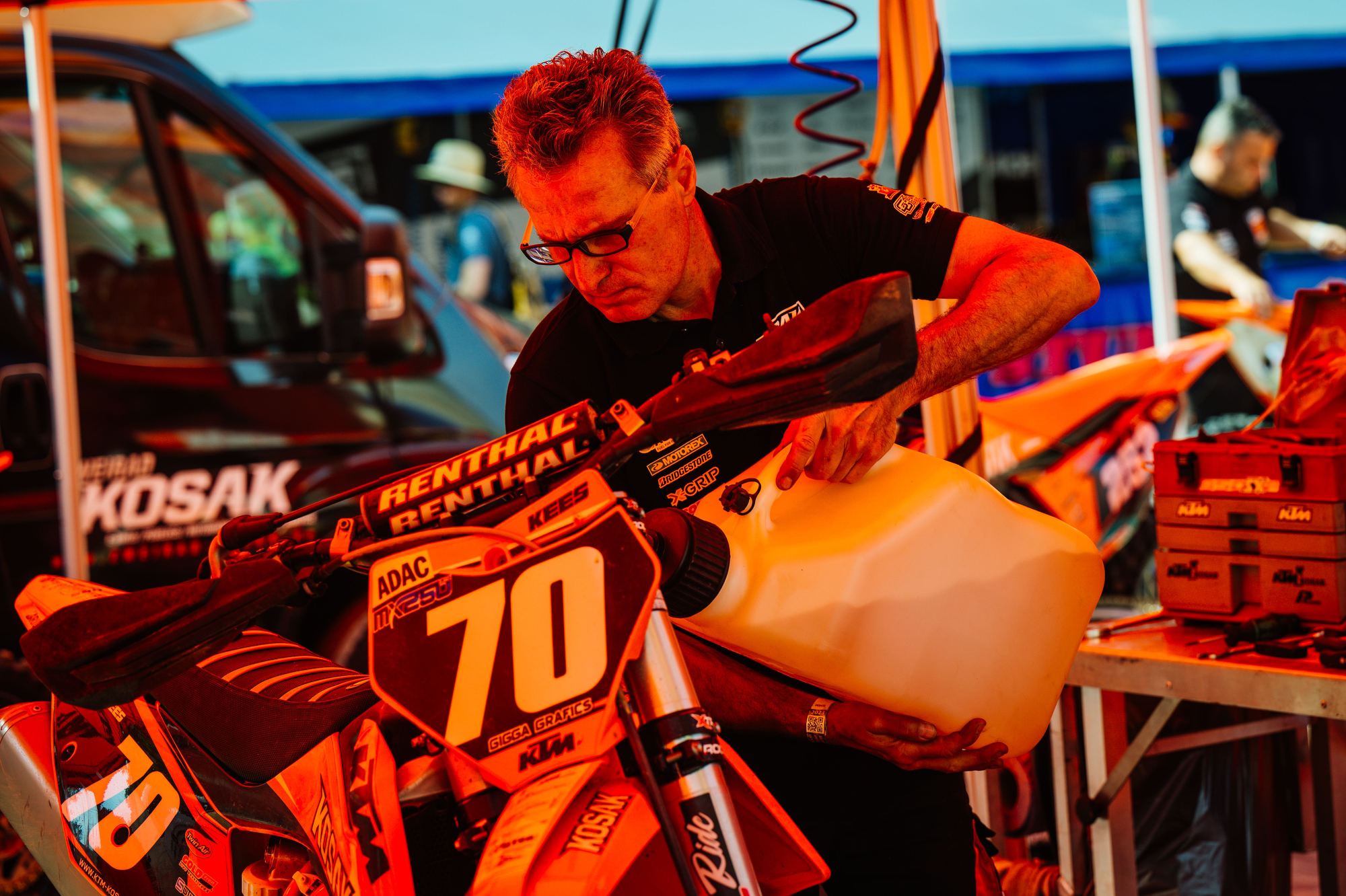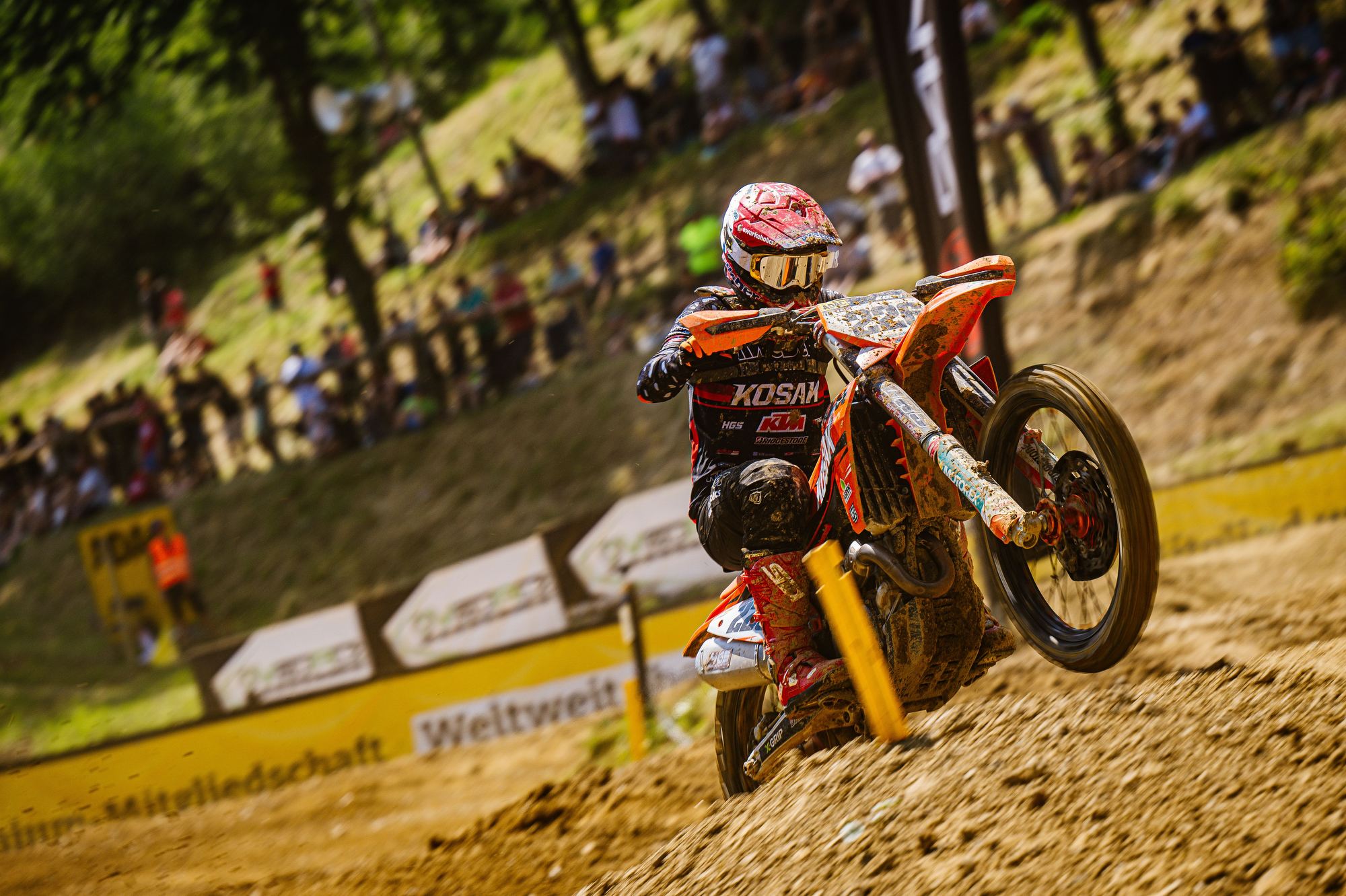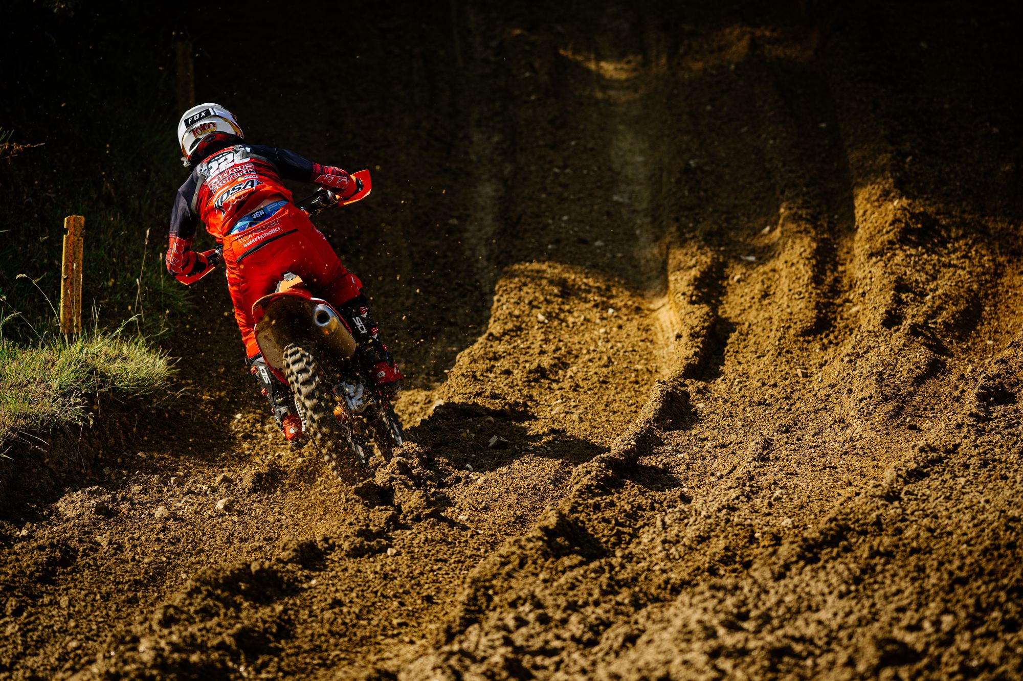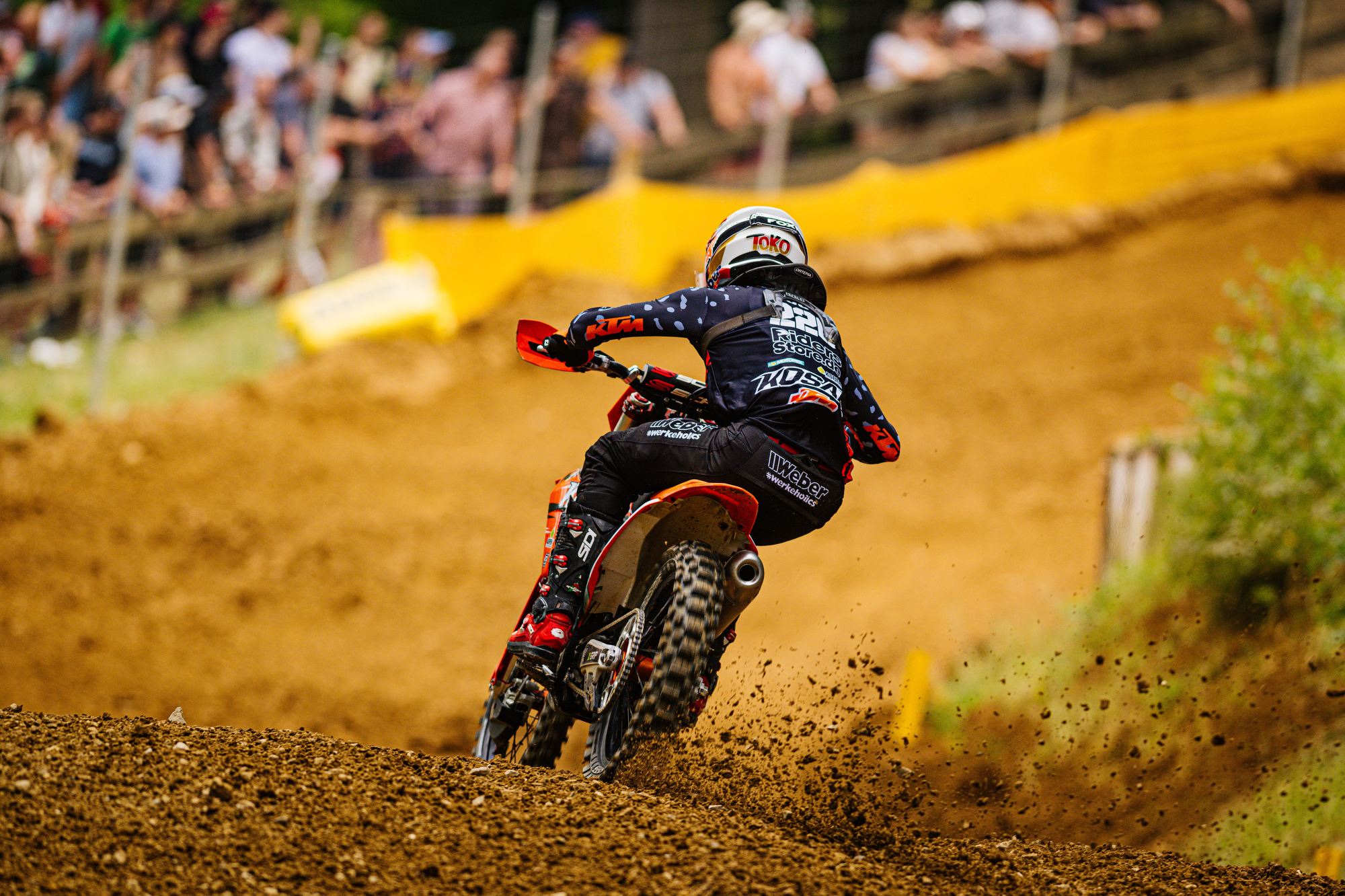 Auch der Start in das dritte Rennen gelang Tom Koch wieder super. Sofort fuhr er auf der anspruchsvollen Strecke wieder auf dem zweiten Platz und konnte dem Führenden einige Runden folgen, kam aber für einen Überholversuch nicht nahe genug heran. In der Box wurde gerechnet, dass bei diesem Rennverlauf der zweite Platz für den Gesamtsieg reicht. Tom begnügte sich damit den zweiten Platz zu halten und sicher ins Ziel zu bringen. Die Rechnung ging auf und er wurde mit einem Punkt Vorsprung Tagessieger. Sichtlich zufrieden zeigte er sich nach der Siegerehrung „Der zweite Gesamtsieg bei einem ADAC MX Masters innerhalb von zwei Wochen ist schon der Hammer, so kann es weiter gehen. Es zeigt mir, dass ich auf dem richtigen Weg bin. Vor unserem Zeittraining wurde die Strecke gut gewässert, da war es stellenweise sehr rutschig. Daher ist mein zweiter Platz in der Quali ok. Die nächsten Masters Rennen sind erst Anfang August in Gaildorf. Vorher stehen noch im Juli WM Rennen in Tschechien, Belgien, Finnland und gleich nach Gaildorf Schweden in meinem Kalender. Aber nun freue ich mich auf einen Gaststart bei den DM Open in Aichwald.“ Bei der Halbzeitmeisterschaft liegt Tom Koch nun auf dem Zweiten Platz.