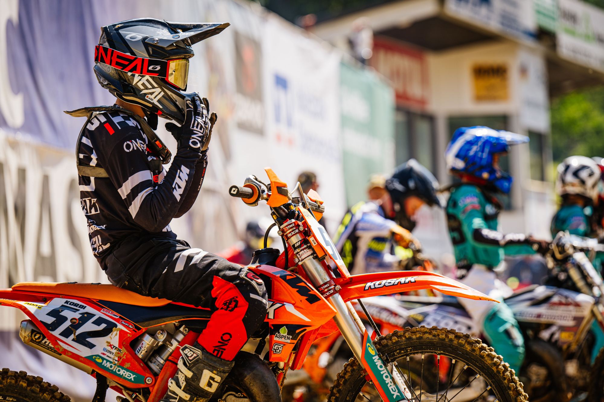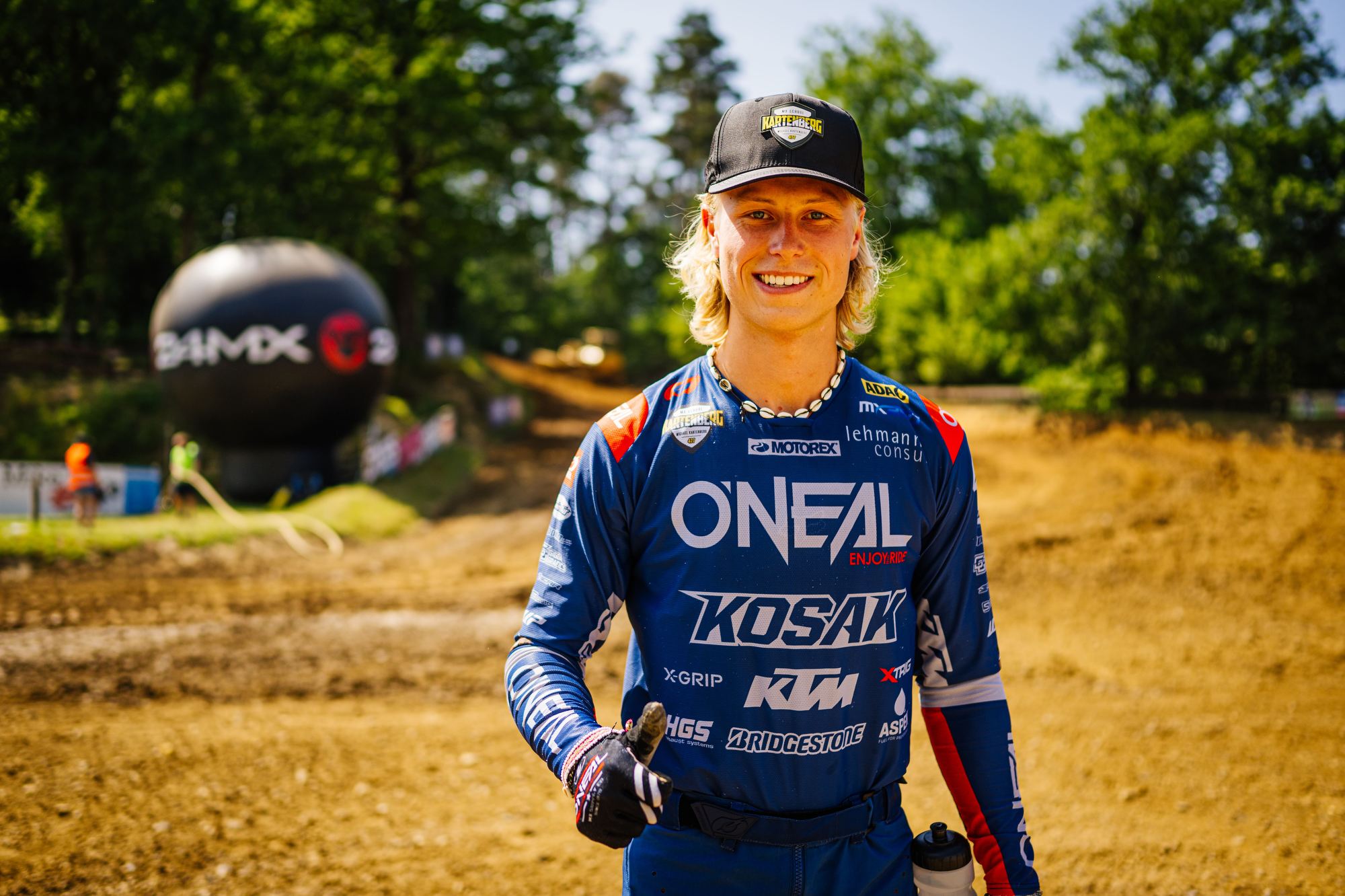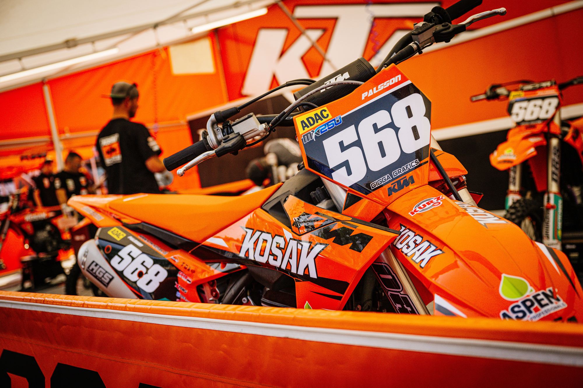 Bei den Youngstern kam Max Palsson in allen drei Läufen in den Punkterängen ins Ziel. Wobei sein vierter Platz im ersten Rennen eine starke Leistung war. Und das obwohl Hartboden nicht zu seinen Lieblingsterrain gehört. Paul Bloy kam in der Qualifikation auf den siebten Platz und Valentin Kees, der nach einer längeren Verletzungspause sein erstes Rennen fuhr, wurde Elfter. Kees hatte in den ersten Rennen einen guten Start und kam auf den Plätzen Neun und Zehn ins Ziel. Im dritten Rennen stürzte er und gab, um seine gerade verheilte Schulter zu schonen auf. „Ich bin ohne große Erwartung her gekommen und wollte einfach mal ohne Druck sehen wie es läuft“, grinste er nach den Rennen. Paul Bloy fiel im ersten Lauf, auf einem Punkteplatz fahrend hin und gab nach sechs Runden auf. Im zweiten Rennen passte nichts zusammen was Platz fünfundzwanzig zeigt. Dafür fuhr im dritten Rennen ein hochmotivierter Paul. Vom Start war er gut dabei und holte sich in der letzten Runde noch den elften Platz. Alle drei Teamfahrer werden am kommenden Sonntag bei der DM 250 Aichwald starten.