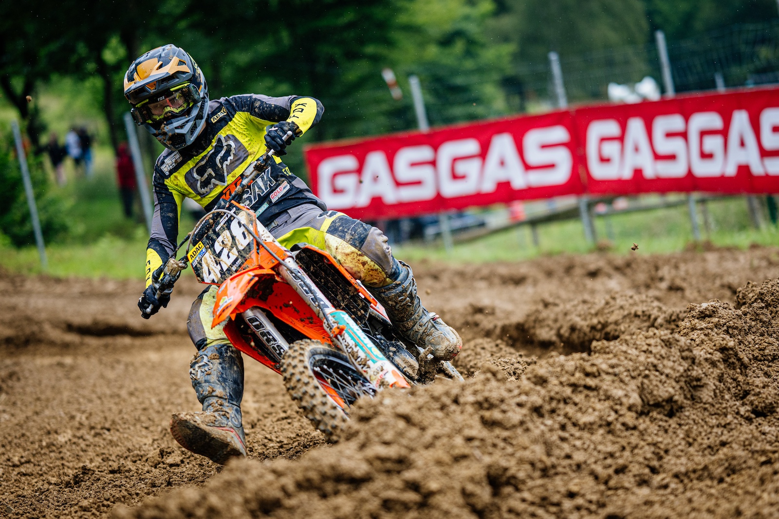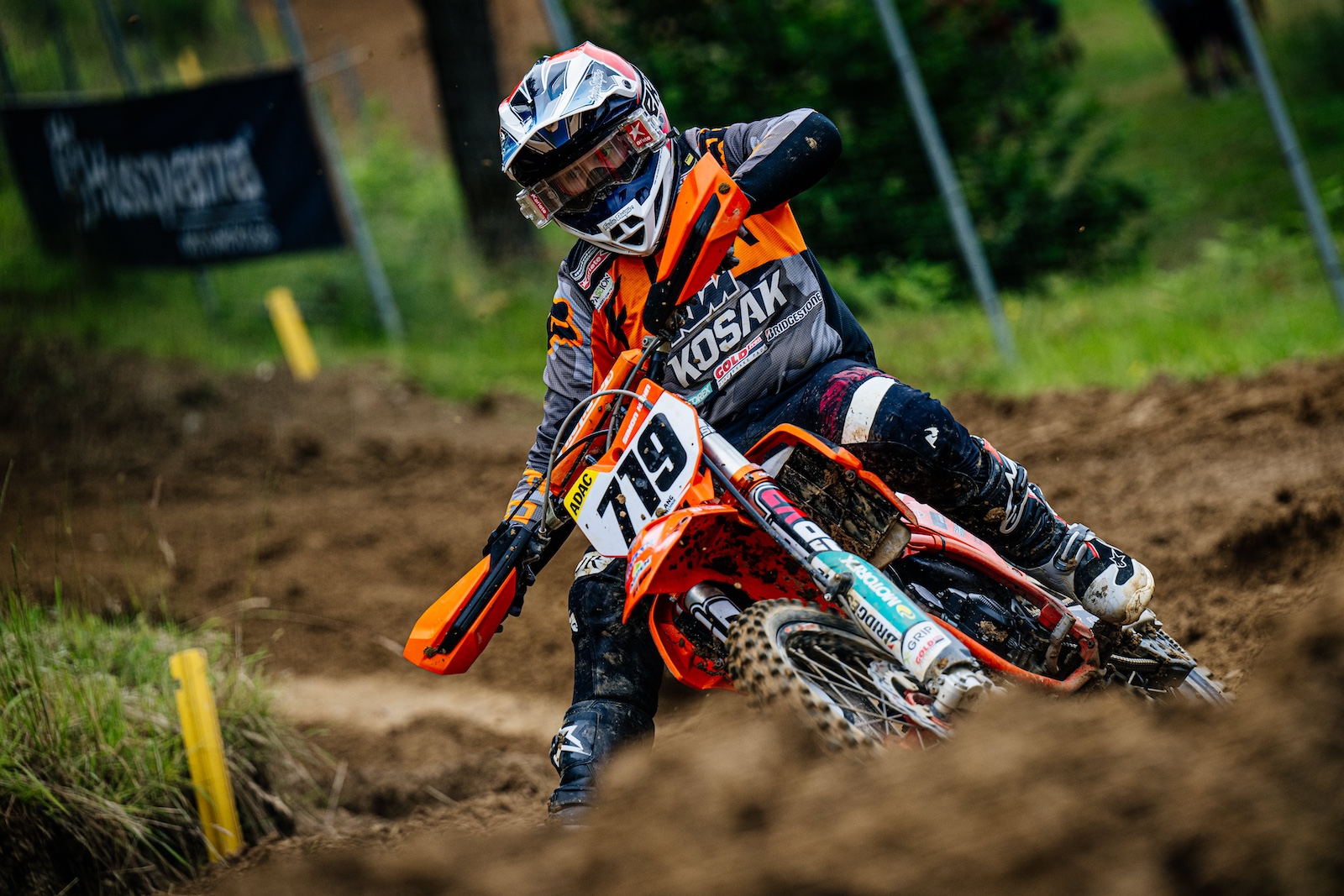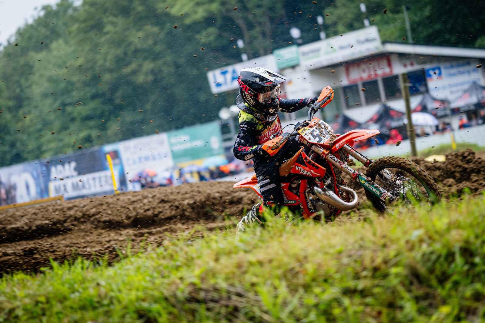 Das vierte Meeting zur diesjährigen ADAC MX Masters Serie war zu Gast auf dem traditionsreichen „Bielsteiner Waldkurs“, östlich von Köln gelegen. Der Hartbodenkurs wurde im vergangenen Jahr mit frischer Erde aufgefüllt, um die großen Steine zu verdecken. Doch der heftige Regen in den vergangenen Wochen hat fast alles wieder ausgespült und im Wald gab es einige sehr rutschige Stellen, die erhöhte Aufmerksamkeit forderten.