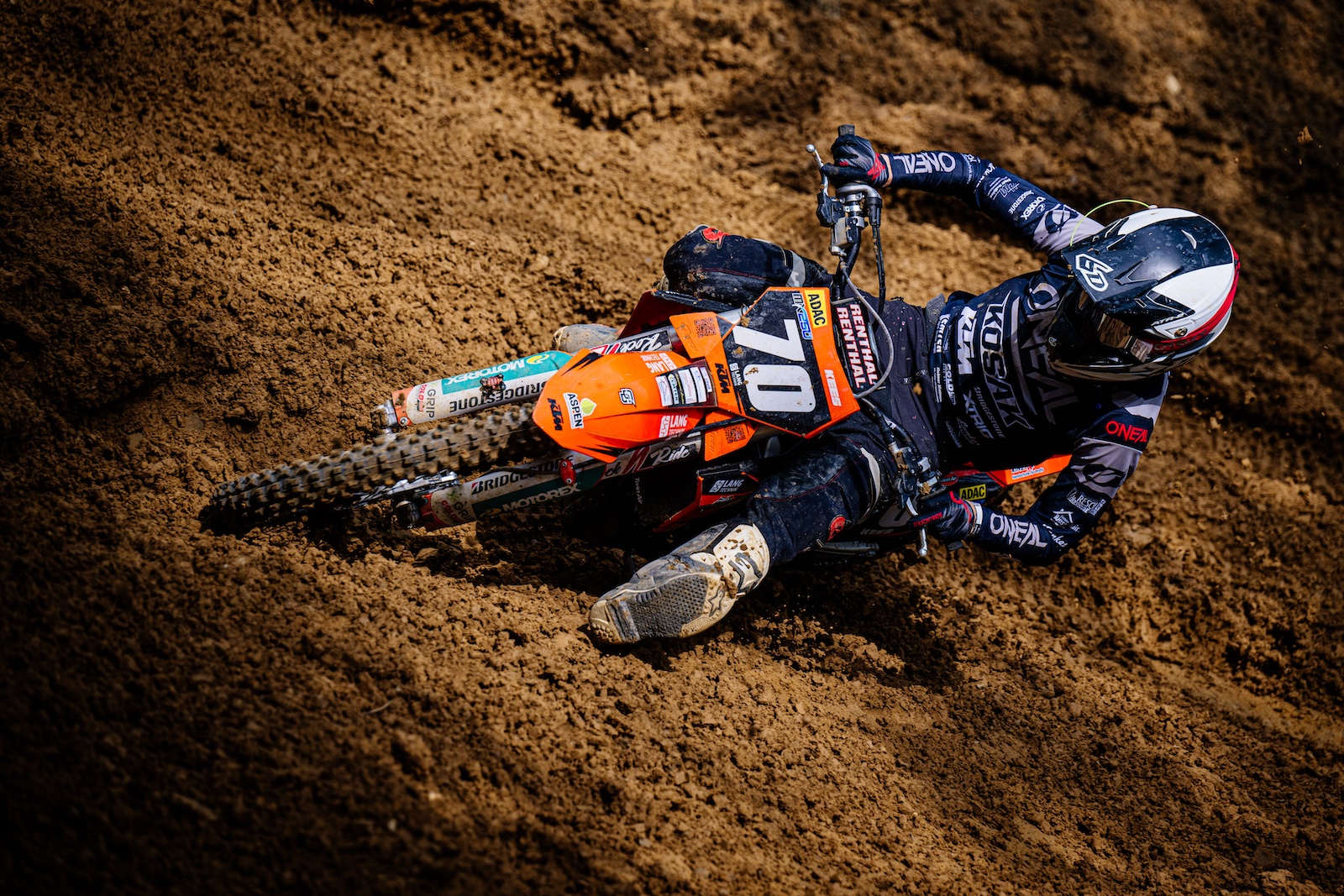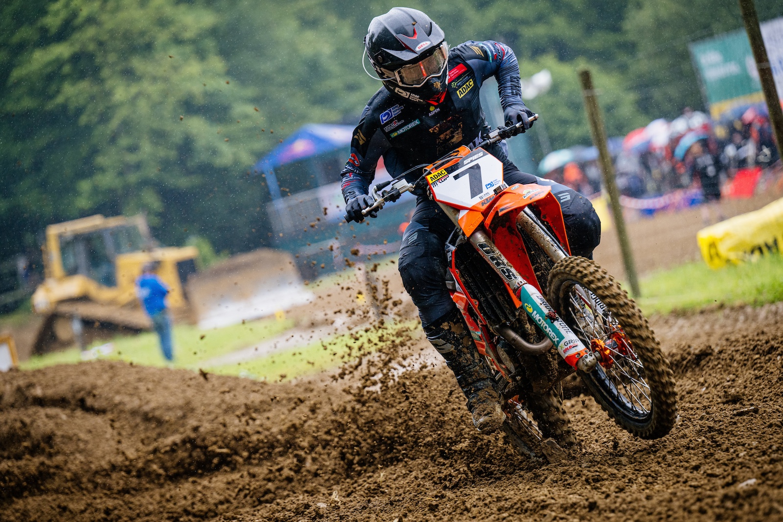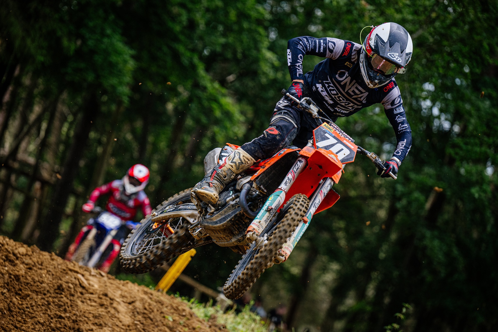 Das vierte Meeting zur diesjährigen ADAC MX Masters Serie war zu Gast auf dem traditionsreichen „Bielsteiner Waldkurs“, östlich von Köln gelegen. Der Hartbodenkurs wurde im vergangenen Jahr mit frischer Erde aufgefüllt, um die großen Steine zu verdecken. Doch der heftige Regen in den vergangenen Wochen hat fast alles wieder ausgespült und im Wald gab es einige sehr rutschige Stellen, die erhöhte Aufmerksamkeit forderten.