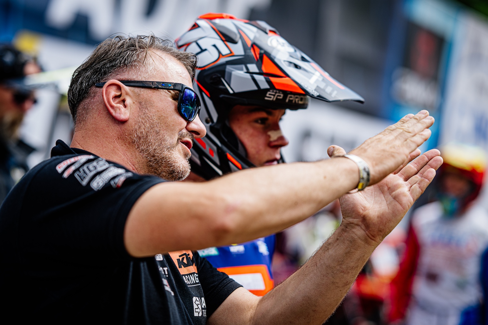 Im dritten Rennen kam Bradley als Sechster aus der ersten Runde zurück und brachte diese Position sicher ins Ziel. Dicht dahinter folgte Valentin, bis er durch einen Ausrutscher die Position verlor, aber noch Neunter werden konnte. Als Fünfter in der Tageswerte zeigte er sich zufrieden: „Der Speed war das ganze Wochenende mega gut. Auch wenn die Starts nicht jedes Mal zu 100% geklappt haben waren es trotzdem solide Ergebnisse“. Henry war nach dem Start wieder in den Top Ten zu finden. Im weiteren Rennverlauf musste er ein paar Gegner ziehen lassen, aber konnte sich für den siebzehnten Platz noch Punkte sichern. Auch er konnte seinem Auftritt, trotz des Ausfalls positives abgewinnen: „Endlich wieder Hartboden! Im ersten Lauf hatte ich einen sehr guten Start, konnte zunächst in den Top Ten fahren und dann ist mir auf Platz 13 liegend die Kette gerissen. Dabei bin ich knapp einem großen Sturz entgangen. Im zweiten Lauf war der Start nicht ganz so gut, jedoch konnte ich mich direkt gut durch mogeln und mein Rennen auch solide auf Platz 15 beenden. Im dritten Lauf war der Start wieder sehr gut und ich konnte wieder mich auf Platz 10 vorarbeiten und dort kämpfen. Jedoch haben mir am Ende ein wenig die Körner gefehlt, um ein richtig gutes Ergebnis raus zu hauen. Gesamt war ich am Ende auf Platz 19 womit ich sehr zufrieden bin“.
