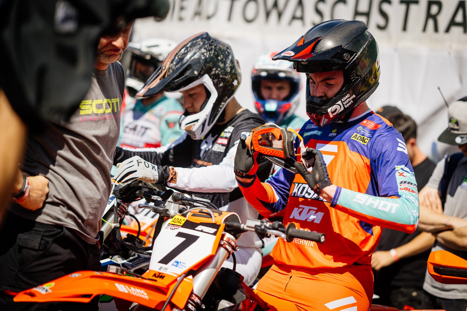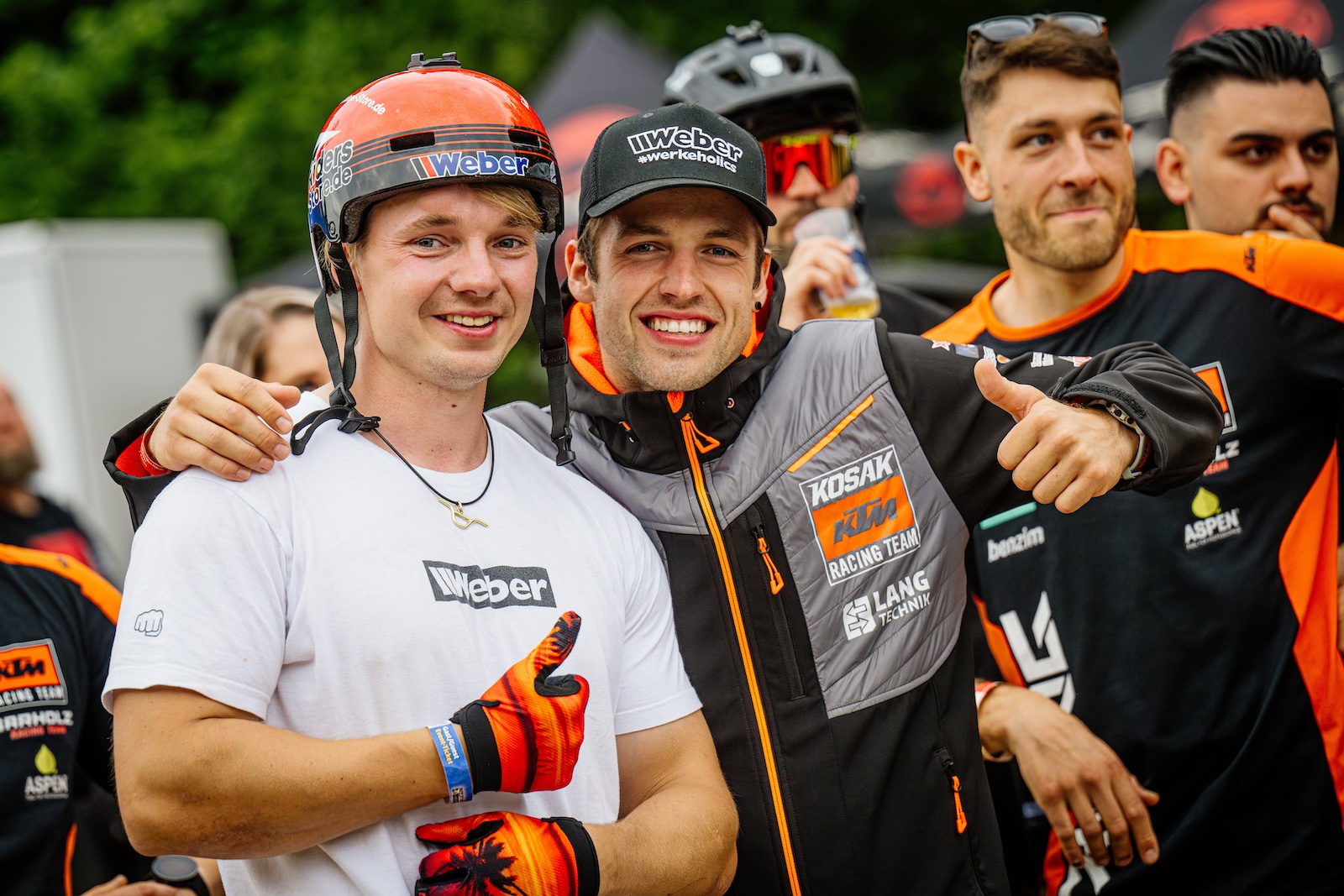 Am Sonntag hatte der Sommer auf dem Waldkurs Einzug gehalten und für entsprechende Temperaturen gesorgt. Im zweiten Rennen, das nach der Mittagspause gestartet wurde, war Tom Koch auf der fünften Position fahrend gut dabei. Doch nach wenigen Runden schlichen sich Fehler ein, er konnte bei Zweitkämpfen nicht richtig dagegen halten und war am Ende froh, dass er den achten Platz ins Ziel bringen konnte. „Die Strecke war extrem rutschig, ich bin viel zu verkrampft gewesen. Mehr war einfach nicht drin“, erklärte er nach dem Rennen. Maximilian Spies kam wieder ordentlich ins Rennen, konnte aber zu keiner Zeit seinen von ihm gewohnten Speed zeigen, erkämpfte sich aber den Zehnter Platz.