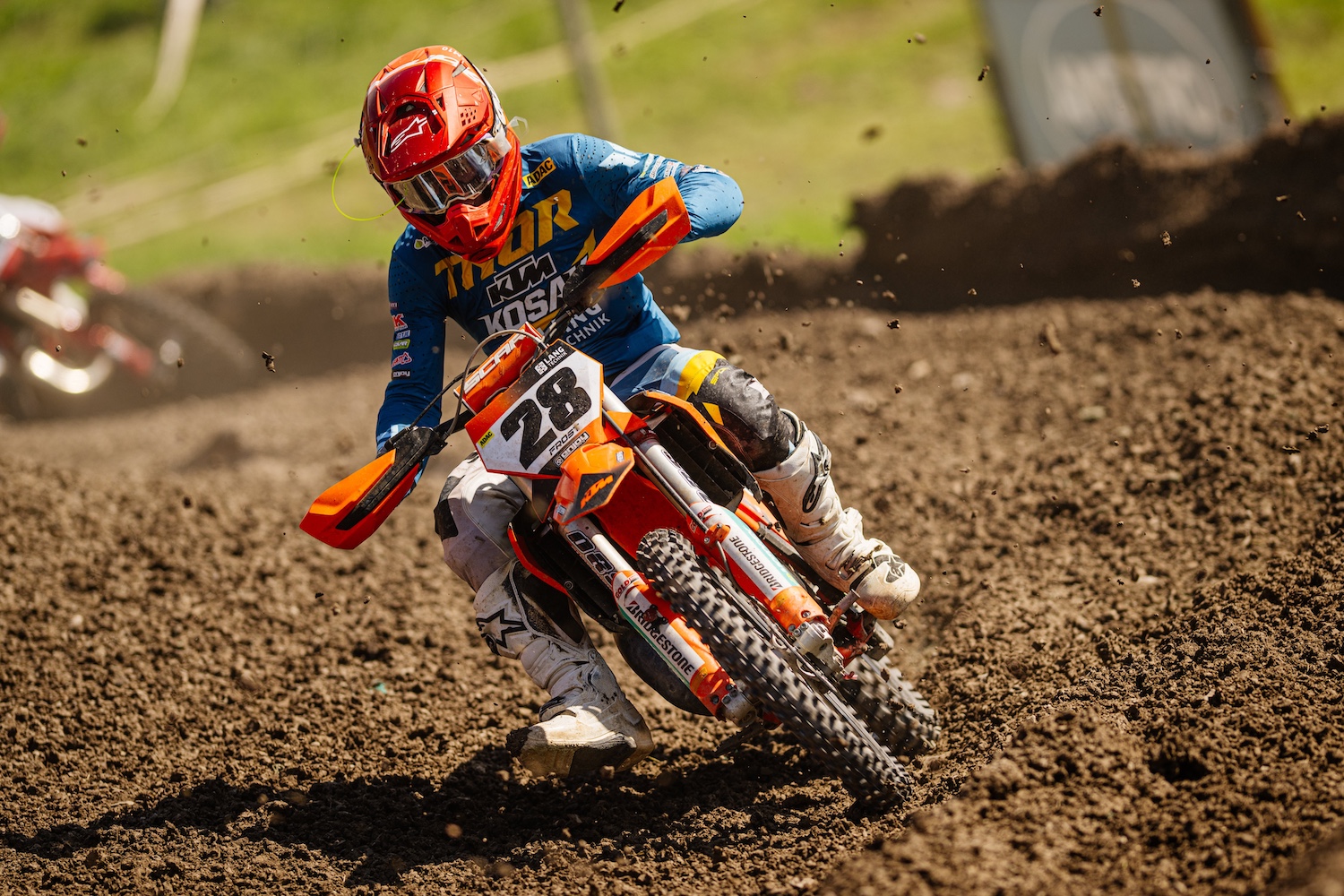 In der Königsklasse der MX Masters zeigte Roan van de Moosdijk erneut seine Klasse. Am Samstag eröffnete er das Rennwochenende mit einem souveränen Sieg im ersten Lauf. Im zweiten Rennen am Sonntagvormittag fuhr er auf den zweiten Platz und hielt damit seine Spitzenposition in der Tageswertung. Im dritten Lauf jedoch wurde er von einem technischen Problem ausgebremst: Drei Runden vor Schluss sprang ihm in einer tiefen Rille die Kette ab. Dank schneller Eigenreparatur konnte Roan das Rennen fortsetzen und sich noch bis auf Platz acht vorarbeiten. Dieser Zwischenfall kostete ihn zwar den Gesamtsieg, doch mit Rang drei in der Tageswertung übernahm er die Führung in der Meisterschaft.