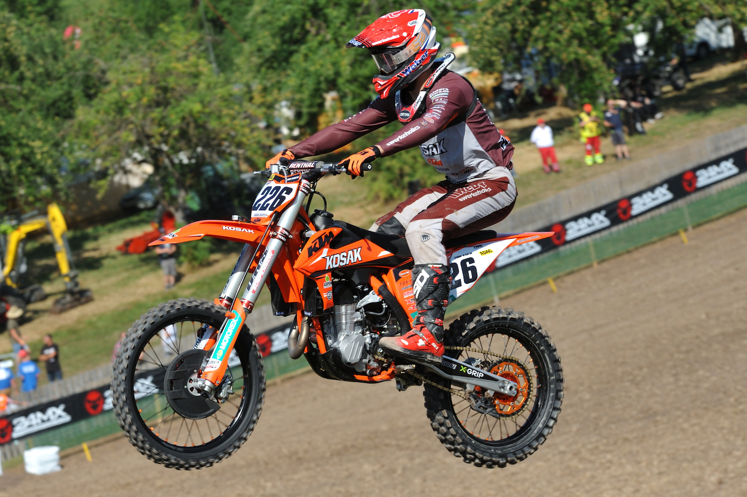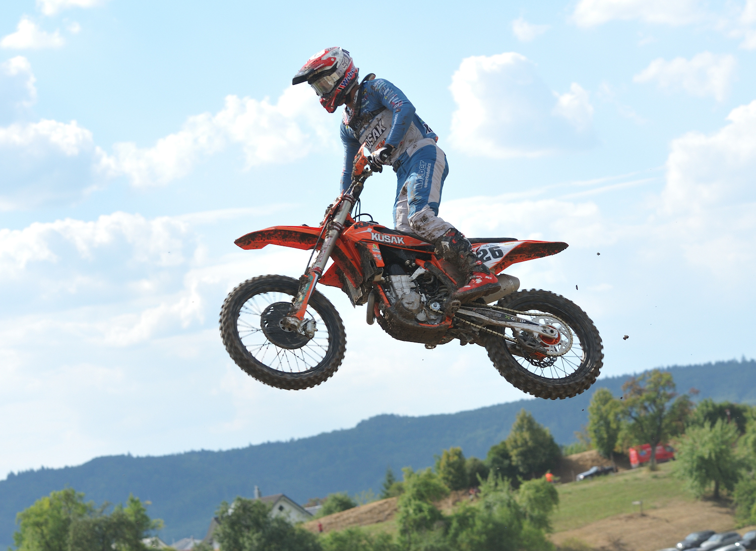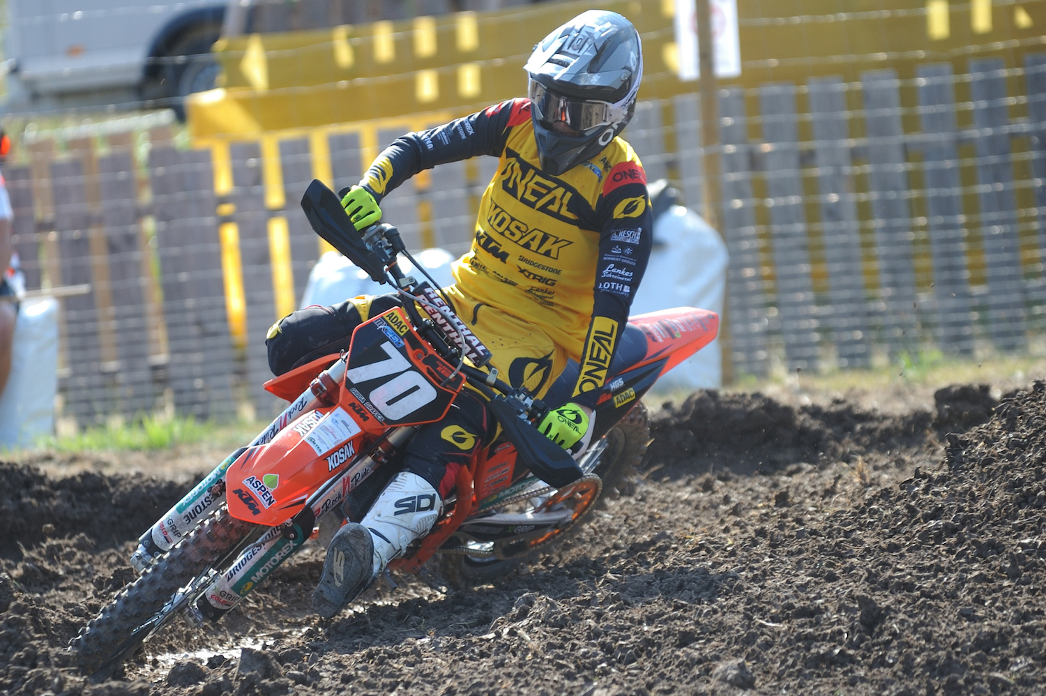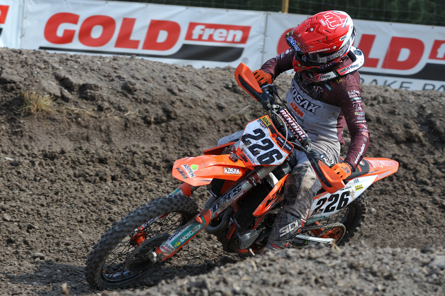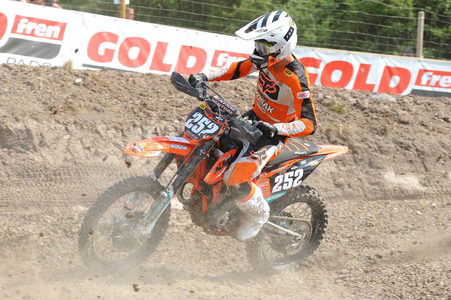 Tom Koch wollte seinen Flow vom WM Rennen im tiefen Sand von Lommel auch auf der Naturstrecke in Gaildorf auf den Hartboden bringen. Schon in der Qualifikation am Samstag zeigte ein bestens disponierter „ToKo“ mit der schnellsten Zeit in seiner Gruppe und der zweitschnellsten Rundenzeit überhaupt, dass er sich mit dem gut bearbeiteten Naturboden in Gaildorf bestens anfreunden konnte.