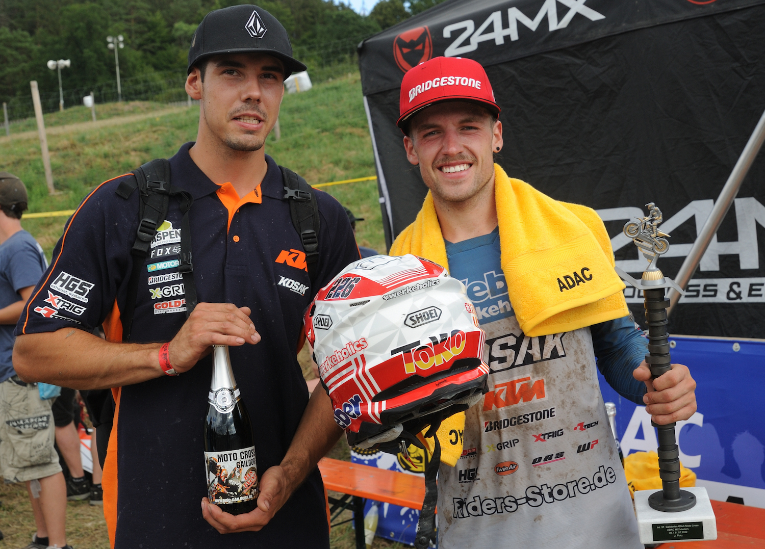 Tom nach der Siegerehrung: “Ich habe mich riesig auf Gaildorf gefreut. Es waren wieder sehr viele Fans rund um den Kurs und haben zu einer super Atmosphäre beigetragen. Hier bin ich schon immer gerne gefahren. Die Leute vom Verein haben sich mit der Strecke sehr große Mühe gegeben, auch wenn es an manchen Stellen betonhart war. Ich habe in allen drei Läufen gute Starts gehabt und einen passenden Speed entwickelt. Bis auf den kleinen Hänger im ersten Rennen war alles gut. Der zweite Platz in der Tageswertung vor meinen Hauptkonkurrenten macht mich zufrieden. Valentin (Guillod) war einfach etwas zu schnell für den Rest, für mich war das Wochenende aber ein weiterer Schritt in die richtige Richtung Nun geht es nach Hause, denn am Mittwoch starte ich mit Opa und Oma zu den WM Rennen nach Schweden und Finnland, wo ich mich mit dem Team treffe. Danach geht es gleich nach Frankreich weiter. Und Anfang September steht schon wieder das nächste ADAC Masters Rennen im Kalender“.