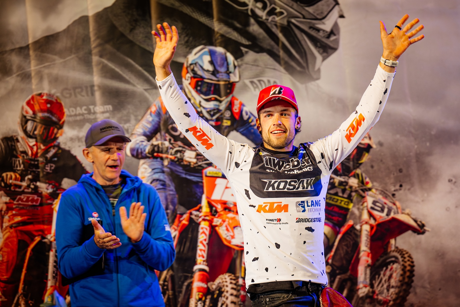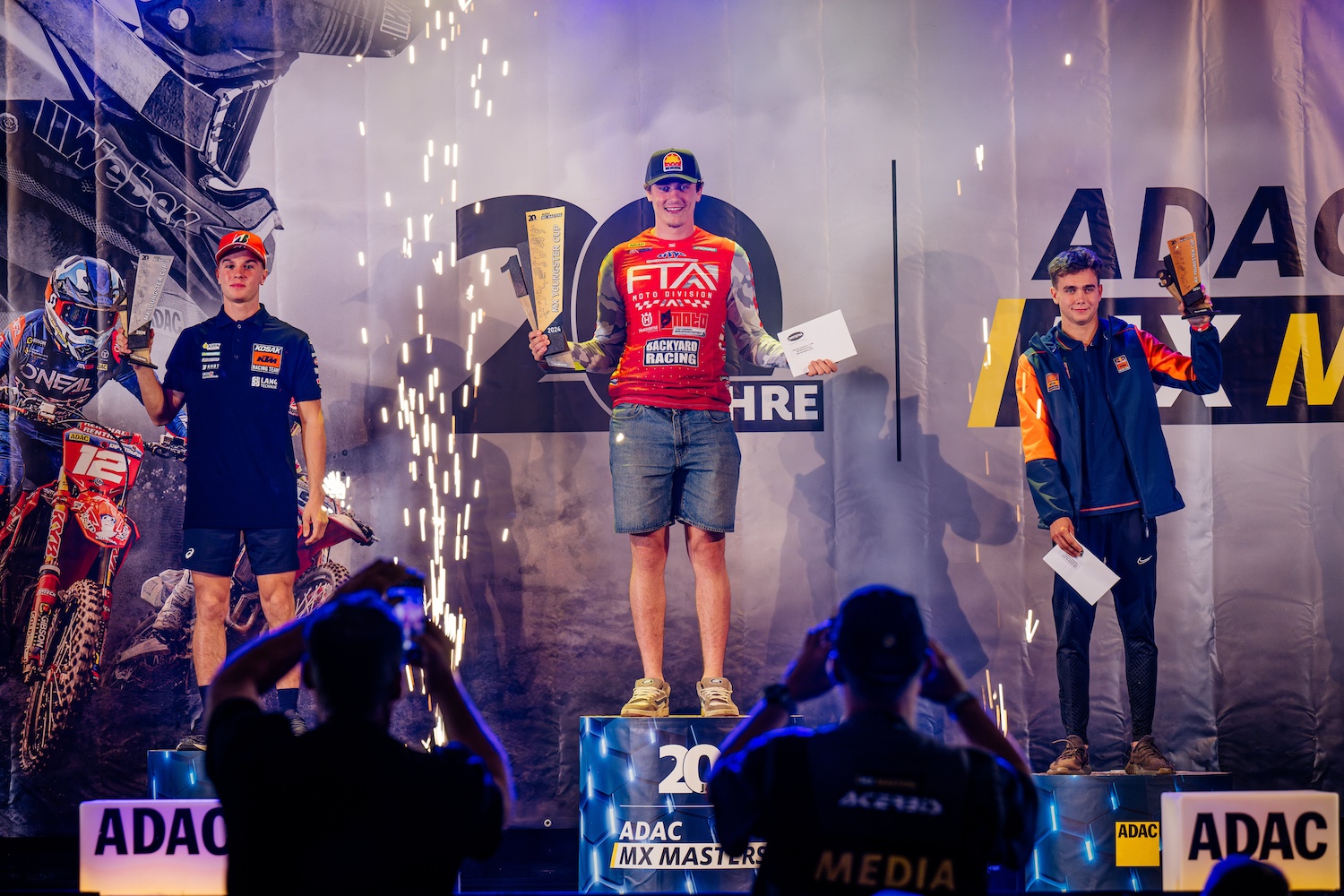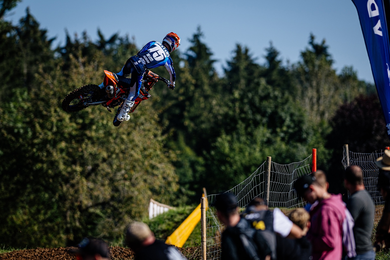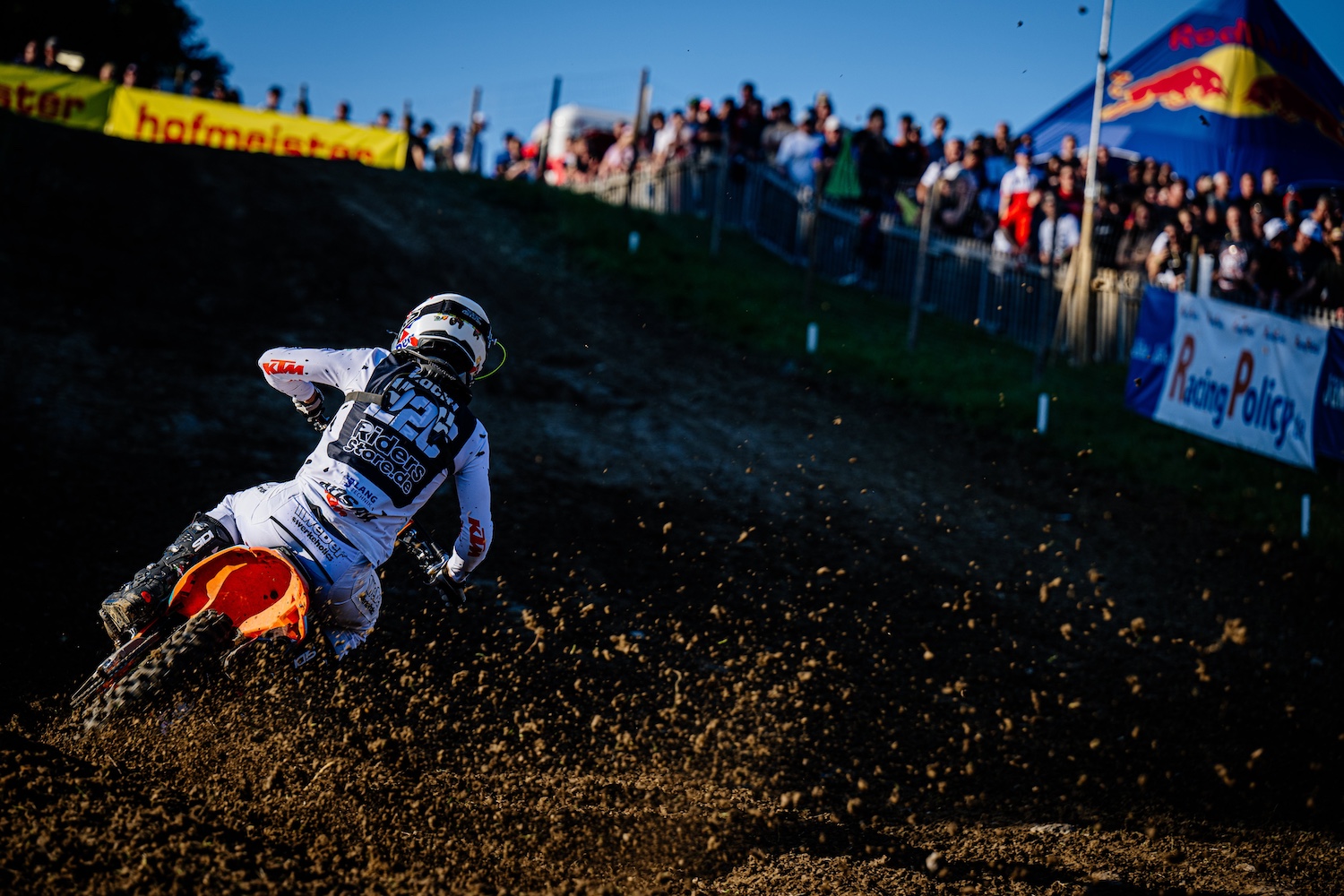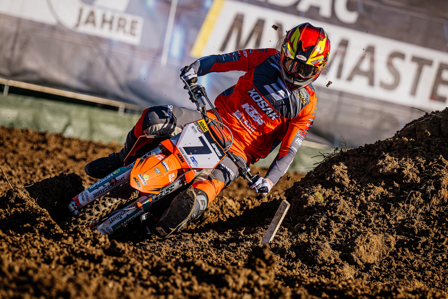 Tom Koch reiste mit zehn Punkten Vorsprung um den Vizetitel an und wollte diese Platzierung verteidigen. In der Qualifikation am Samstag schaffte er die insgesamt fünftbeste Rundenzeit und hatte so eine gute Position in der Startaufstellung. Mit seinem ersten Holeshot des Jahres setzte sich Tom Koch sofort an die Spitze und baute einen kleinen Vorsprung auf. Zur Rennmitte hatte sich der nächste Verfolger herangearbeitet und setzte den KTM Fahrer unter Druck. Koch konnte immer parieren, bis in einer tiefen Spur der Schalthebel hängen blieb und der Gang heraus sprang. Zwar konnte er schnell die Fahrt fortsetzen, hatte aber keine Möglichkeit mehr in dem Kampf um den Sieg einzugreifen. Im zweiten Durchgang kam Tom Koch als Fünfter aus der Startrunde zurück und verbesserte sich bis zum Rennende auf den dritten Platz .Da sein Mitstreiter um den Vizetitel wieder vor ihm ins Ziel kam, war für das dritte Rennen rechnen und taktieren angesagt. Mit einem guten Start begann er das letzte Rennen des Jahres. Ohne Risiko, immer den Gegner im Blick, fuhr er zunächst als Siebter seine Runden und nahm auch einen Überholvorgang hin. Im letzten Renndrittel überholte er den direkten Mitstreiter, hatte so sein Ziel erreicht und wurde in der Tageswertung Dritter. Nach allen Ehrungen freute sich Tom Koch: „Es war wieder eine sehr gelungene Veranstaltung. Und es macht einfach Spaß bei so herrlichem Wetter vor so einer begeisterten Zuschauerkulisse zu fahren. Am Anfang war ich noch ein bisschen zu verkrampft und steif. Trotz gesundheitlicher Probleme in den letzten Wochen habe ich alles gegeben, um den Vizetitel zu holen. Obwohl ein Platz besser auch nicht schlecht wäre. Es war eine Saison mit vielen Höhen und Tiefen, und ohne die Unterstützung meines Teams hätte ich es nicht geschafft, mich zurück zu kämpfen. Ich bin froh und stolz, dass es am Ende für den zweiten Platz gereicht hat“, freute er sich.