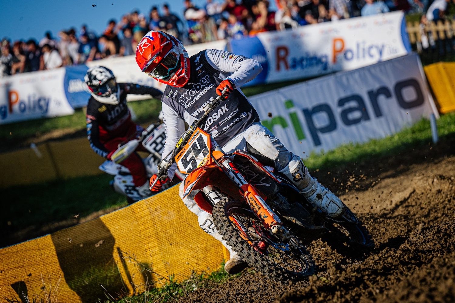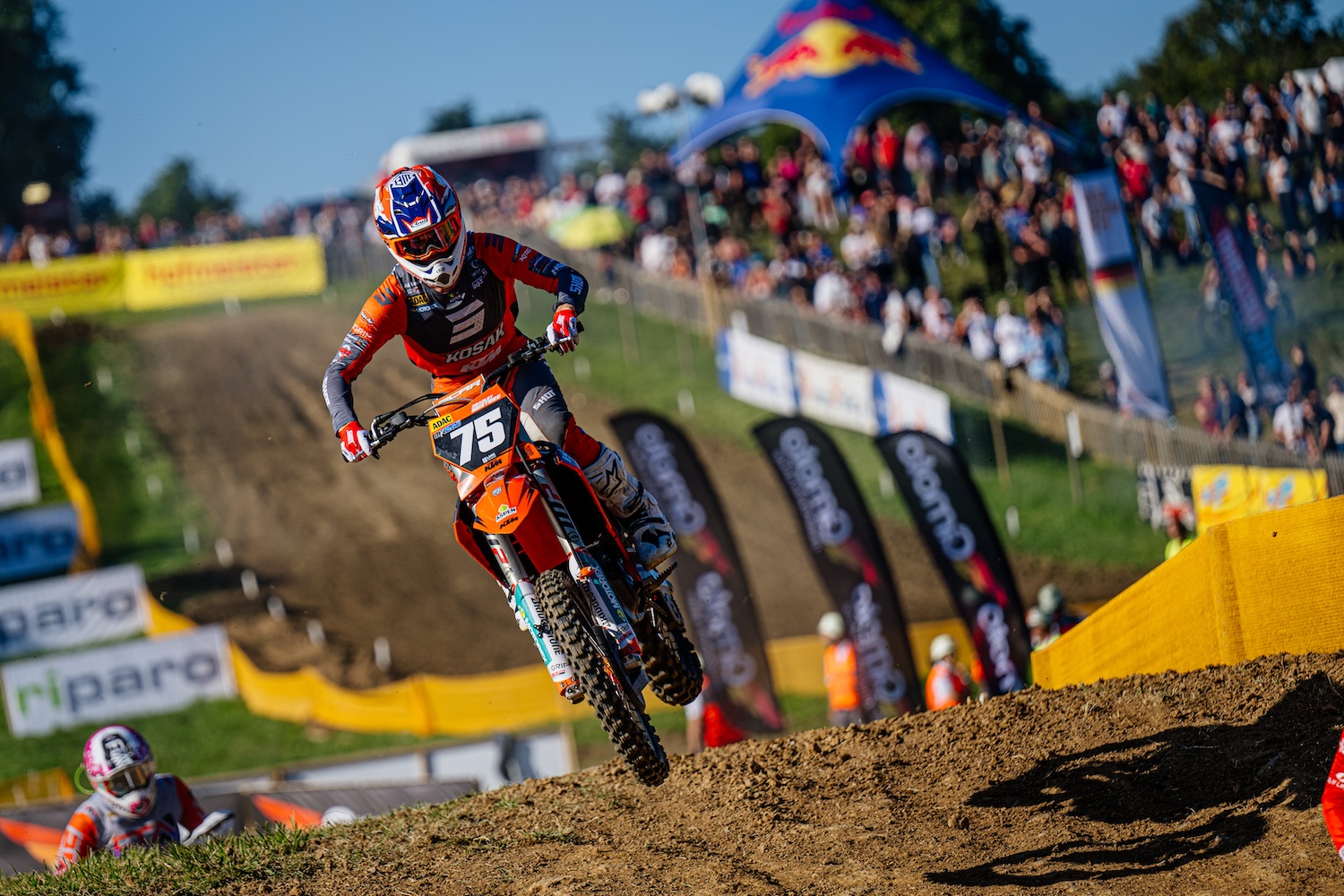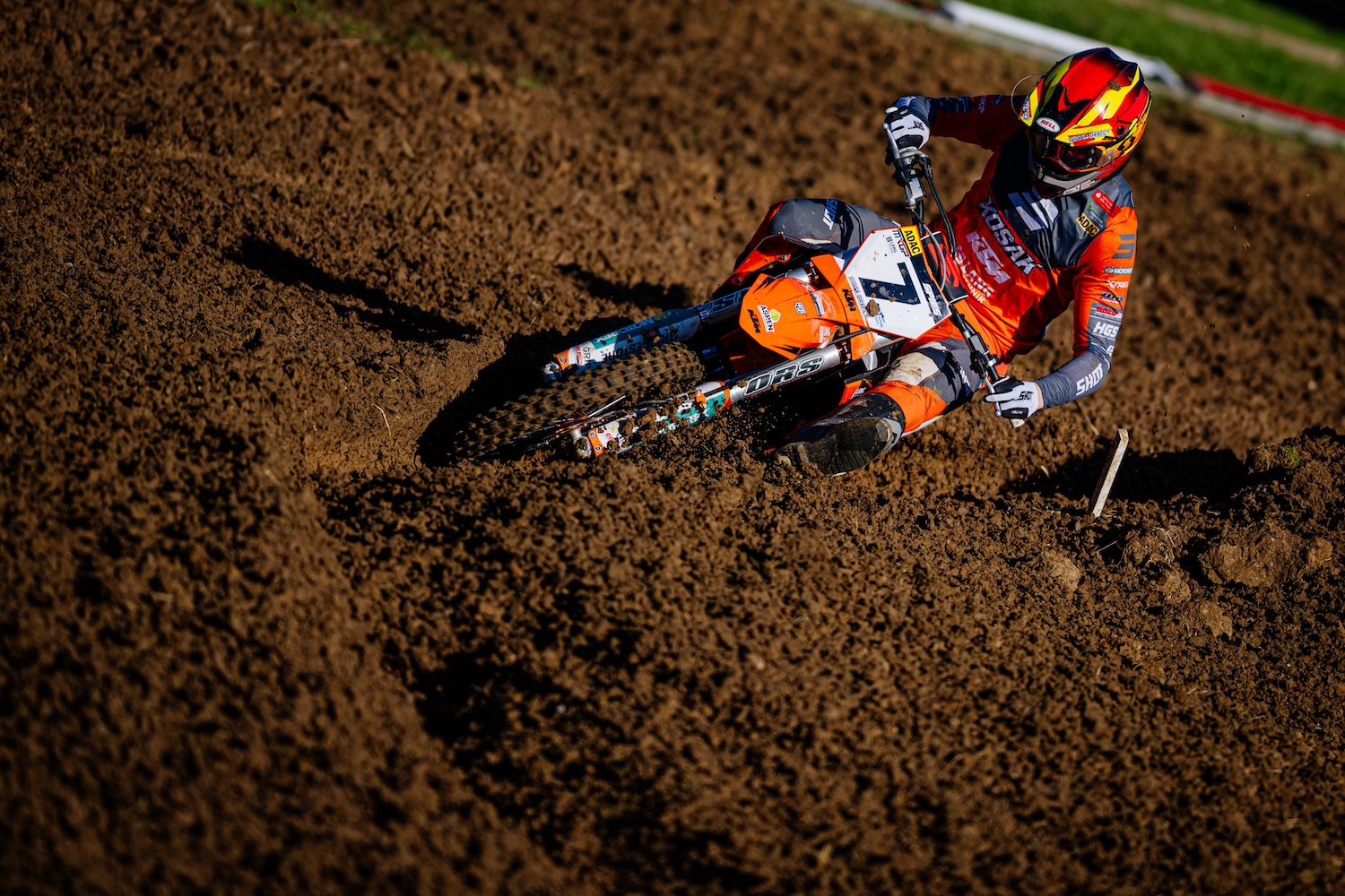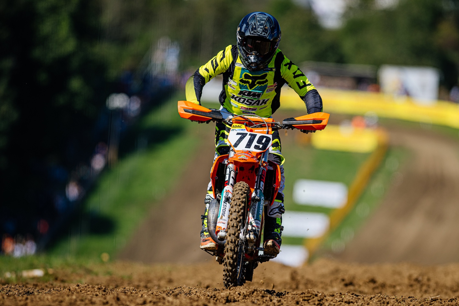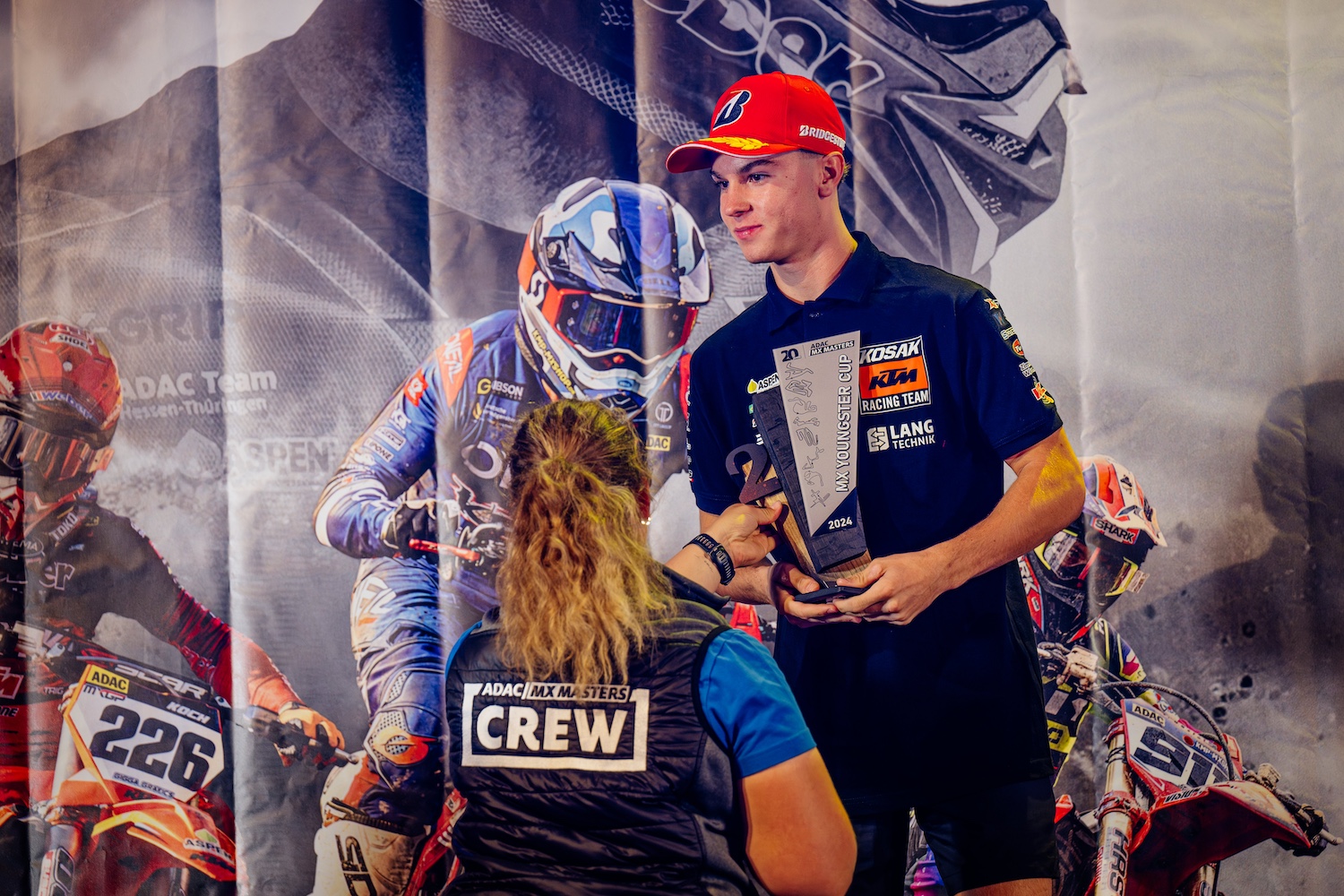 Tom Koch reiste mit zehn Punkten Vorsprung um den Vizetitel an und wollte diese Platzierung verteidigen. In der Qualifikation am Samstag schaffte er die insgesamt fünftbeste Rundenzeit und hatte so eine gute Position in der Startaufstellung. Mit seinem ersten Holeshot des Jahres setzte sich Tom Koch sofort an die Spitze und baute einen kleinen Vorsprung auf. Zur Rennmitte hatte sich der nächste Verfolger herangearbeitet und setzte den KTM Fahrer unter Druck. Koch konnte immer parieren, bis in einer tiefen Spur der Schalthebel hängen blieb und der Gang heraus sprang. Zwar konnte er schnell die Fahrt fortsetzen, hatte aber keine Möglichkeit mehr in dem Kampf um den Sieg einzugreifen. Im zweiten Durchgang kam Tom Koch als Fünfter aus der Startrunde zurück und verbesserte sich bis zum Rennende auf den dritten Platz .Da sein Mitstreiter um den Vizetitel wieder vor ihm ins Ziel kam, war für das dritte Rennen rechnen und taktieren angesagt. Mit einem guten Start begann er das letzte Rennen des Jahres. Ohne Risiko, immer den Gegner im Blick, fuhr er zunächst als Siebter seine Runden und nahm auch einen Überholvorgang hin. Im letzten Renndrittel überholte er den direkten Mitstreiter, hatte so sein Ziel erreicht und wurde in der Tageswertung Dritter. Nach allen Ehrungen freute sich Tom Koch: „Es war wieder eine sehr gelungene Veranstaltung. Und es macht einfach Spaß bei so herrlichem Wetter vor so einer begeisterten Zuschauerkulisse zu fahren. Am Anfang war ich noch ein bisschen zu verkrampft und steif. Trotz gesundheitlicher Probleme in den letzten Wochen habe ich alles gegeben, um den Vizetitel zu holen. Obwohl ein Platz besser auch nicht schlecht wäre. Es war eine Saison mit vielen Höhen und Tiefen, und ohne die Unterstützung meines Teams hätte ich es nicht geschafft, mich zurück zu kämpfen. Ich bin froh und stolz, dass es am Ende für den zweiten Platz gereicht hat“, freute er sich.