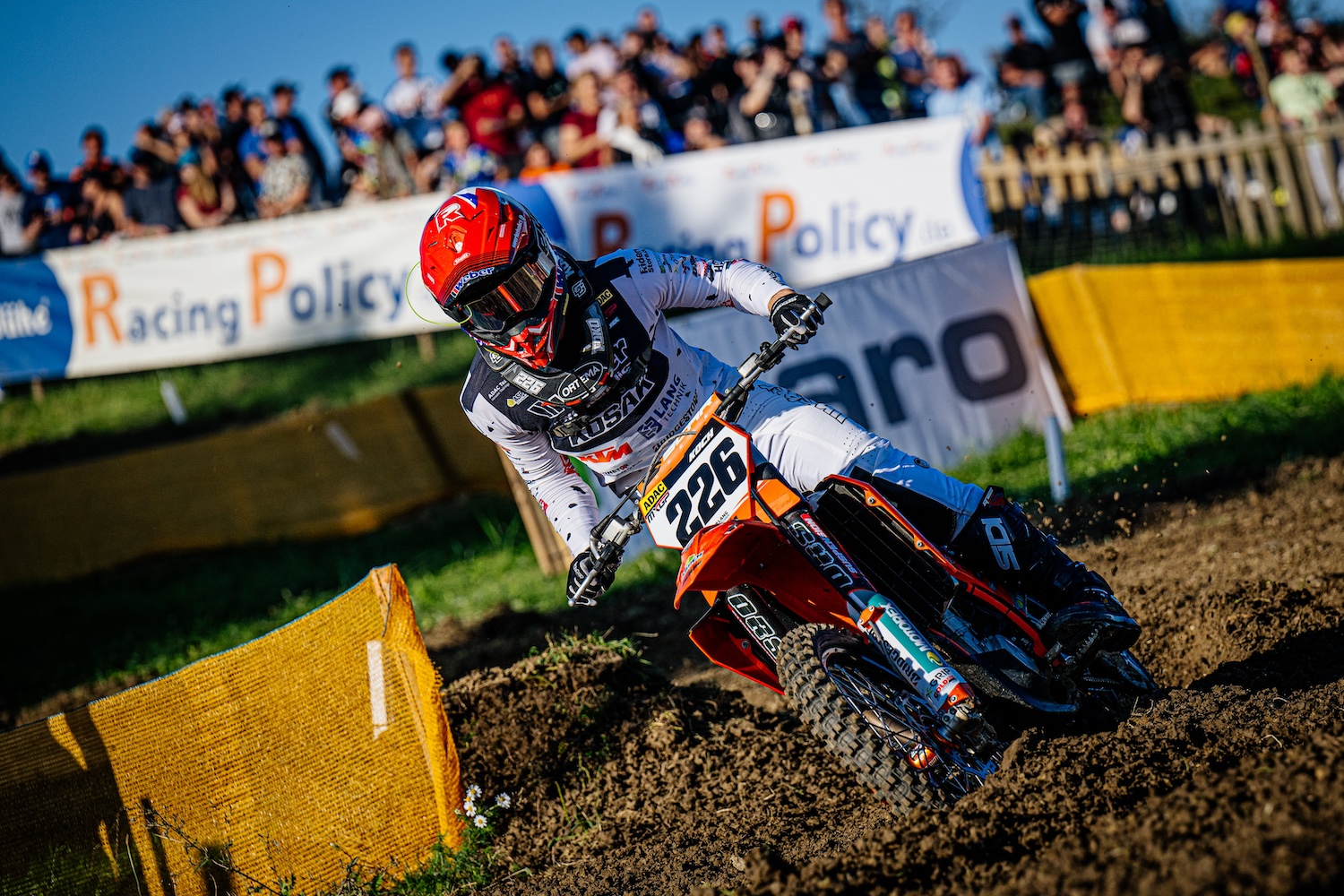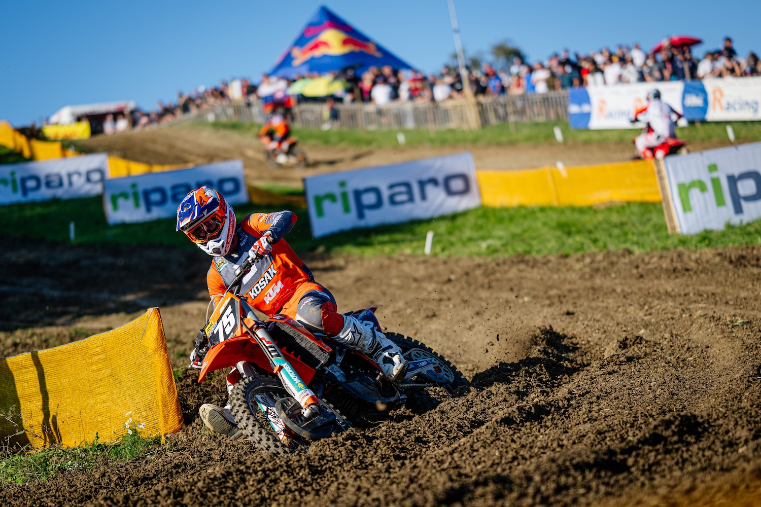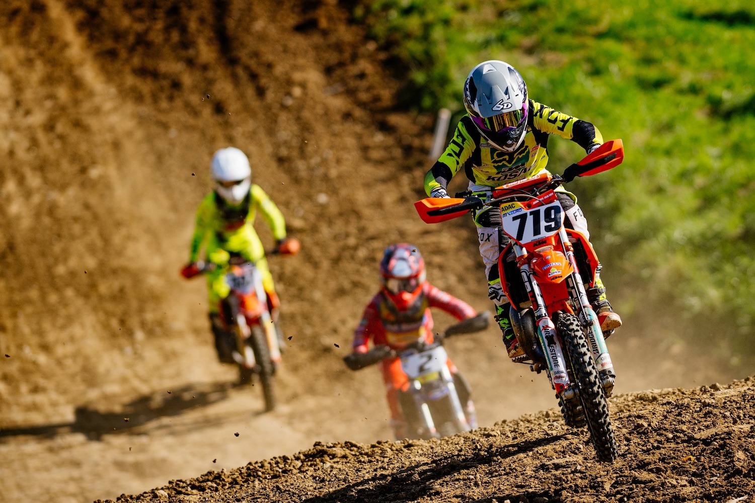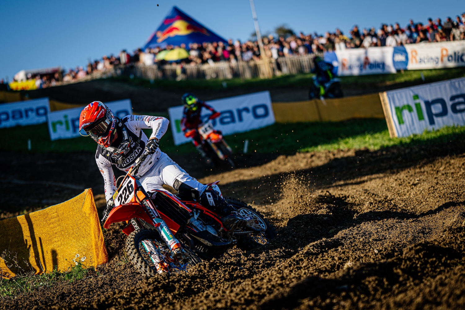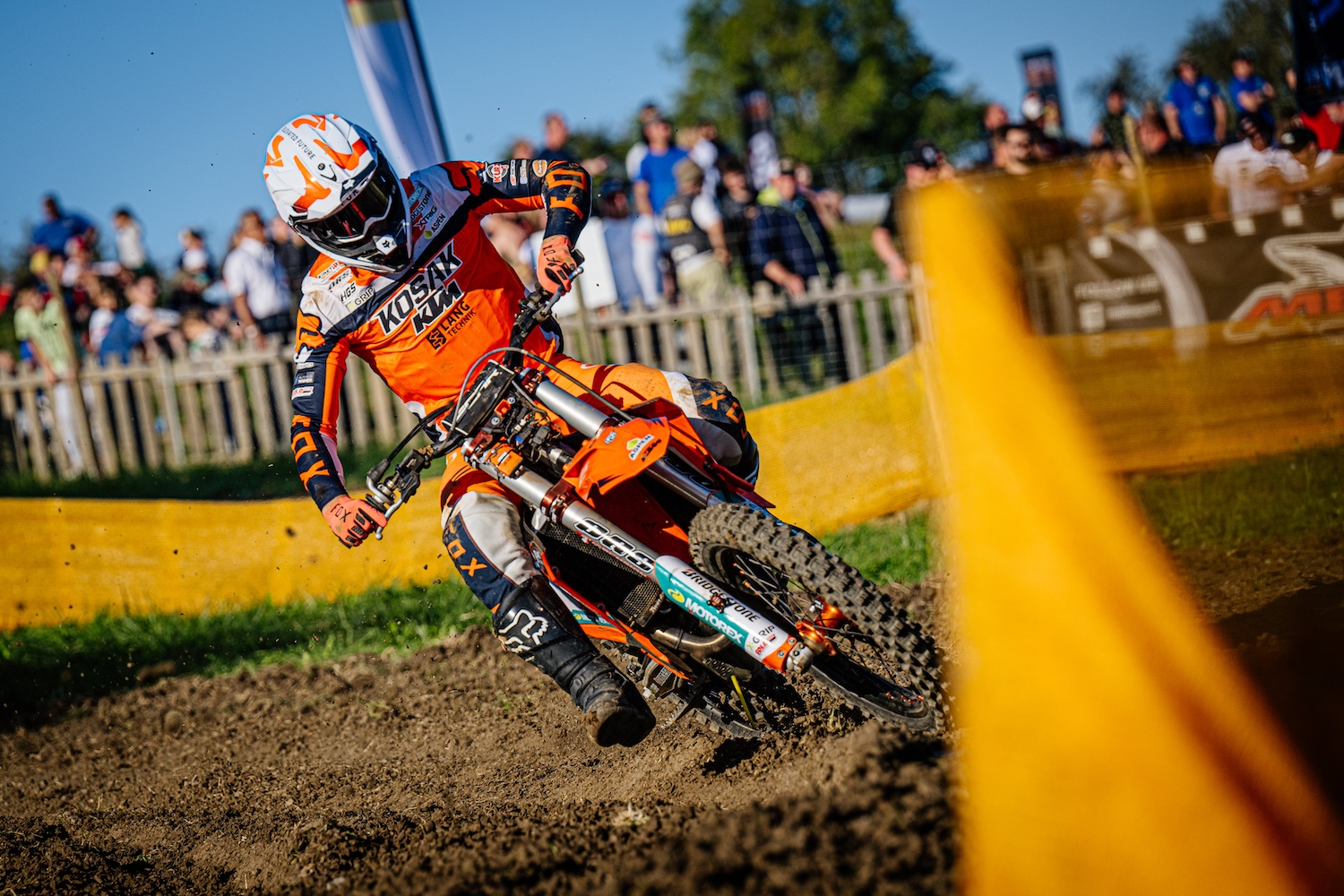 Tom Koch reiste mit zehn Punkten Vorsprung um den Vizetitel an und wollte diese Platzierung verteidigen. In der Qualifikation am Samstag schaffte er die insgesamt fünftbeste Rundenzeit und hatte so eine gute Position in der Startaufstellung. Mit seinem ersten Holeshot des Jahres setzte sich Tom Koch sofort an die Spitze und baute einen kleinen Vorsprung auf. Zur Rennmitte hatte sich der nächste Verfolger herangearbeitet und setzte den KTM Fahrer unter Druck. Koch konnte immer parieren, bis in einer tiefen Spur der Schalthebel hängen blieb und der Gang heraus sprang. Zwar konnte er schnell die Fahrt fortsetzen, hatte aber keine Möglichkeit mehr in dem Kampf um den Sieg einzugreifen. Im zweiten Durchgang kam Tom Koch als Fünfter aus der Startrunde zurück und verbesserte sich bis zum Rennende auf den dritten Platz .Da sein Mitstreiter um den Vizetitel wieder vor ihm ins Ziel kam, war für das dritte Rennen rechnen und taktieren angesagt. Mit einem guten Start begann er das letzte Rennen des Jahres. Ohne Risiko, immer den Gegner im Blick, fuhr er zunächst als Siebter seine Runden und nahm auch einen Überholvorgang hin. Im letzten Renndrittel überholte er den direkten Mitstreiter, hatte so sein Ziel erreicht und wurde in der Tageswertung Dritter. Nach allen Ehrungen freute sich Tom Koch: „Es war wieder eine sehr gelungene Veranstaltung. Und es macht einfach Spaß bei so herrlichem Wetter vor so einer begeisterten Zuschauerkulisse zu fahren. Am Anfang war ich noch ein bisschen zu verkrampft und steif. Trotz gesundheitlicher Probleme in den letzten Wochen habe ich alles gegeben, um den Vizetitel zu holen. Obwohl ein Platz besser auch nicht schlecht wäre. Es war eine Saison mit vielen Höhen und Tiefen, und ohne die Unterstützung meines Teams hätte ich es nicht geschafft, mich zurück zu kämpfen. Ich bin froh und stolz, dass es am Ende für den zweiten Platz gereicht hat“, freute er sich.