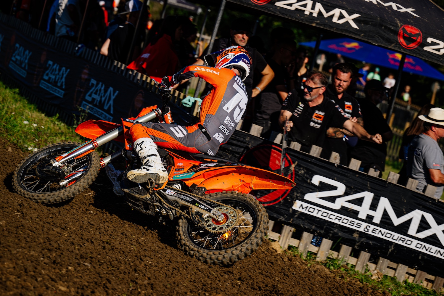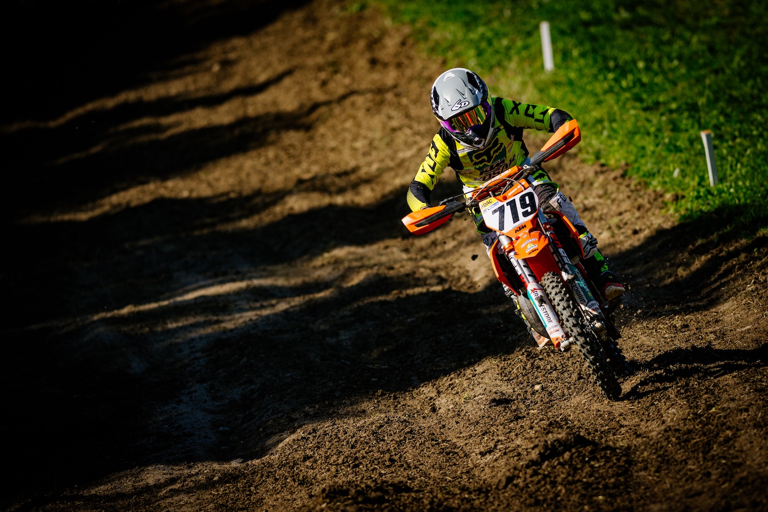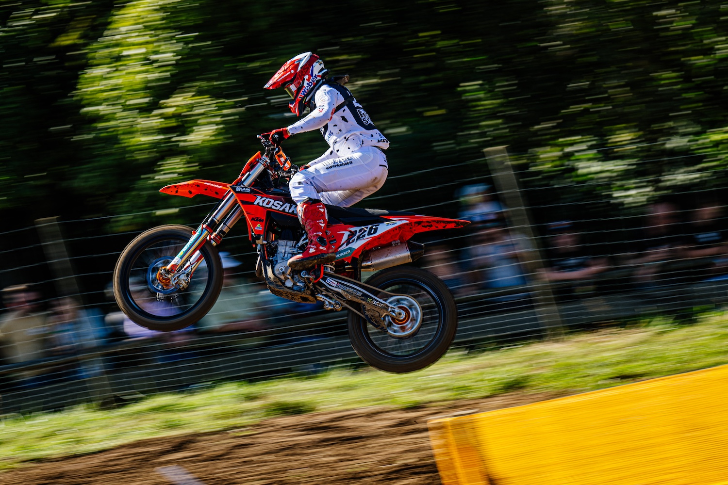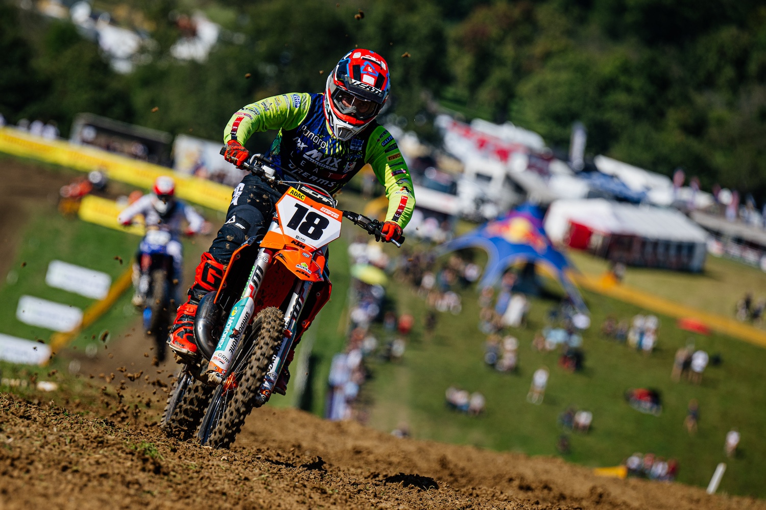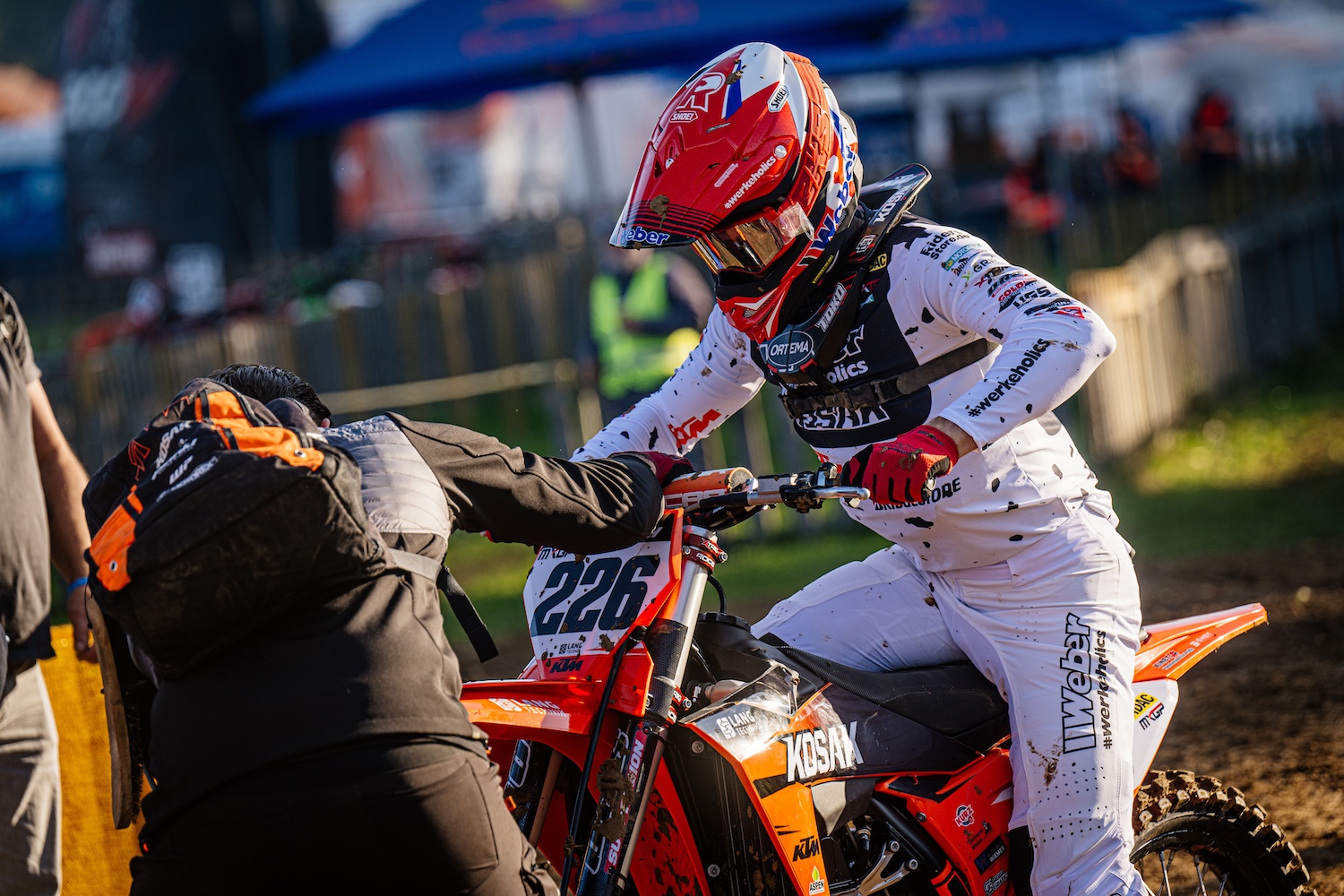 Bradley Meesters war als Tabellendritter nach Holzgerlingen angereist und wollte diesen Platz auf alle Fälle verteidigen oder wieder verbessern. In der Qualifikation musste er sich an die besonderen Bedingungen der Naturstrecke gewöhnen und platzierte sich als Neunter. Doch schon im ersten Rennen untermauerte er sein Vorhaben, als er nach gutem Start in der vierten Runde die Spitze übernahm und das Feld bis zwei Runden anführte. Dann wurde er von einen Angriff vom sicheren Meister überrascht, hielt sich aber dicht dahinter auf dem zweiten Platz, bis in der vorletzten Runde die Defekthexe zuschlug. In einer sehr tiefen Spurrille verbog es die Kettenführung und bei der Anfahrt zum Zielsprung blieb die Maschine stehen, weil die Kette abgesprungen war. Bradley reagierte blitzschnell, brachte die Kette wieder in Position und nahm die letzte Runde in Angriff. Durch den großen Vorsprung kostete die Aktion nur zwei Plätze. Als Vierter fuhr er wieder auf den Zielsprung zu, als ihm noch einmal das gleiche Schicksal ereilte. Diesmal versuchte er nicht die Kette wieder in die Führung zu bringen, sondern probierte das Motorrad auf den steilen Zielsprung zu schieben. Als er etwa die Hälfte oben war gab er auf, nicht wissend, dass er mit der Schiebeaktion den Transponder über die Zeitmessung gebracht hatte und als Fünfer gewertet wurde. Im zweiten Rennen kam Bradley erneut gut aus dem Startgatter. Mit schnellen Zeiten setzte er sich in der zweiten Runde an die Spitze und hielt die Position für mehrere Runden, bis er in einem Duell um die Führung ins straucheln kam und zu Boden musste. Als Sechster erreiche er das Ziel und war dem Vizetitel ein Stück näher gekommen. Der Start in das dritte Rennen war eher mittelmäßig. Mit einer starken Leistung fuhr er noch bis auf den vierten Platz nach vorne. In der Tageswertung wurde er Vierter und hat sich mit einer starken Leistung den Vizetitel gesichert.