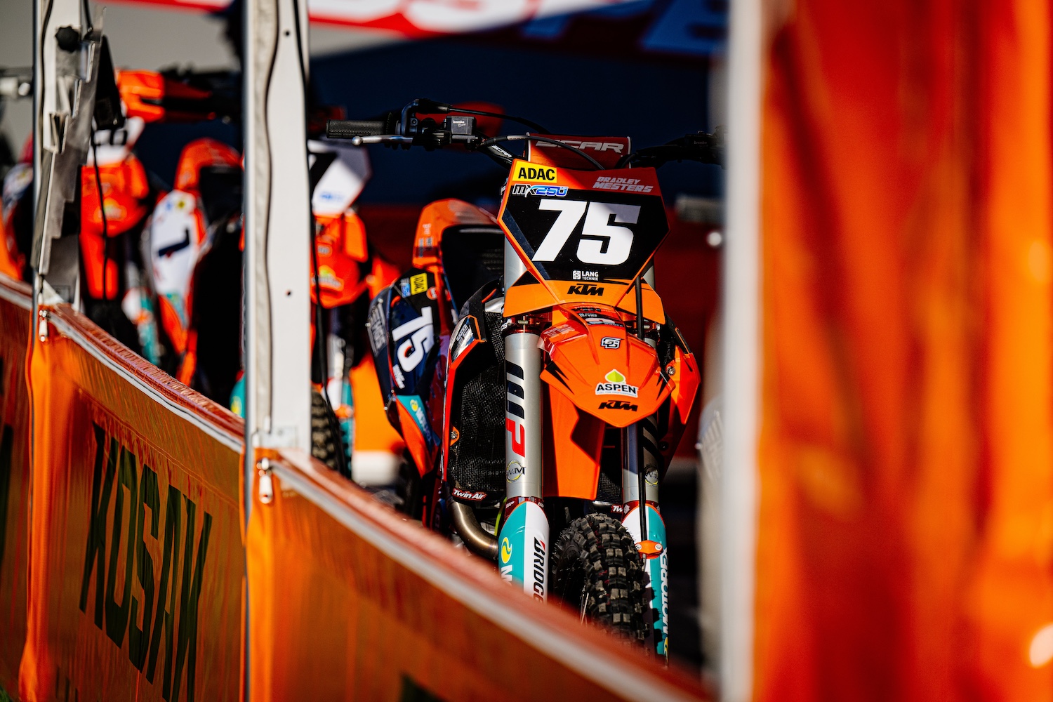In der Qualifikation lief es für Henry Obenland nicht rund. Er konnte gerade noch das Last Chance Rennen verhindern und sich direkt qualifizieren. Im ersten Durchgang lieferte er eine fehlerfreie Fahrt und holte sich als Neunzehnter noch zwei Punkte. Der Start in den zweiten Lauf ging daneben und Henry fand keinen Rhythmus. Dazu bremste er noch den Motor aus und kam daher außerhalb der Punkteränge ins Ziel. Mit einem guten Start ging es in das Abschlussrennen. Lange fuhr er um den fünfzehnten Platz, bis er durch einen Sturz zu Boden musste. In der Folge wurde er nochmals vom Motorrad gefahren. „Das lief schon in der Quali nicht richtig. Im ersten Rennen war es dann etwas besser, dafür war es im zweiten schon vom Start weg nix. Im dritten Rennen lief es dann ganz gut, bis ich zwei Runden vor Schluss gestürzt bin und danach noch abgeschossen wurde. Der dritte Lauf wäre der beste gewesen“, fasst Henry sein Wochenende zusammen. Nach den aktuellen Planungen will Henry Obenland bei der SX Serie in Stuttgart und Dortmund für das Team an den Start gehen.