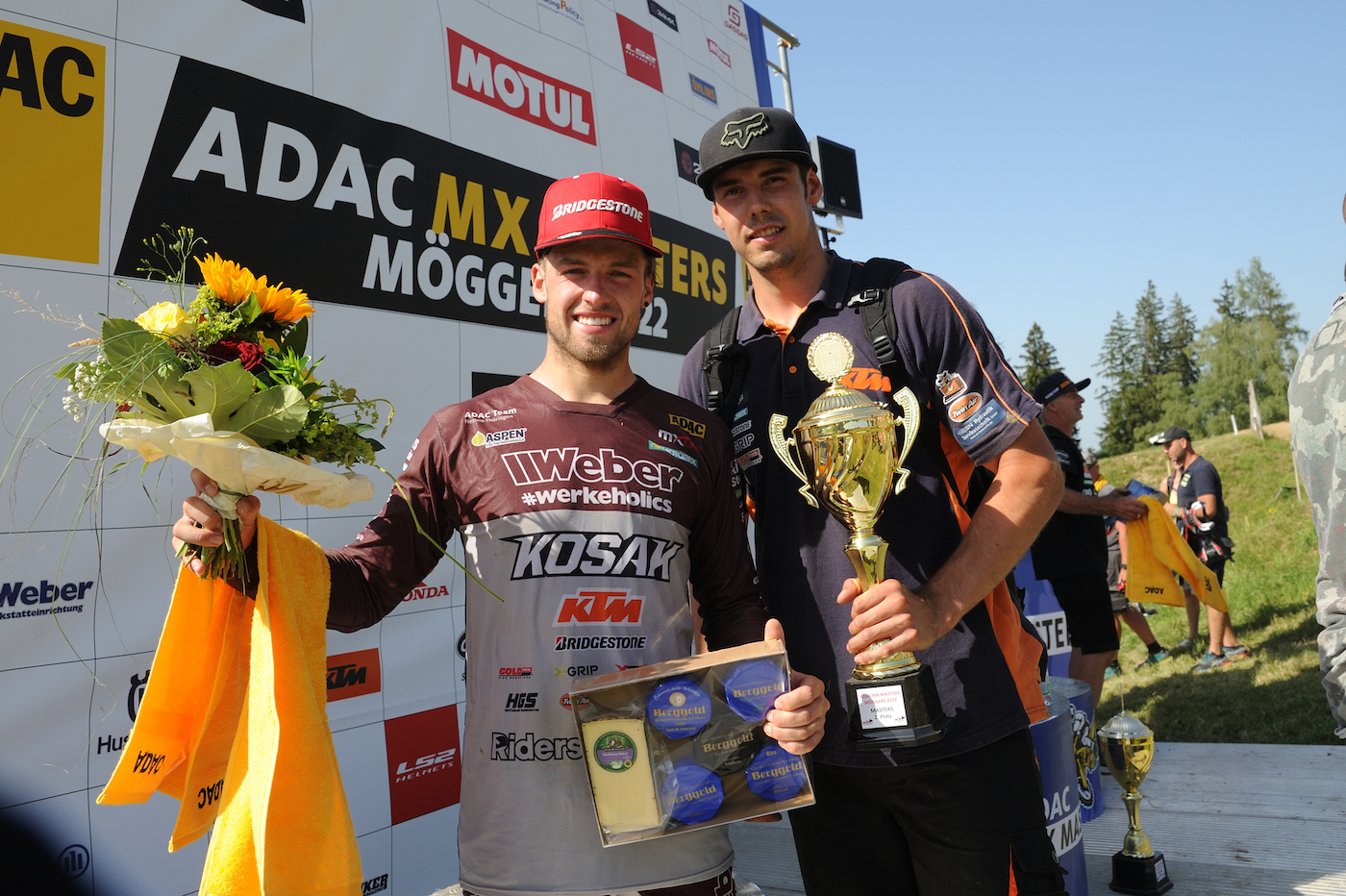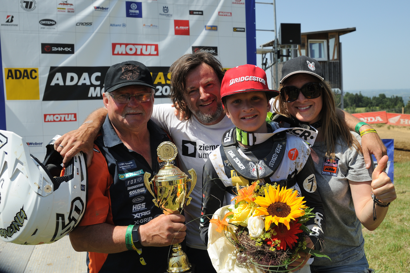 Tom Koch hat sich von seiner Fußverletzung, die ihn in Dreetz noch einbremste und behinderte, gut erholt und läuft zu alter Form auf. Das zeigte er gleich in der Qualifikation, die er mit zweitschnellsten Zeit in seiner Gruppe und der zweitbesten Zeit insgesamt erledigte. Der Start in das erste Rennen gelang nicht optimal. Doch hatte er schnell gute Spuren gefunden und übernahm nach fünf Runden die Führung. Zwei Runden vor Schluss verlor er seinen Flow und musste die Führung abgeben. „Dass es mit dem Sieg nicht geklappt hat ist ärgerlich. Ich habe mich sehr gut gefühlt und bin locker gefahren. Als ich dann in Führung lag, habe ich mir nach einigen Runden zu viele Gedanken gemacht, mich verkrampft und harte Arme bekommen. Ich musste Tempo raus nehmen und konnte nicht gegenhalten. Trotzdem bin ich bis zu diesem Zeitpunkt mit dem Fahren zufrieden“, erklärte er nach dem Rennen und beeilte sich um sich im Fahrerlager gleich in eine Tonne mit kaltem Wasser zu setzen. Im zweiten Lauf war er sofort in der Spitzengruppe dabei und konnte sich vom Feld absetzen. Nach fünf Runden hatte er sich auf dem dritten Platz etabliert und brachte diesen mit zwanzig Sekunden Vorsprung sicher ins Ziel. Auch im dritten Rennen war er beim Start wieder vorne dabei. Er brauchte drei Runden um sich den zweiten Platz zu holen und ins Ziel zu bringen. Nach der Addition aller drei Läufe wurde er zur Freude von Teamchef Herbert Kosak und allen Betreuern Zweiter in der Tageswertung. „Der zweite Platz in der Tageswertung und der Sprung auf Drei in der Meisterschaft krönten den Renntag. Mit dem Wochenende bin ich zufrieden. Bei allen drei Rennen in die Top Drei gefahren. Ich bin zurück dort, wo ich hingehöre, nachdem ich beim Saisonstart in Dreetz nach einer Verletzung noch angeschlagen war. Körperlich bin ich fit und den Trainingsrückstand werde ich weiter aufholen. Ich hoffe, dass ich das schon beim nächsten Rennen in zwei Wochen zeigen kann“, freute er sich nach der Siegerehrung über seinen ersten Podestplatz in dieser Saison.