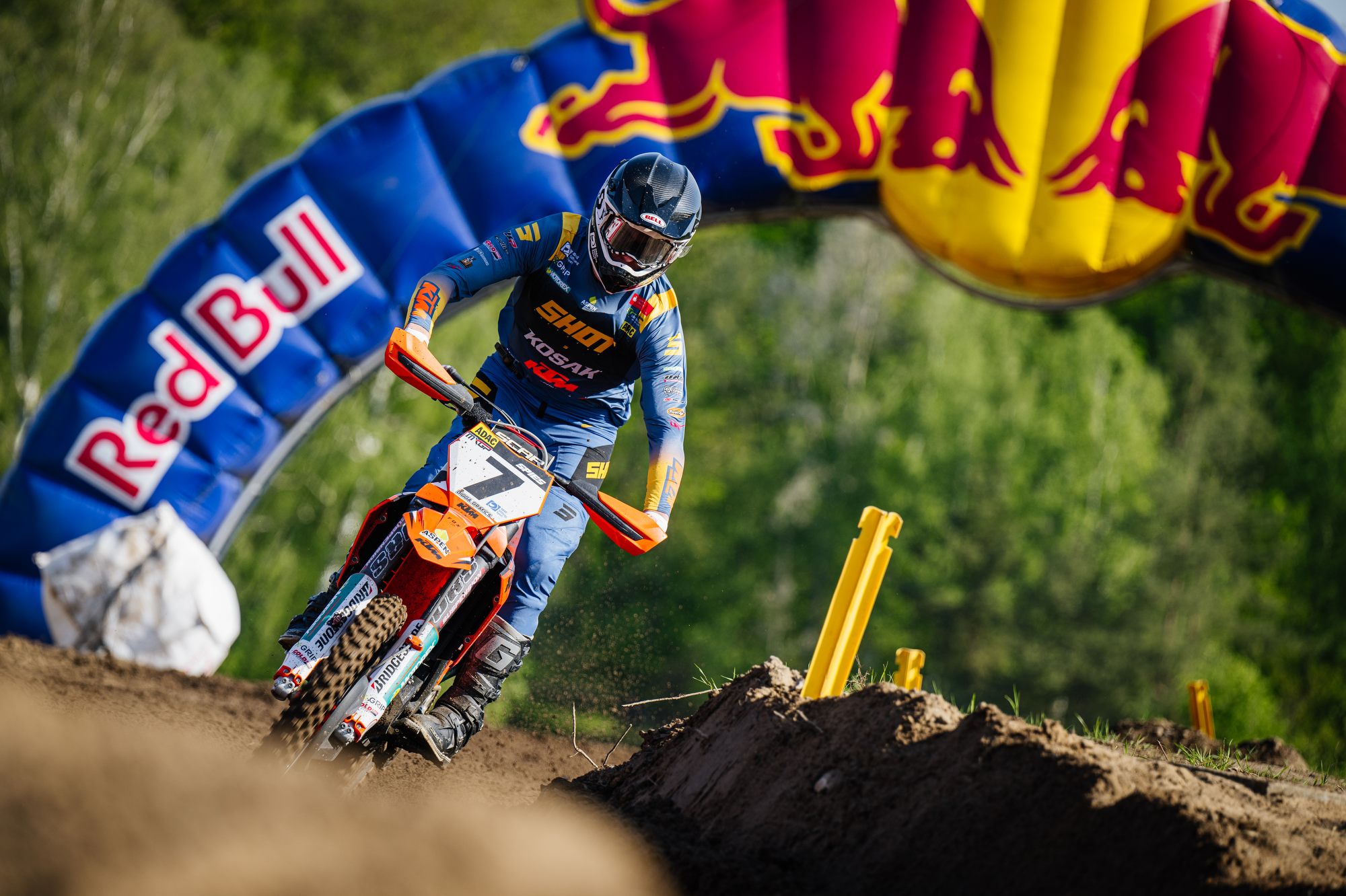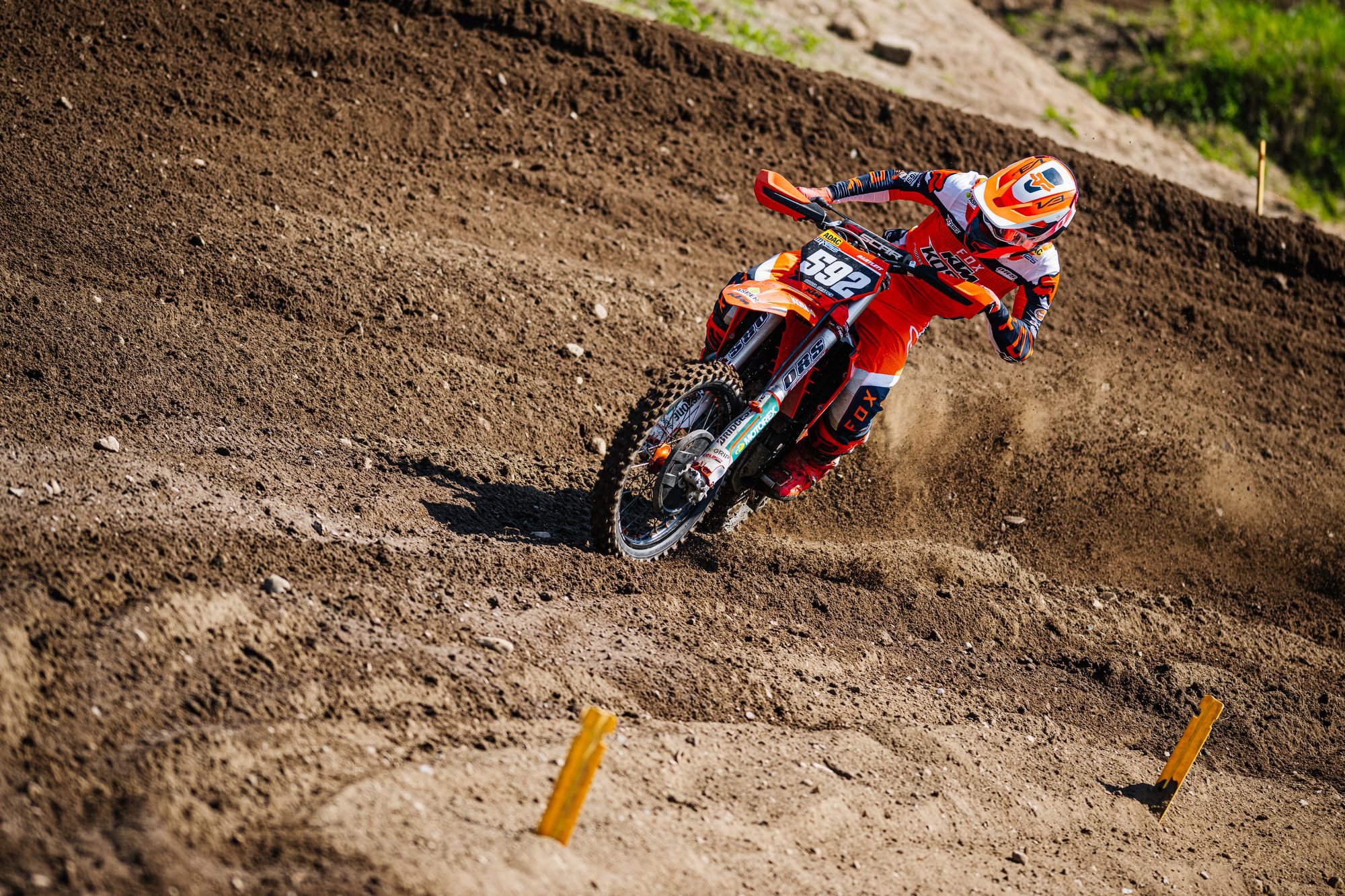 Tom Koch, der 2019 beim vorläufig letzten ADAC MX Masters Rennen in Mölln in der Tageswertung Sechster werden konnte, kam mit den Tücken der Strecke schon im Zeittraining gut zurecht. Mit der schnellsten Rundenzeit in seiner Gruppe legte er den Grundstein für den zweiten Platz in der Startaufstellung. Koch der, als Zweiter in der Meisterschaft angereist war, hatte sich einen Platz auf dem Podium als Ziel gesetzt. Dazu wollte er seinen guten Flow aus den vorangegangenen WM Rennen mitnehmen. Im ersten Rennen am Samstag traf Tom den Start nicht optimal. Als Fünfter kam er aus der ersten Runde zurück, fuhr sehr schnell auf den vierten Platz vor. In den letzten drei Runden, er war auf Platz drei vorgefahren, hing er am Hinterrad vom Zweiplatzierten, machte beim Überholvorgang einen Fehler und musste sich so als Dritter abwinken lassen.
