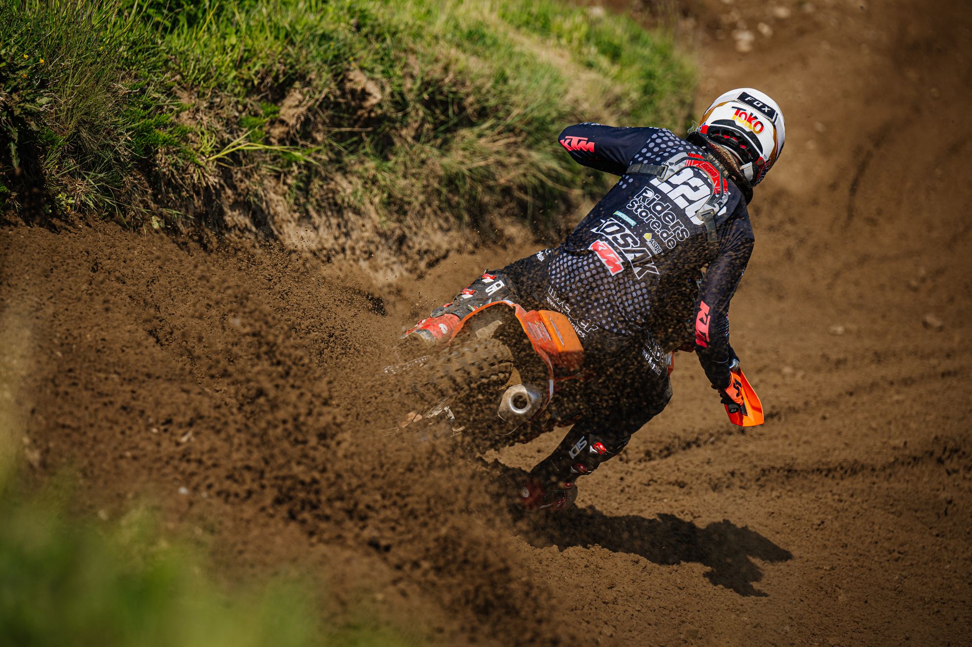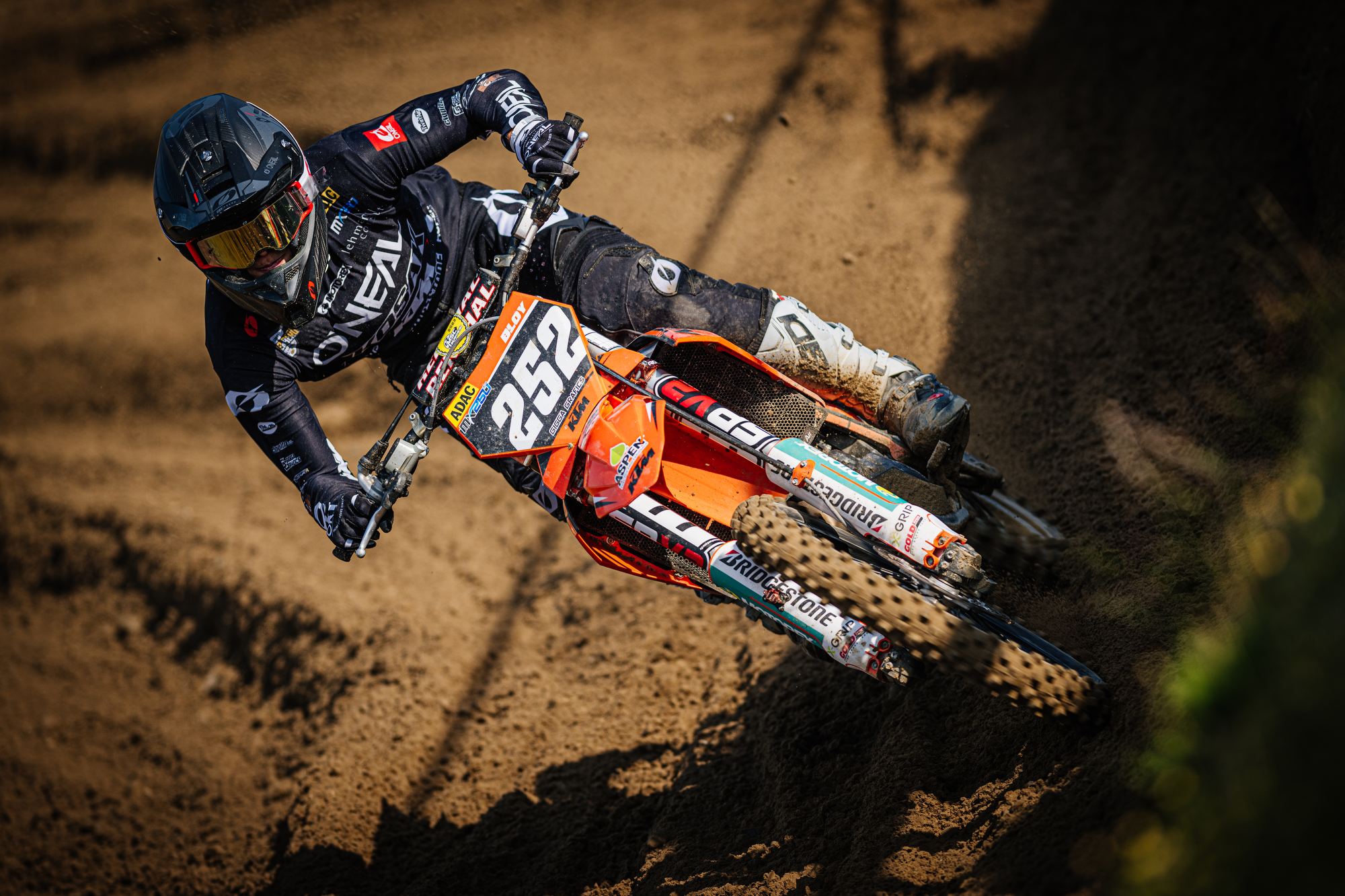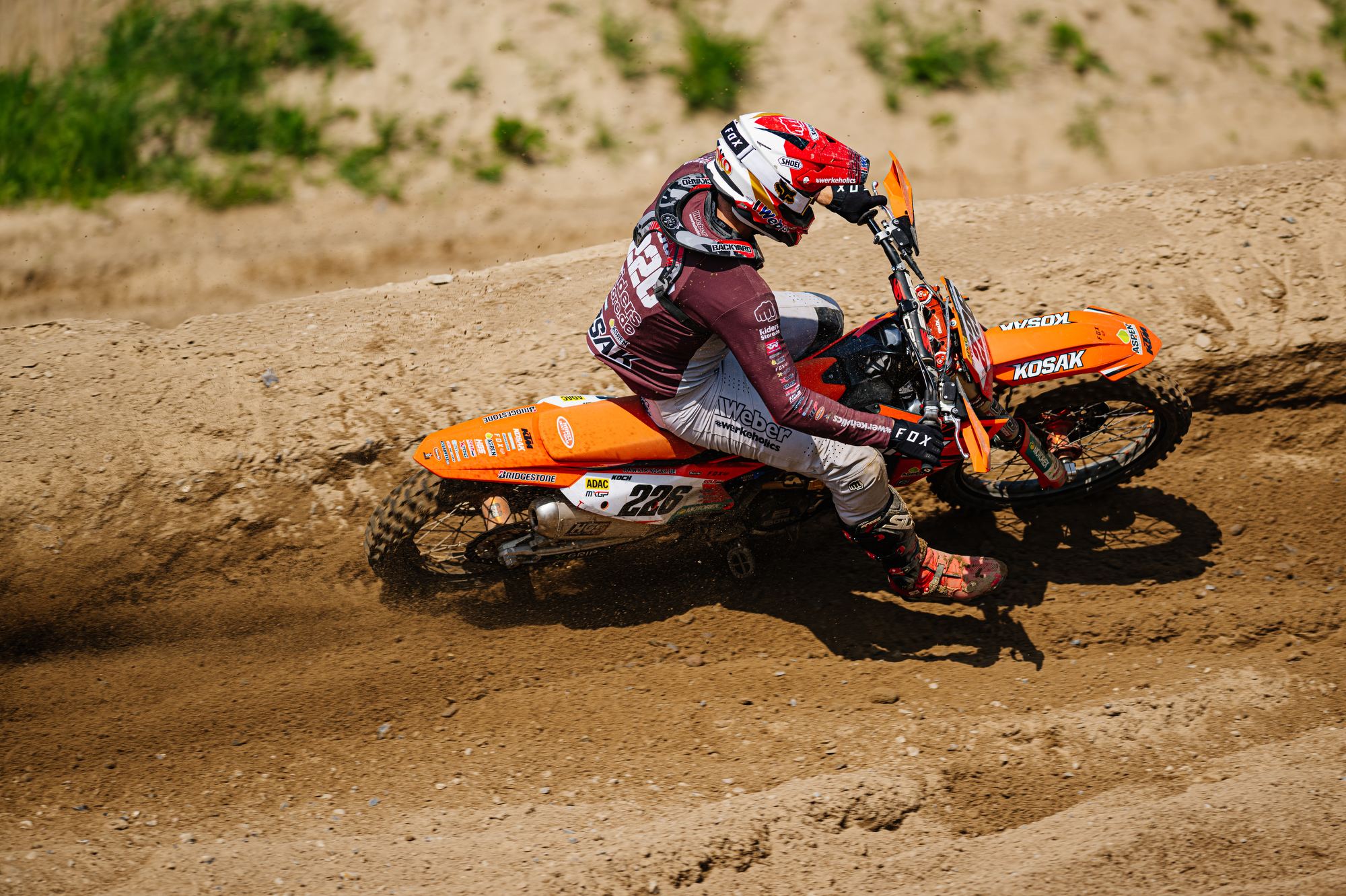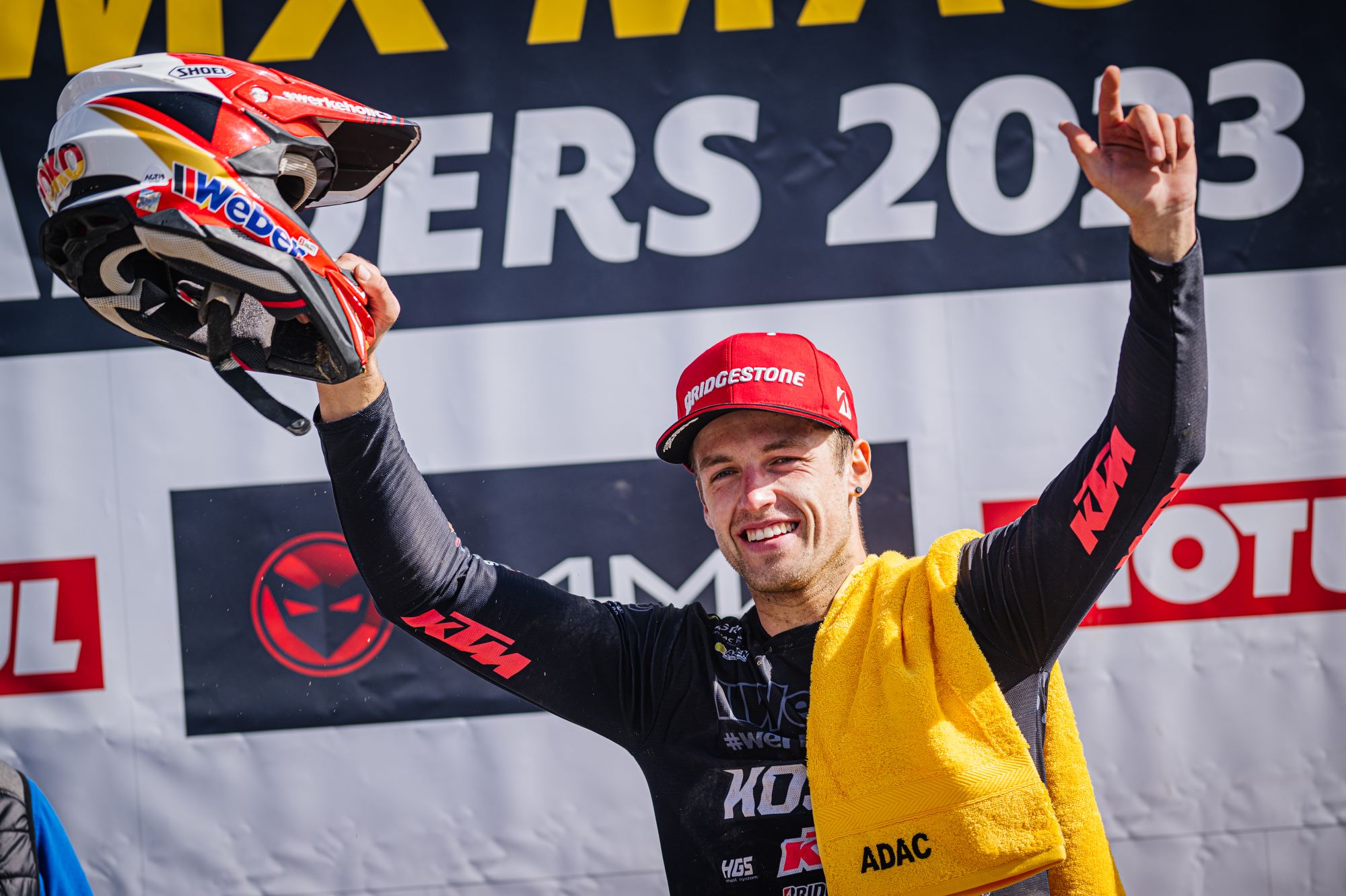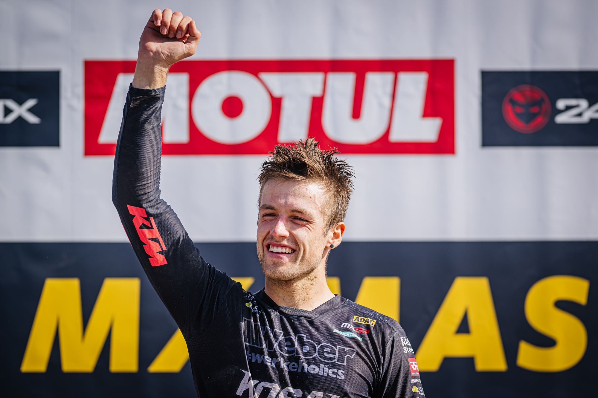 Im zweiten Durchgang war er nach dem Start gleich wieder in der Spitzengruppe, kam in einen guten Flow und konnte in der neunten von sechzehn Runden die Führung übernehmen. Die Angriffsversuche des Tabellenführers wehrte er sicher ab und holte sich mit vier Sekunden Vorsprung seinen ersten Laufsieg bei einem ADAC MX Masters Rennen in diesem Jahr.