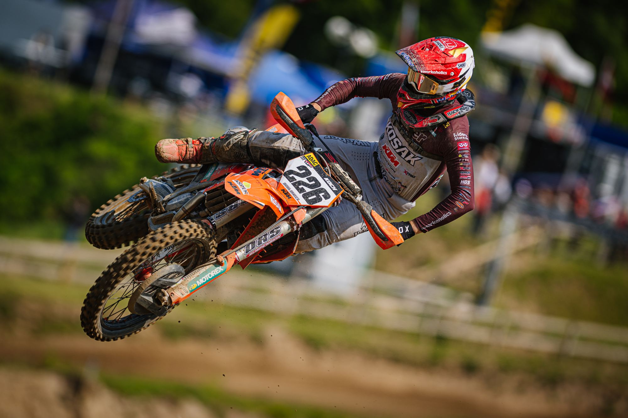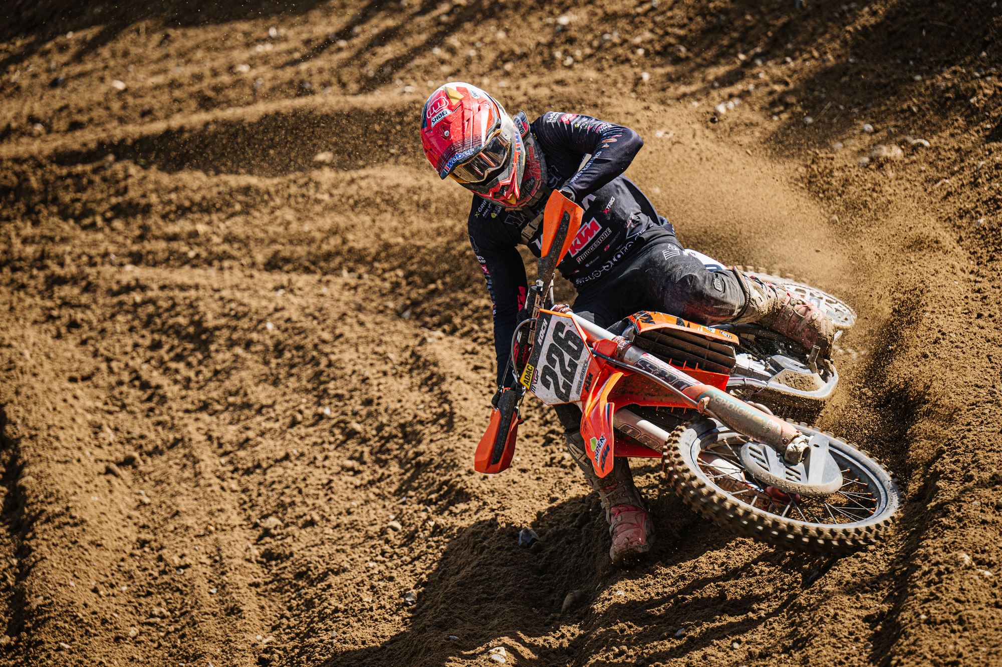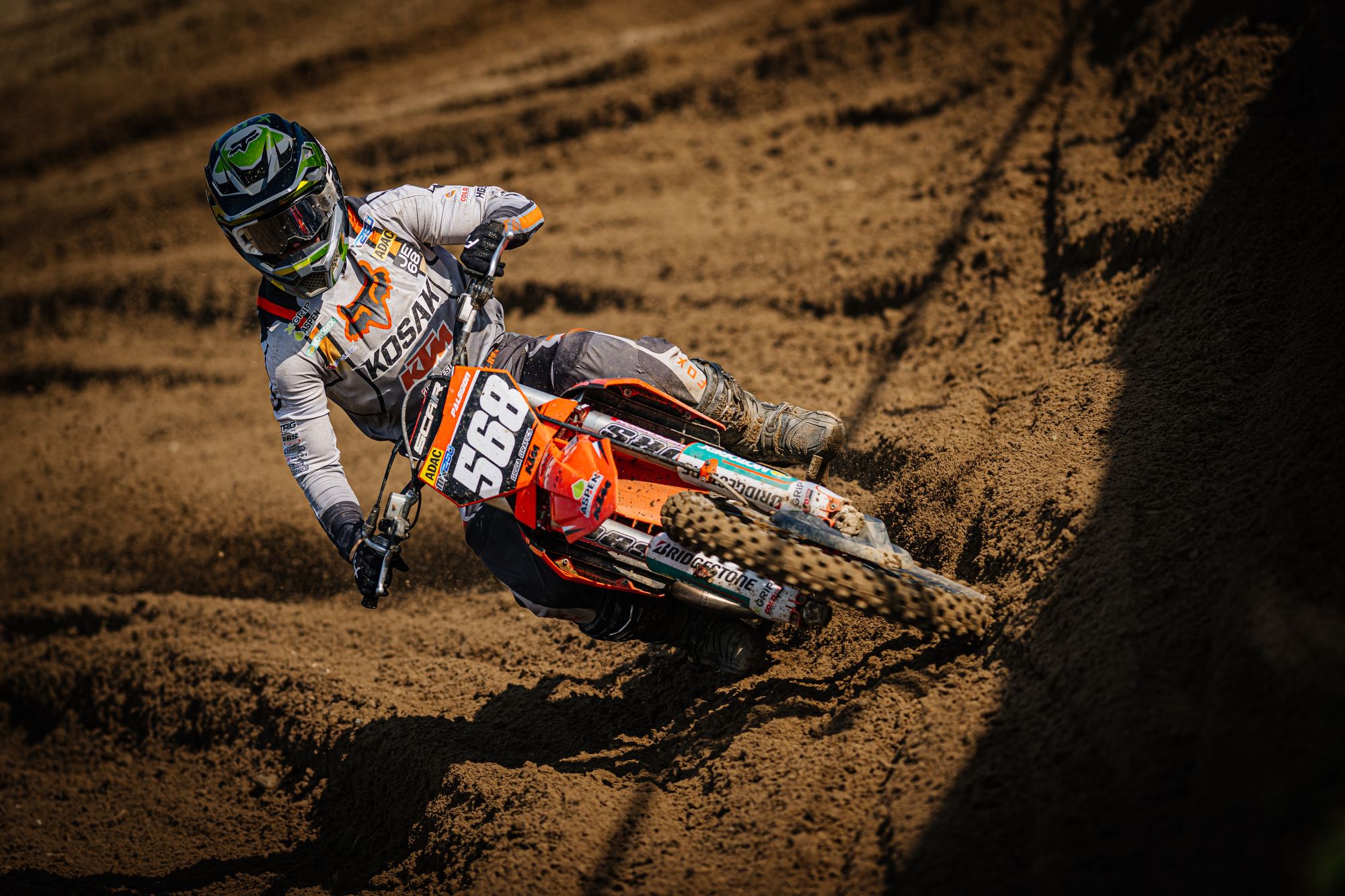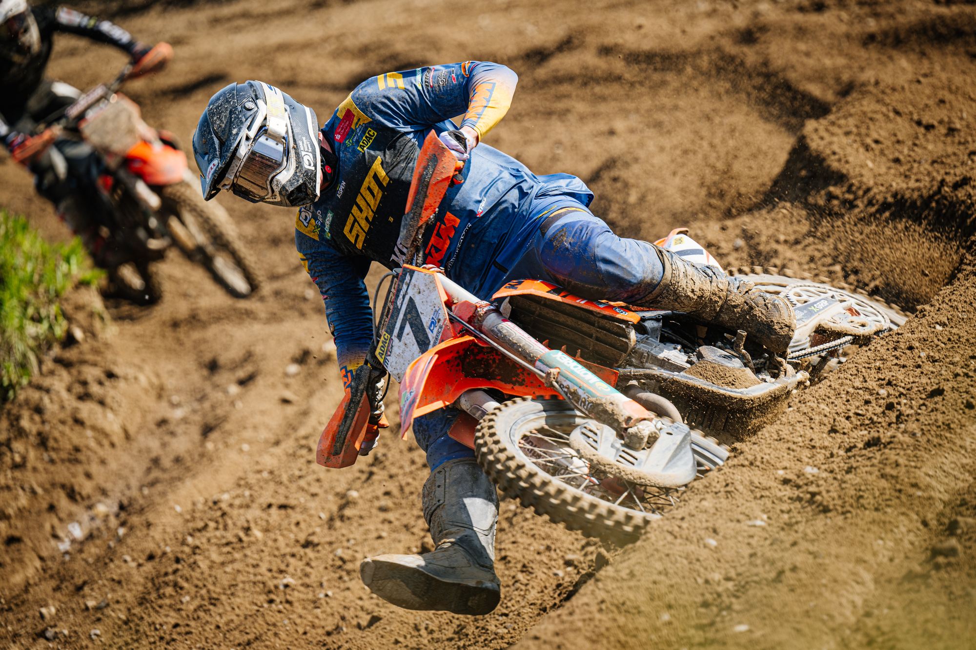 Im zweiten Durchgang war er nach dem Start gleich wieder in der Spitzengruppe, kam in einen guten Flow und konnte in der neunten von sechzehn Runden die Führung übernehmen. Die Angriffsversuche des Tabellenführers wehrte er sicher ab und holte sich mit vier Sekunden Vorsprung seinen ersten Laufsieg bei einem ADAC MX Masters Rennen in diesem Jahr.