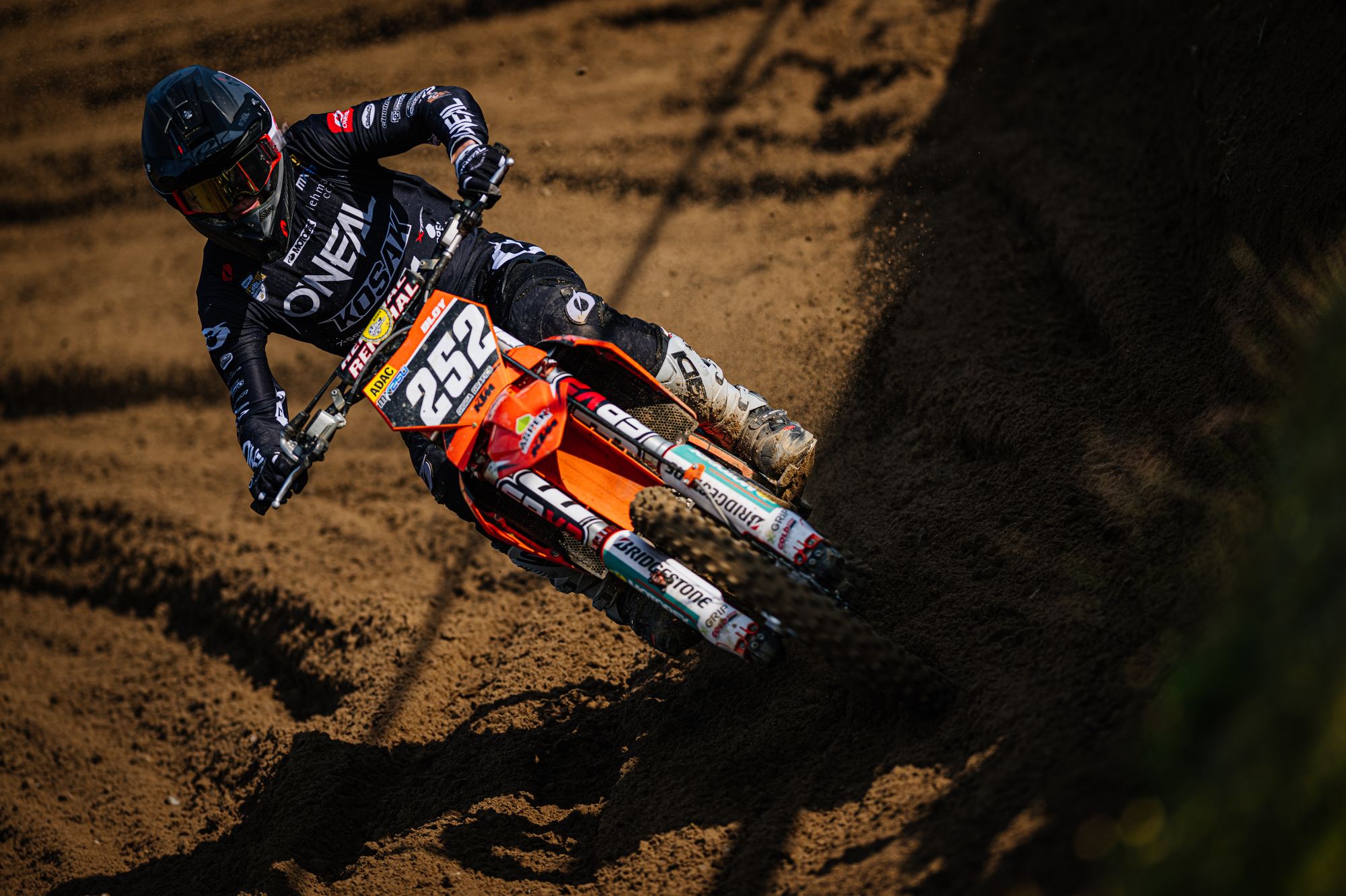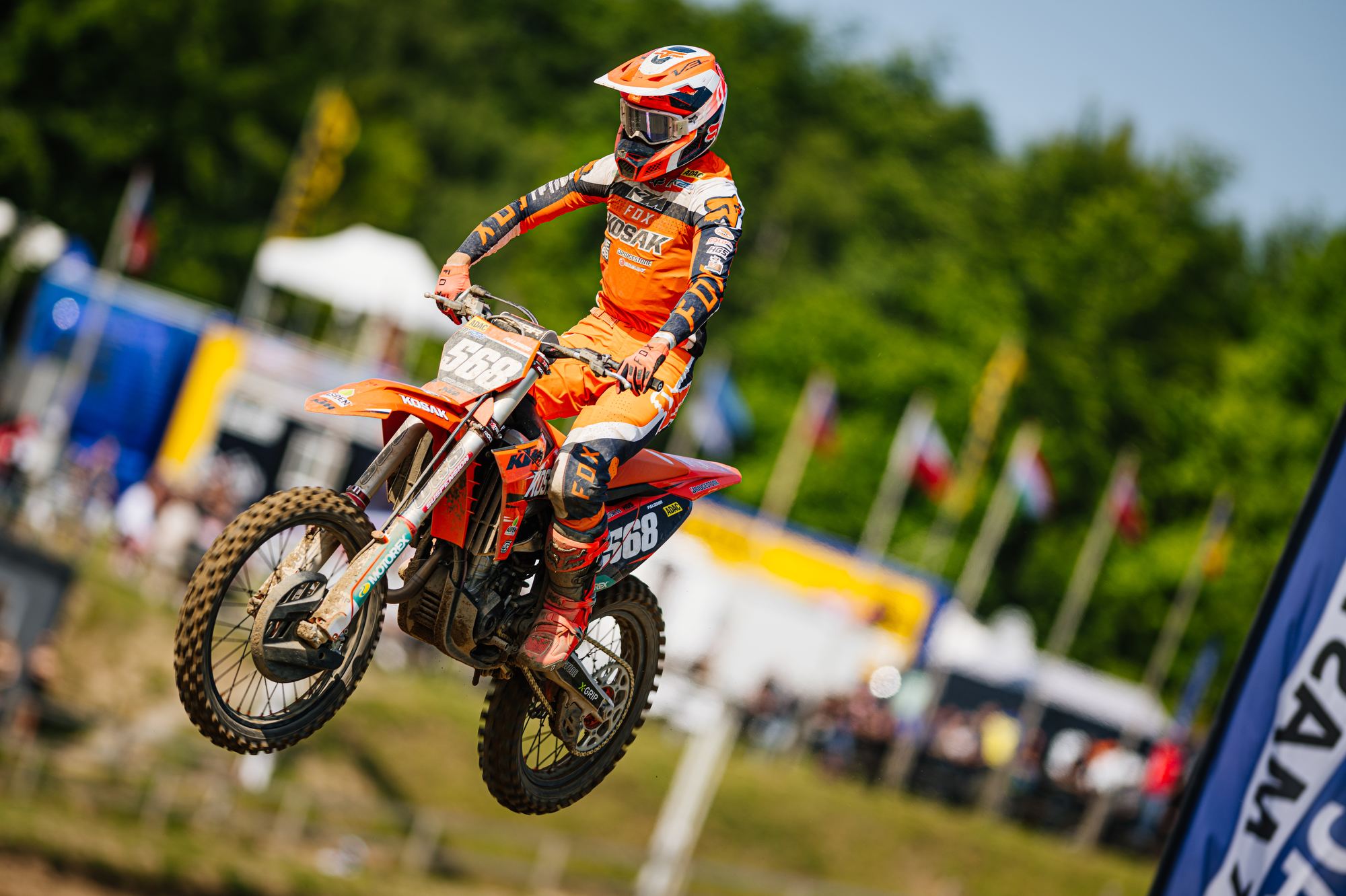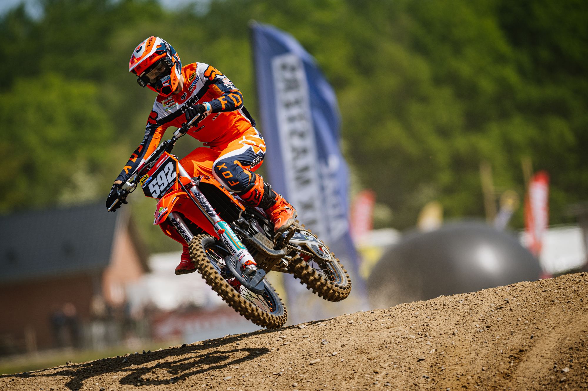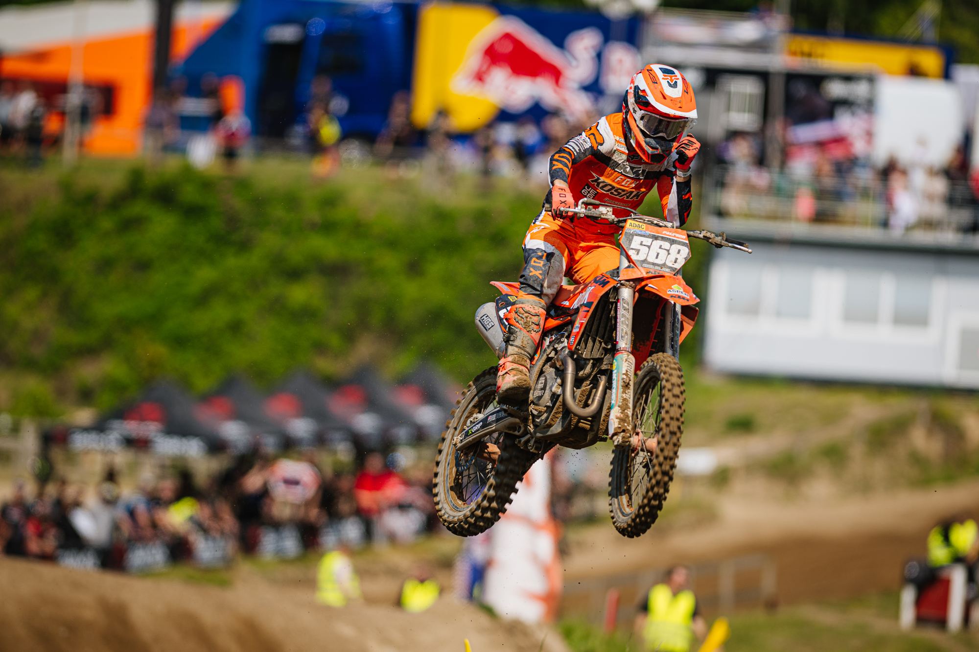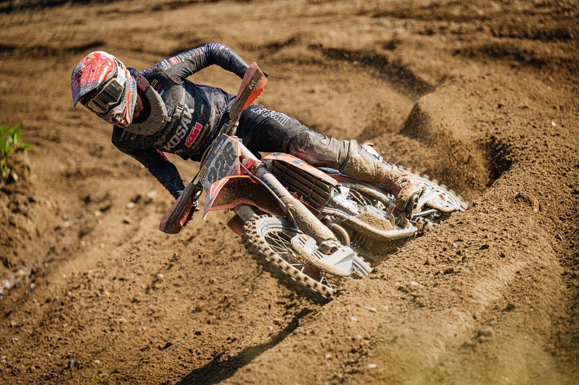 Im zweiten Durchgang war er nach dem Start gleich wieder in der Spitzengruppe, kam in einen guten Flow und konnte in der neunten von sechzehn Runden die Führung übernehmen. Die Angriffsversuche des Tabellenführers wehrte er sicher ab und holte sich mit vier Sekunden Vorsprung seinen ersten Laufsieg bei einem ADAC MX Masters Rennen in diesem Jahr.