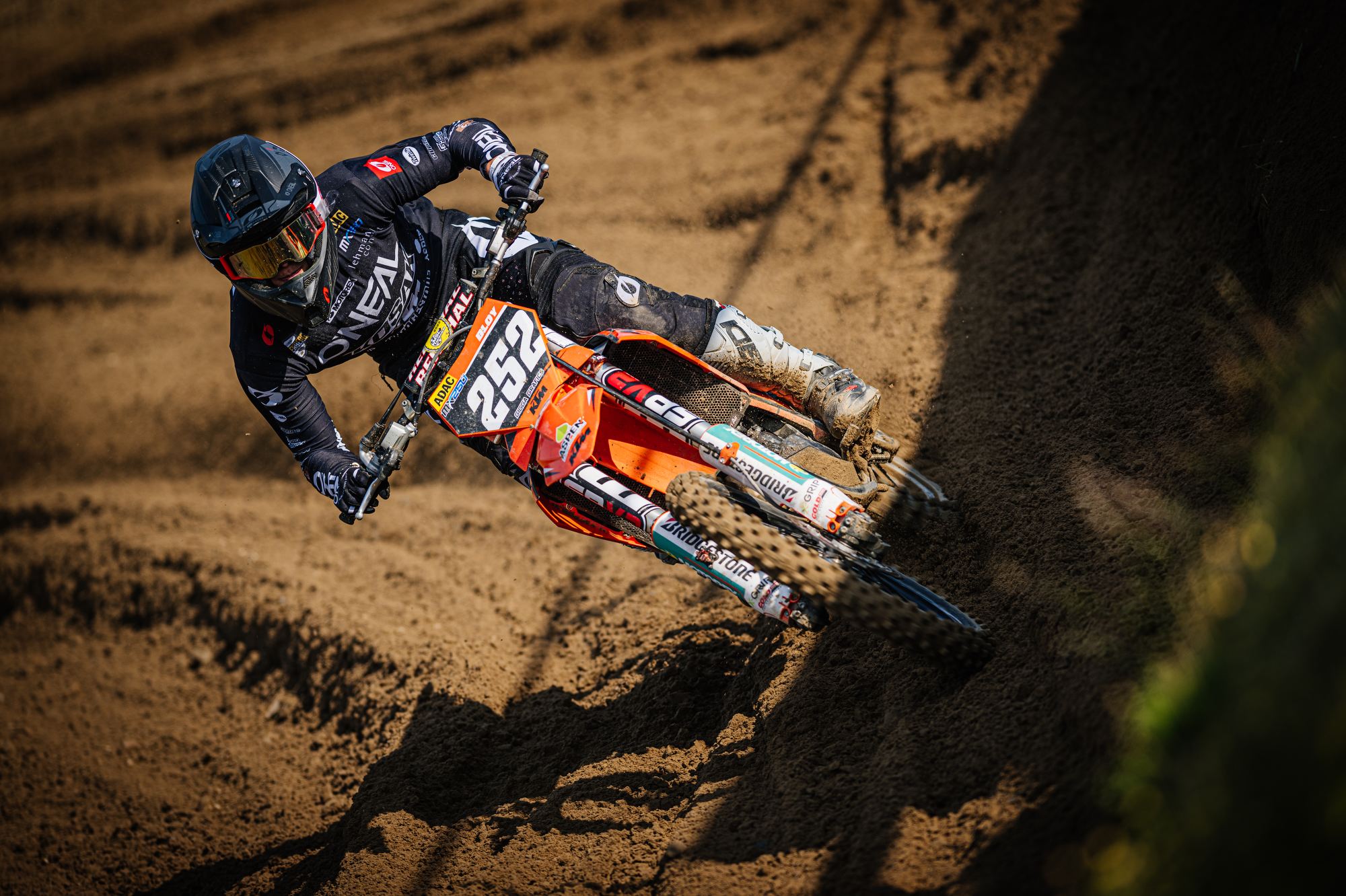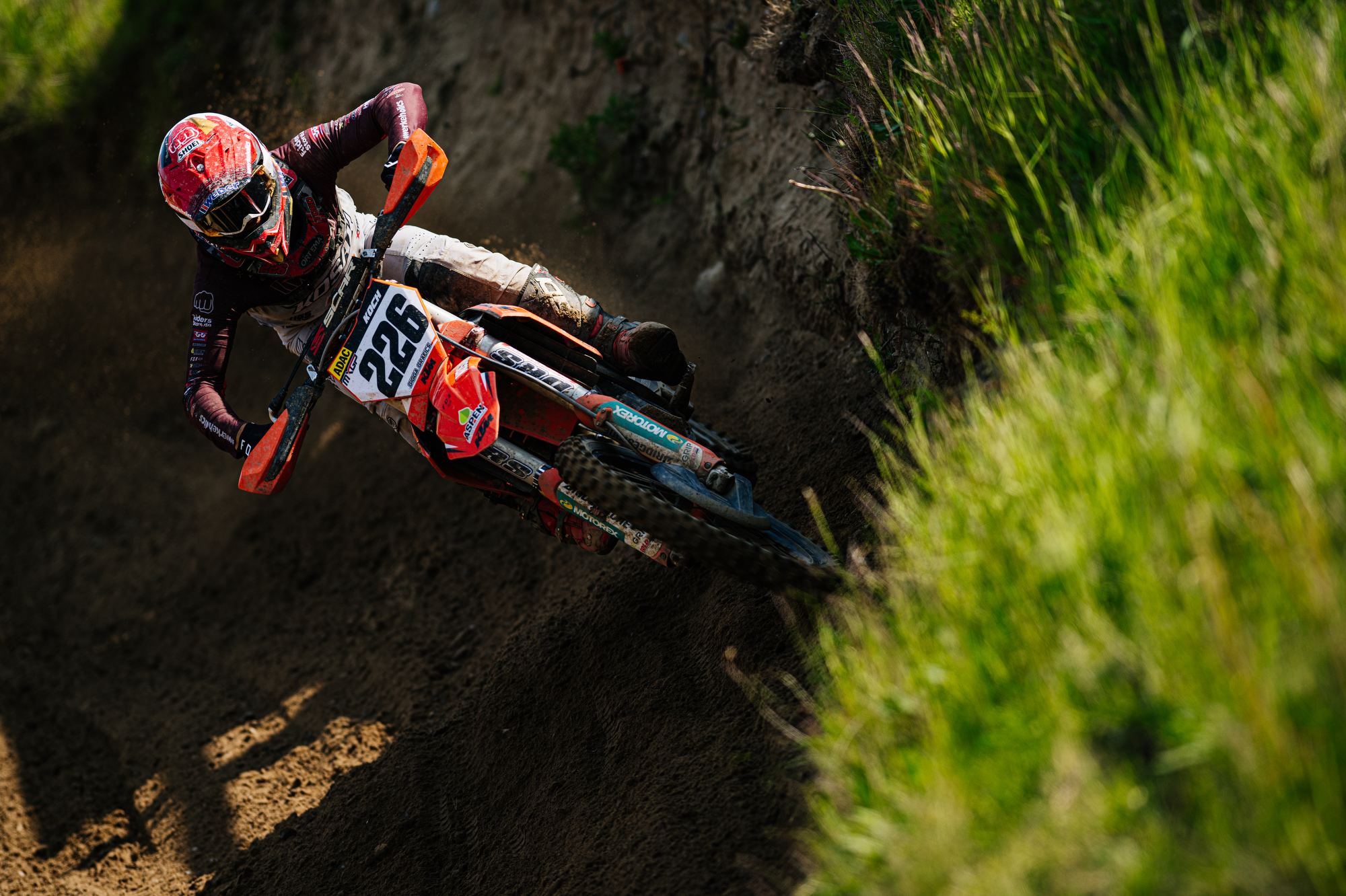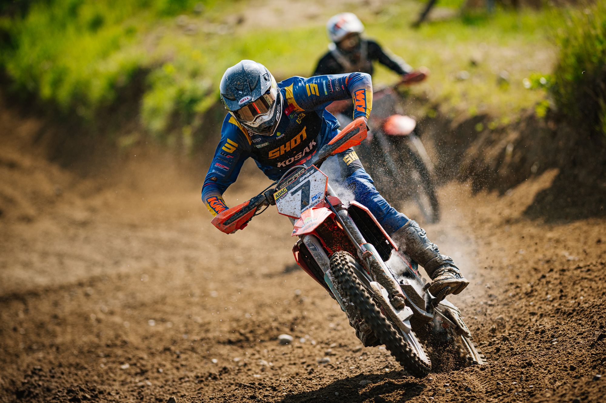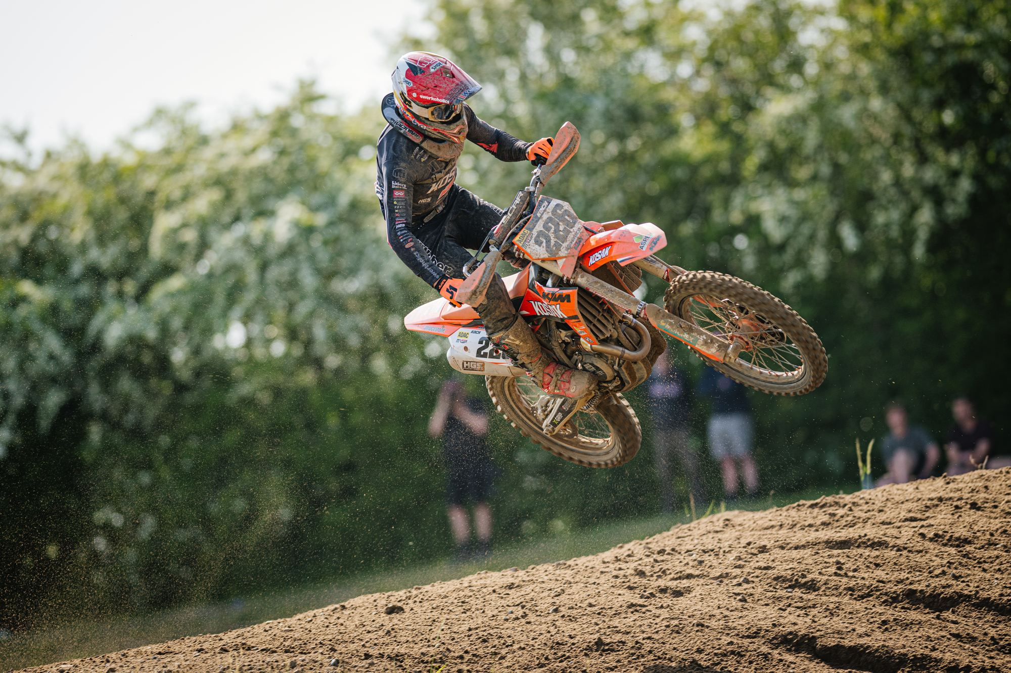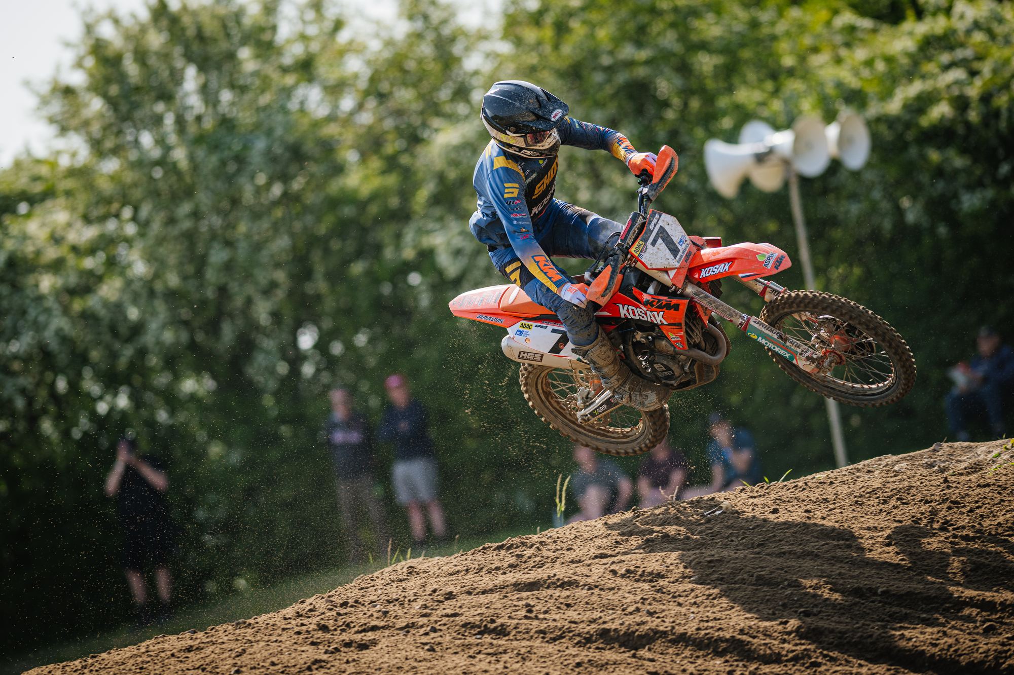 Im zweiten Durchgang war er nach dem Start gleich wieder in der Spitzengruppe, kam in einen guten Flow und konnte in der neunten von sechzehn Runden die Führung übernehmen. Die Angriffsversuche des Tabellenführers wehrte er sicher ab und holte sich mit vier Sekunden Vorsprung seinen ersten Laufsieg bei einem ADAC MX Masters Rennen in diesem Jahr.