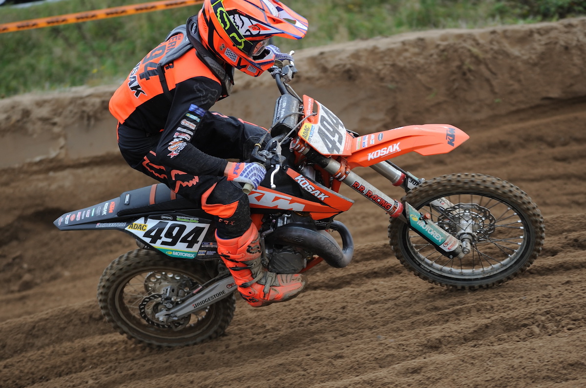 Junior 85 Fahrer Marvin Vökt, der aus der 65-er Klasse aufgestiegen war und in Grevenbroich sein Debut hatte, wurde der Auftritt im Tensfelder Sandkasten erspart. Daher mussten die Junioren Maximilian Werner und Henry Obenland alleine die KOSAK Farben vertreten.
