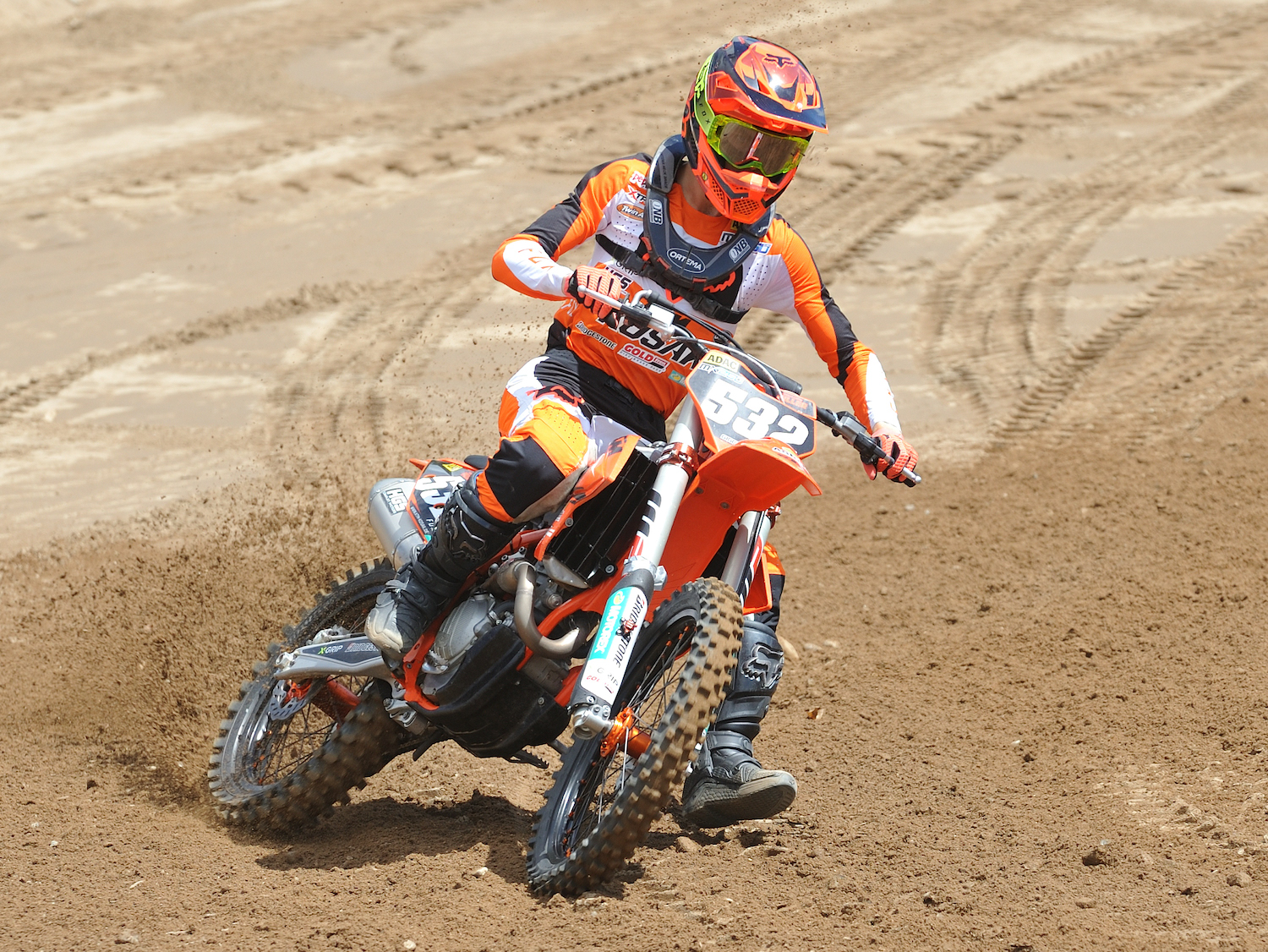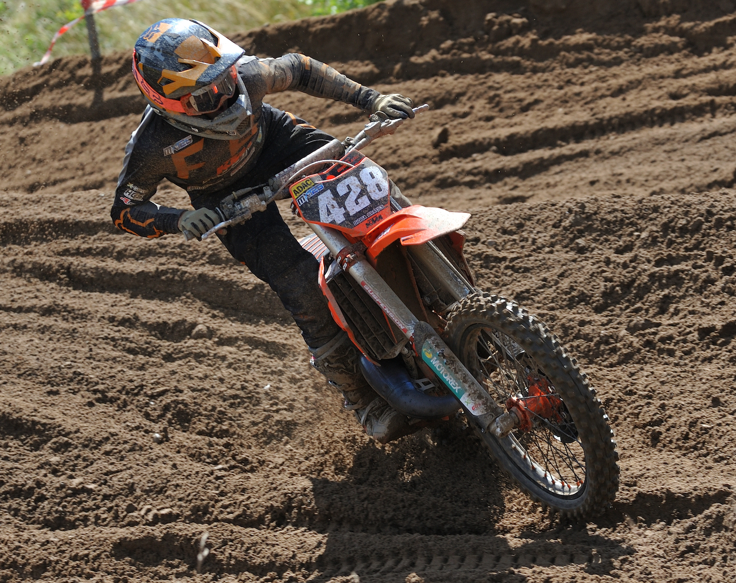 Henry Obenland schaffte in dem von ihm absolut nicht geliebten Sand die Qualifikation für die Rennen. Im ersten Lauf am Samstag fuhr er das Rennen tapfer zu Ende, kam aber außerhalb der Punkte ins Ziel. Am Sonntag schlug die Defekthexe nach sechs Runden gnadenlos zu und warf Henry komplett aus dem Wettbewerb. Nun freut er sich, wenn es Ende Juli in Gaildorf, dann auf Hartboden, das nächste Rennen zum ADAC MX Junior Cup 125 gibt.