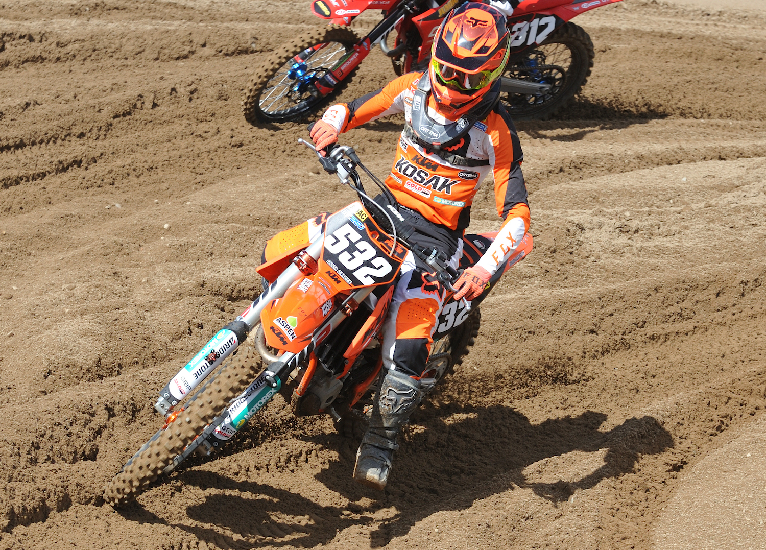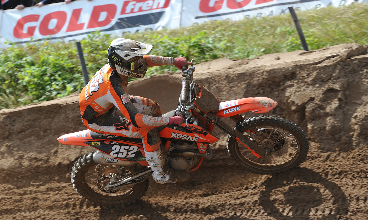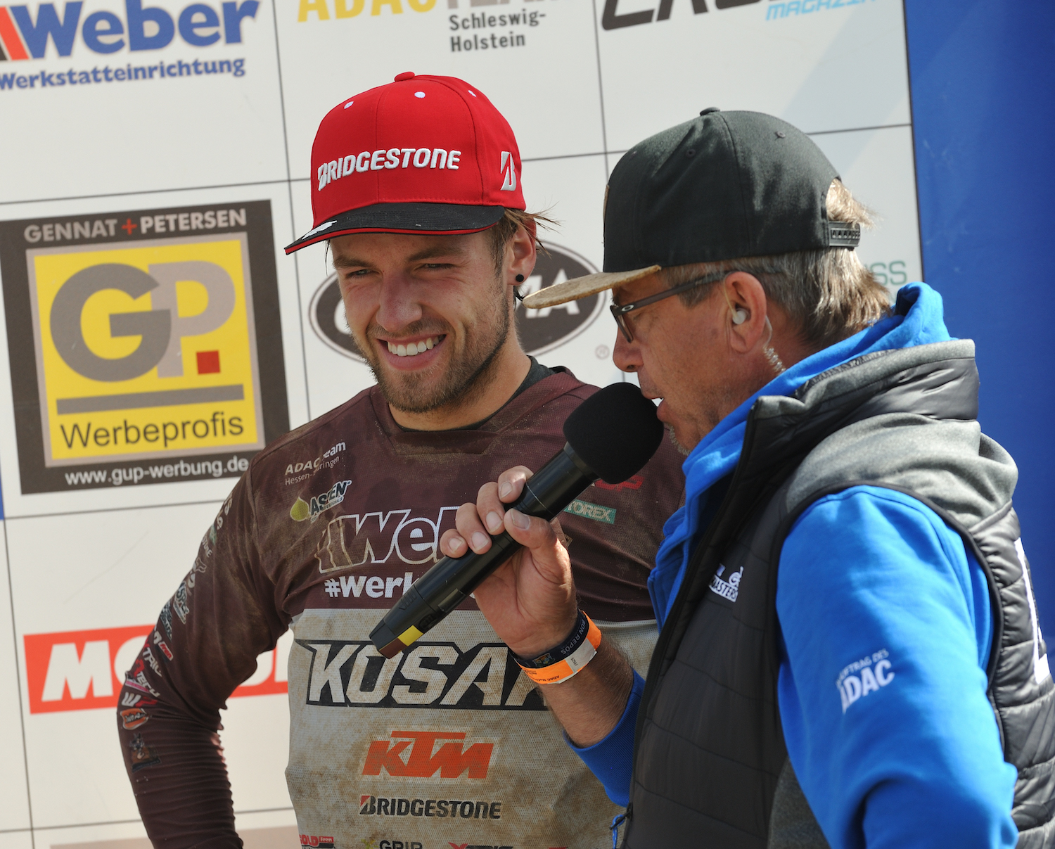 Für den Teamfahrer Tom Koch war die Strecke in Tensfeld durch vorangegangene Veranstaltungen bekannt. Sein erklärtes Ziel war es, seinen dritten Platz zu verbessern, aber mindestens zu halten. Dass er dazu in der Lage ist, zeigte er im Zeittraining mit der zweitschnellsten Zeit aller beiden Trainingsgruppen. Bei idealem Wetter, sonnig, aber nicht zu heiß, wurde am Samstagnachmittag das erste Rennen gestartet. Tom Koch war sofort in der Spitzengruppe dabei und fuhr ab der dritten Runde auf Platz drei, den er bis zum Ziel nicht mehr abgab. Dazu Tom Koch: „Der Start war gut. Ich habe aber zu lange gebraucht bis ich überholen konnte. Irgendwie hat mir dann auch ein bisschen der Rhythmus gefehlt um an die Führenden ran zu kommen“. In der Nacht zu Sonntag hatte es leicht geregnet und dadurch den Kurs staubfrei, aber rutschiger gemacht. Tom Koch kam wieder gut aus dem Startgatter, lag schnell auf der vierten Position, die er aber bis zum Rennende nicht verbessern konnte. Auch in das dritte Rennen klappte der Start für Tom gut. Schnell hatte er sich den dritten Platz gesichert und brachte ihn mit 15 Sekunden Vorsprung ins Ziel. „Ich denke das war meine beste Fahrt an diesem Wochenende. Ich muss bei den nächsten Rennen versuchen, nicht zu viel Zeit beim Überholen zu verlieren, damit ich an den Führenden dran bleiben und gar noch attackieren kann. Mit dem dritten Platz in der Gesamtwertung bin ich aber zufrieden“, fasste Tom seine Rennen in Tensfeld zusammen. Tom Koch bleibt in der ADAC MX Masters Wertung weiterhin auf dem dritten Rang, den er bis zum Saisonende noch verbessern möchte. An Sommerpause ist für den Thüringer nicht zu denken. Am kommenden Wochenende steht er im nordböhmischen Loket bei einem WM Rennen hinter dem Startgatter.