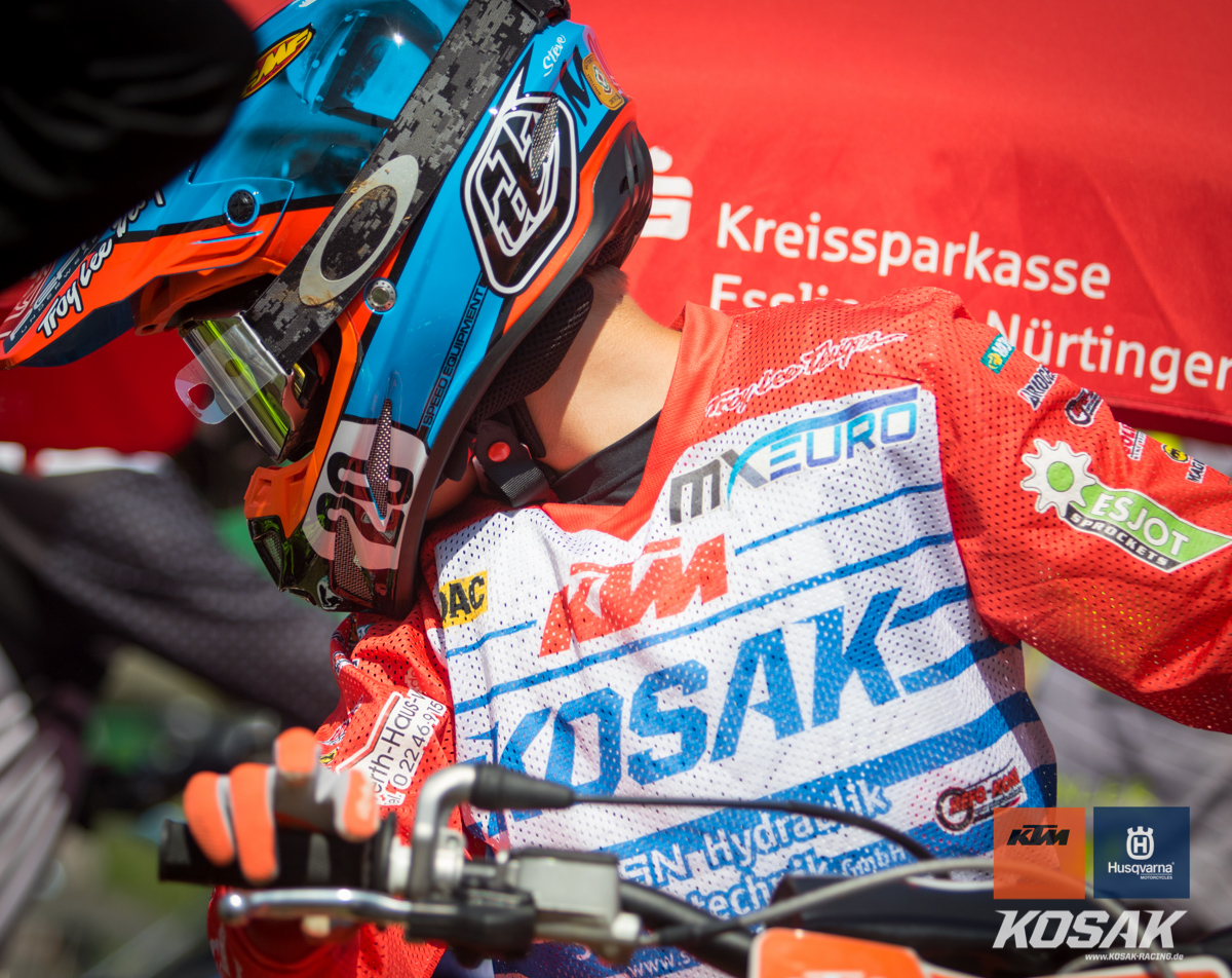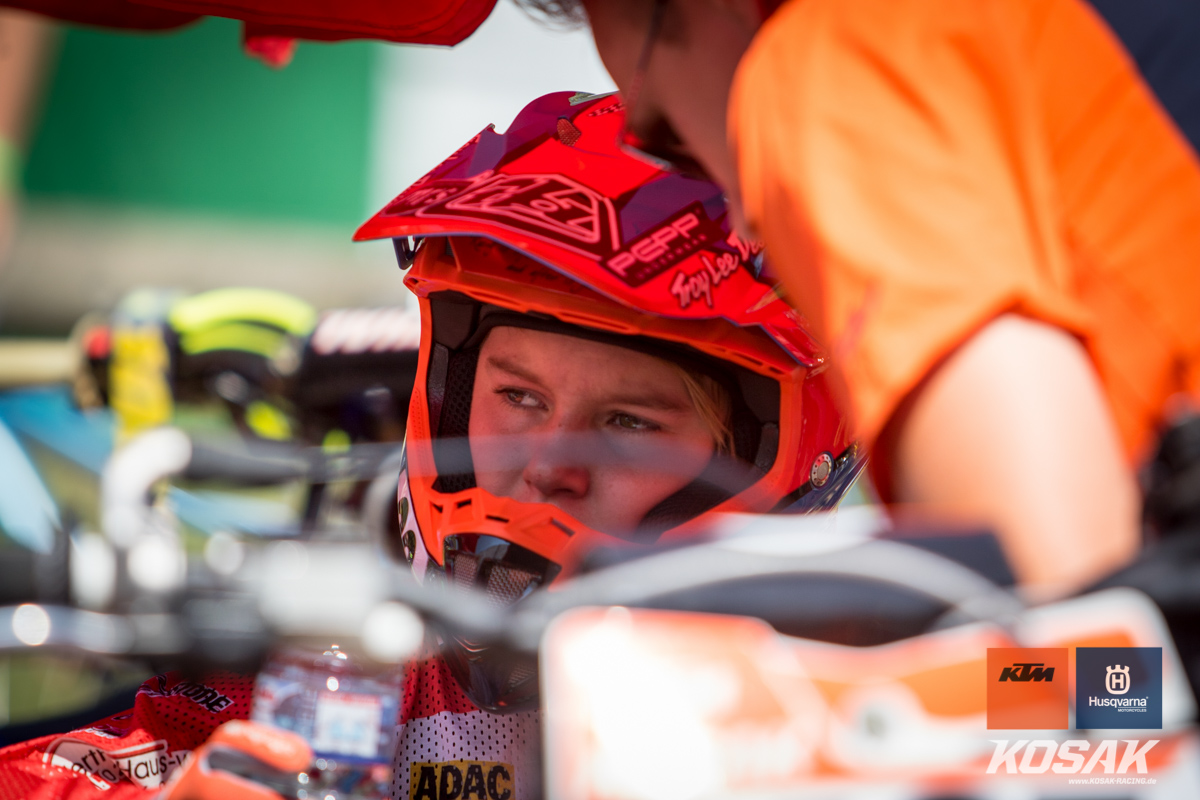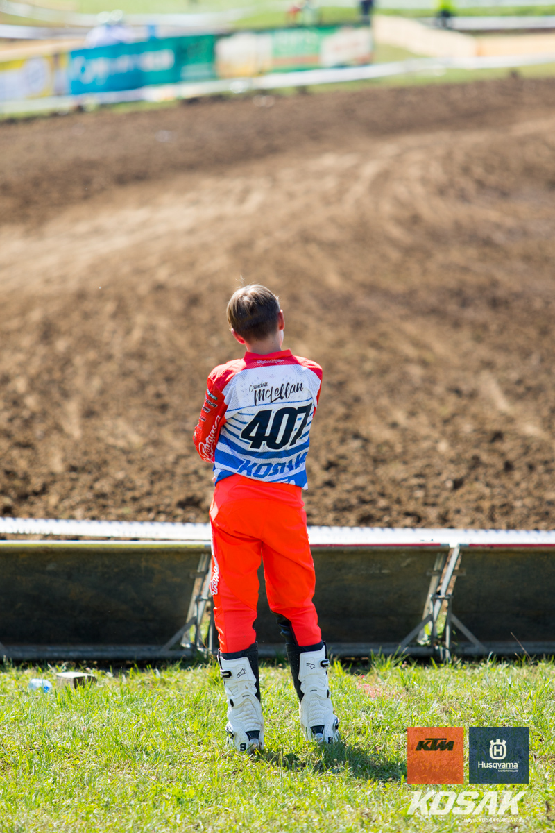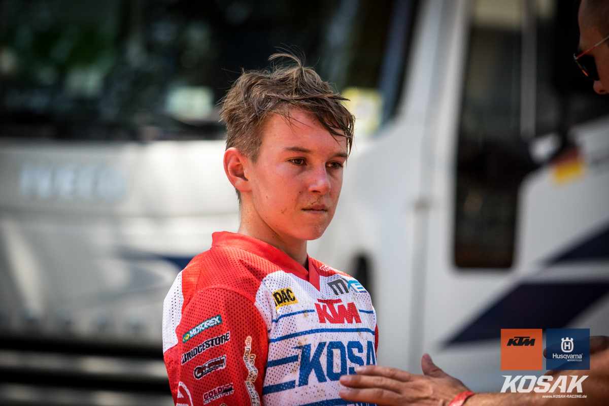 Camden McLellan, der derzeit den ADAC Junior Cup 85cc anführt, machte dieses Wochenende einen Gaststart in der 2-Takt Klasse auf einer KTM SX 125 2019 für das Kosak Team. Den Start zum ersten Lauf verpatzte der 14-jährige, somit musste er sich von hinten vor kämpfen und fuhr noch Platz 7 ins Ziel. Der zweite Start sah da schon anders aus… mit einem Holeshot ging Camden in die erste Runde. Nach einem Zweikampf mit Moritz Schittenhelm konnte er lang auf Platz 2 fahren bis sein Kreislauf Probleme machte. Zwei Runden vor Schluss musste Camden mehrmal während dem Fahren brechen. Er hielt sich aber Tapfer und fuhr noch als dritter ins Ziel.