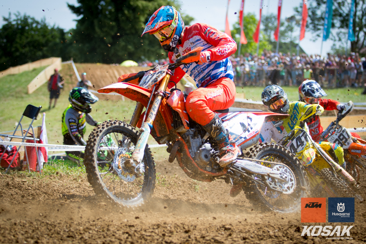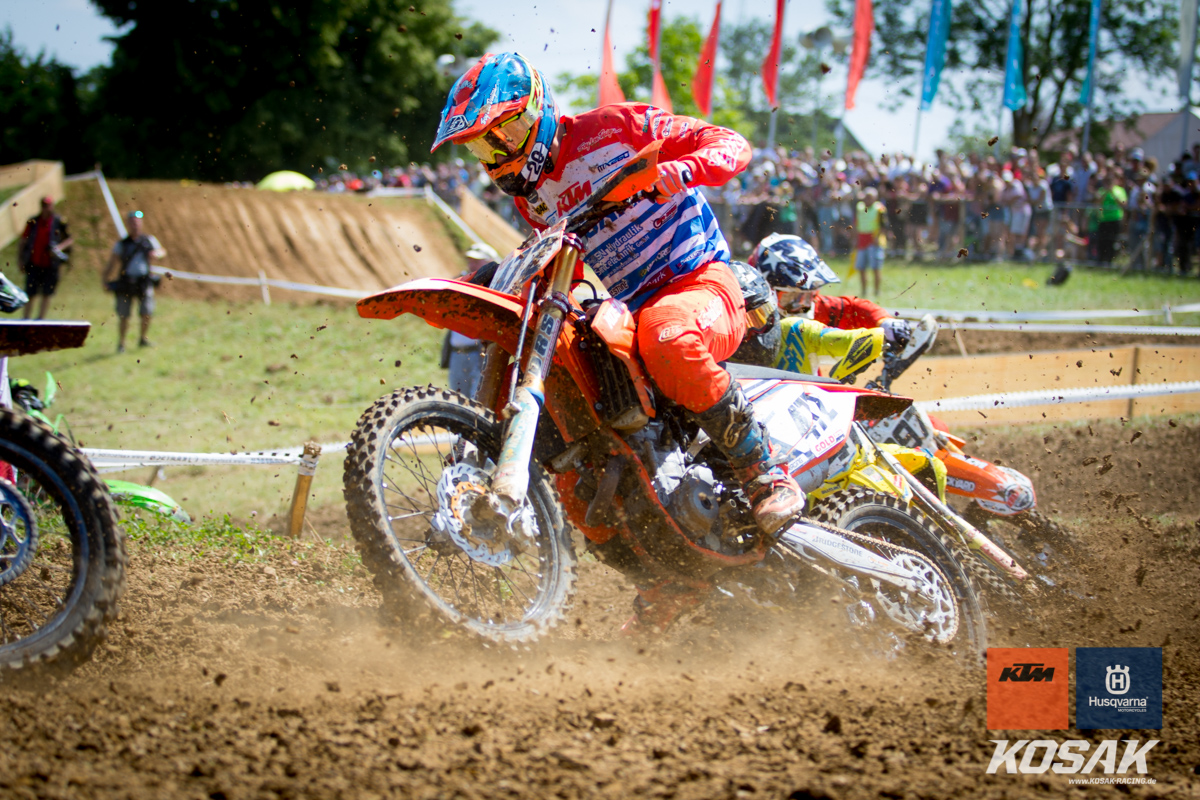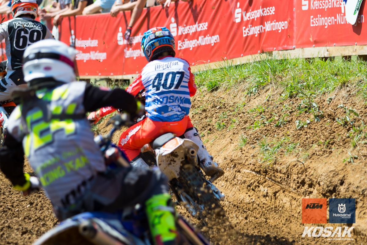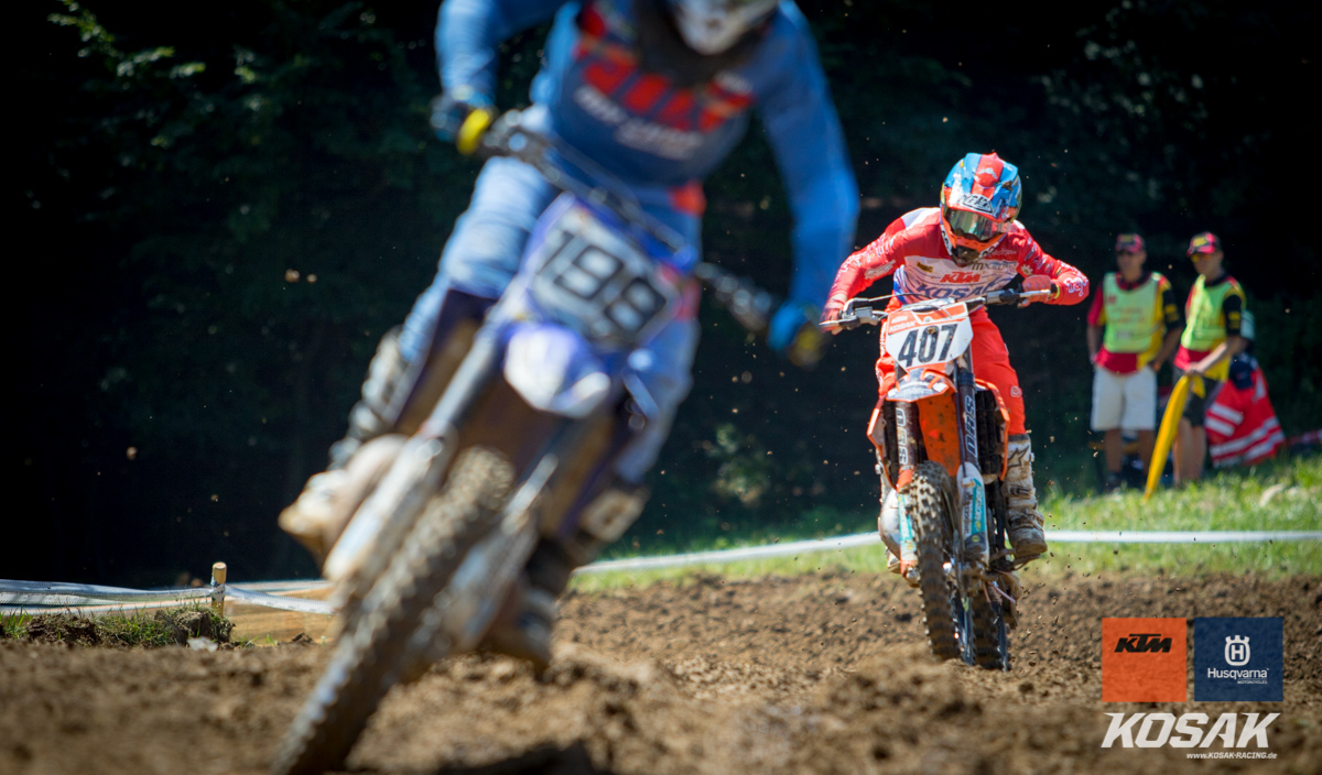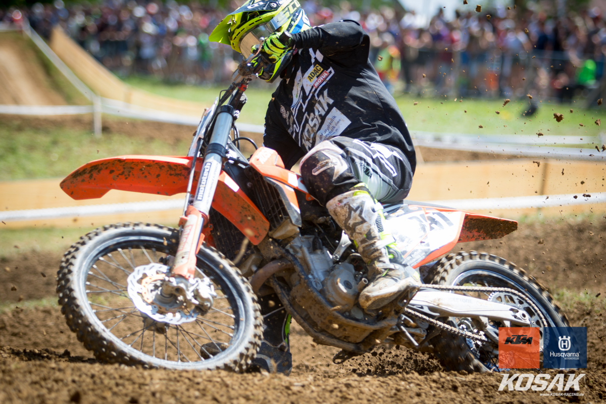 Camden McLellan, der derzeit den ADAC Junior Cup 85cc anführt, machte dieses Wochenende einen Gaststart in der 2-Takt Klasse auf einer KTM SX 125 2019 für das Kosak Team. Den Start zum ersten Lauf verpatzte der 14-jährige, somit musste er sich von hinten vor kämpfen und fuhr noch Platz 7 ins Ziel. Der zweite Start sah da schon anders aus… mit einem Holeshot ging Camden in die erste Runde. Nach einem Zweikampf mit Moritz Schittenhelm konnte er lang auf Platz 2 fahren bis sein Kreislauf Probleme machte. Zwei Runden vor Schluss musste Camden mehrmal während dem Fahren brechen. Er hielt sich aber Tapfer und fuhr noch als dritter ins Ziel.