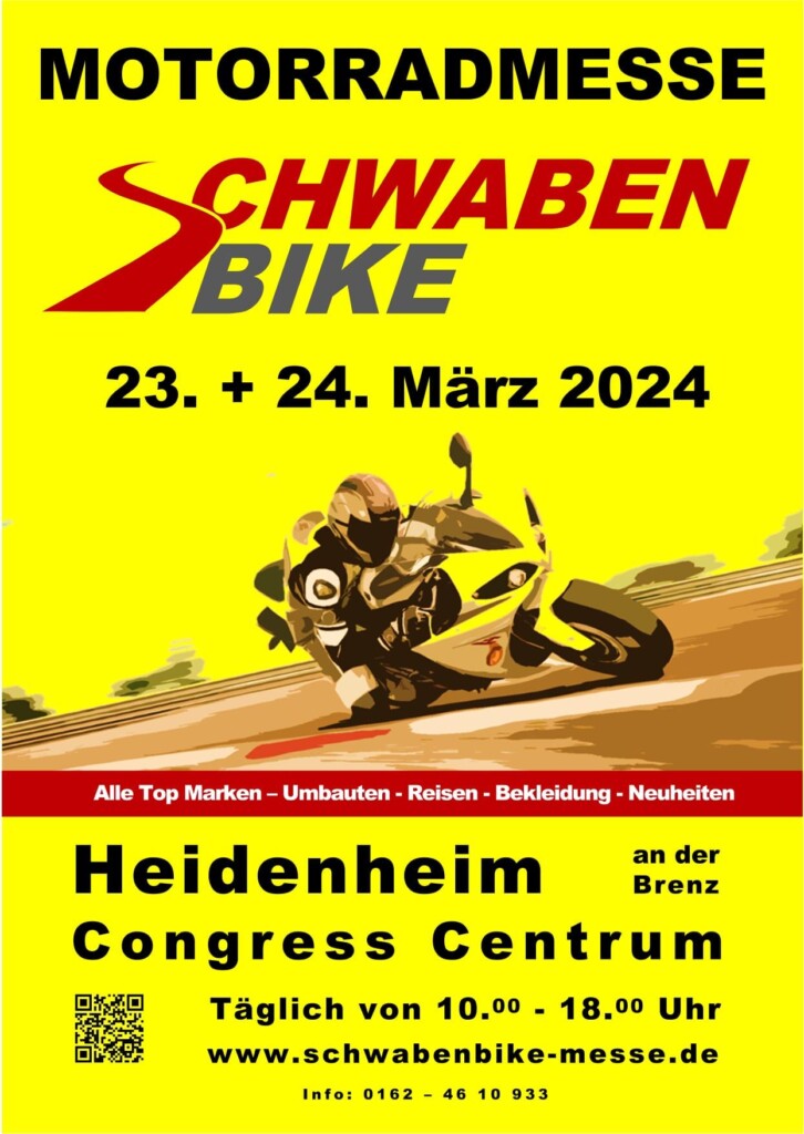 Schwaben Bike Messe Heidenheim 2024 Die „SCHWABENBIKE“ 2024 in Heidenheim (Brenz) ist die regionale schwäbische Motorradmesse zwischen Stuttgart und Augsburg, auf der die TOP Marken der Szene vertreten sind. Am Samstag 23. und Sonntag 24. [...]