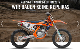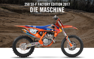 250 SX-F FACTORY EDITION 2017 Die neue 250 SX-F ist das leichteste Bike und bietet die beste Performance ihrer Klasse. Sie ist die perfekte Wahl sowohl für Amateur- als auch Profi-Piloten. Ihre Kombination aus einem leistungs- und drehmomentstarken Motor und einem leichten und agilen Fahrwerk ist der Schlüssel zu [...]
