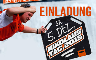 Raus aus der Winterstarre und besuchen Sie uns am 5. Dezember zum traditionellen KTM Nikolaustag! Um den Winter zu verkürzen, gibt es einen 50 € KTM Gutschein* für KTM Powerparts und KTM Powerwear. Bitte KTM Gutschein herunterladen und ausgedruckt mitbringen!