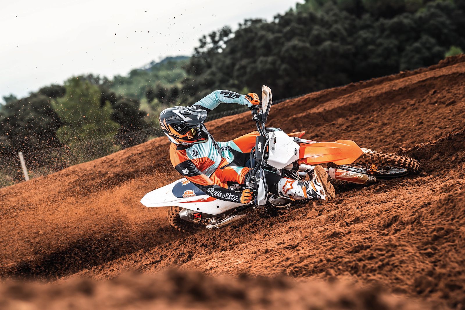 Um dieser beeindruckenden Serie noch weitere Erfolge hinzuzufügen, braucht es Motivation, ein Bekenntnis zur Entwicklung des Rennsports und Investitionen in die Talent- und Nachwuchsprogramme von KTM. All das bereitet den perfekten Nährboden für die KTM-SX-Baureihe, da diese konkurrenzlosen Technologien in der Hitze der Schlacht getestet werden, bevor sie in die Serienmaschinen einfließen. Die Sportminicycles KTM 50 SX, KTM 65 SX und KTM 85 SX bieten eine starke Basis für Junioren, um in höhere Kategorien aufzusteigen, wo dann die 2-Takt-Modelle KTM 125 SX, KTM 150 SX und KTM 250 SX sowie die KTM 250 SX-F, die KTM 350 SX-F und die KTM 450 SX-F mit 4-Takt-Motor warten, die in jeder Klasse die schärfsten Waffen darstellen.