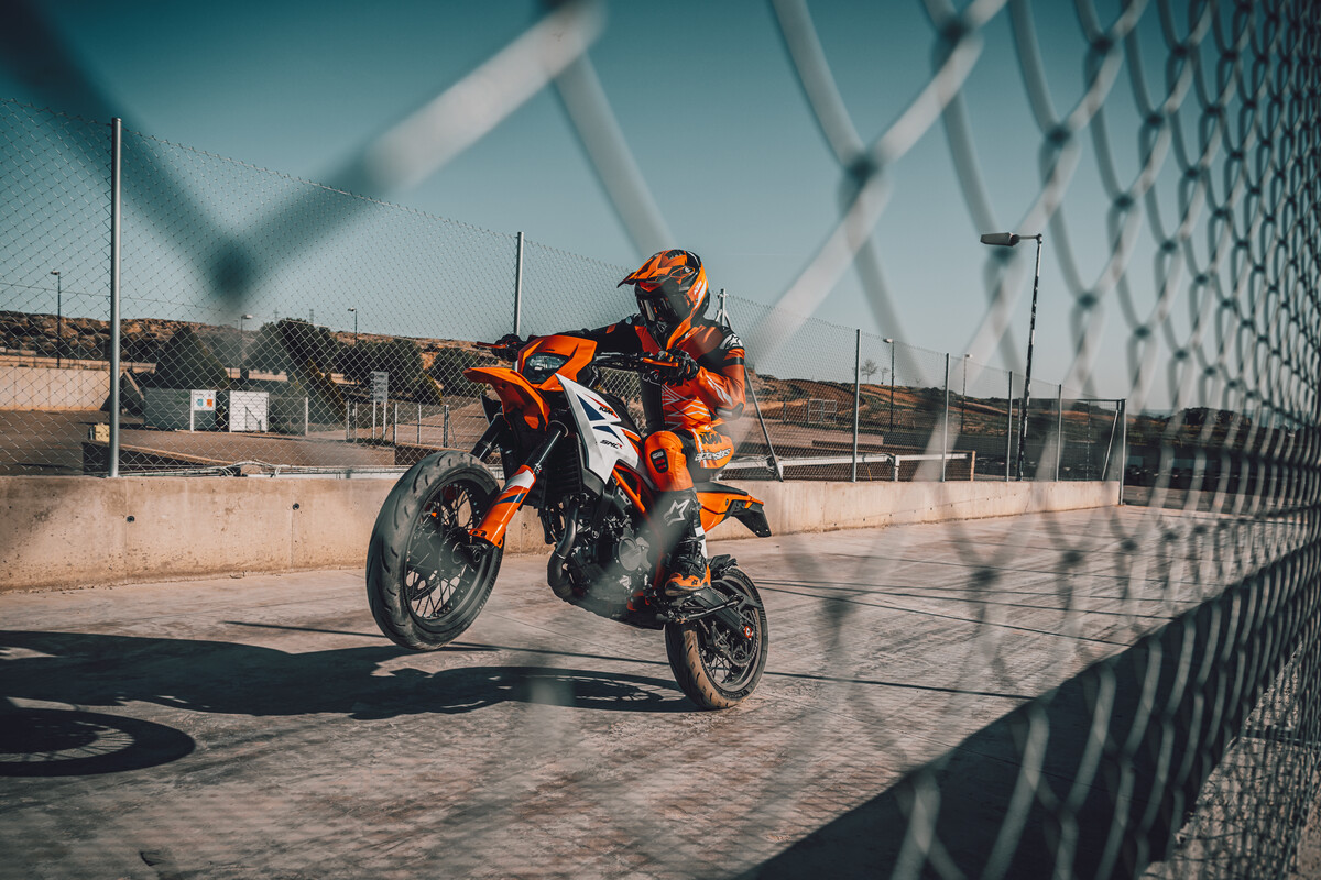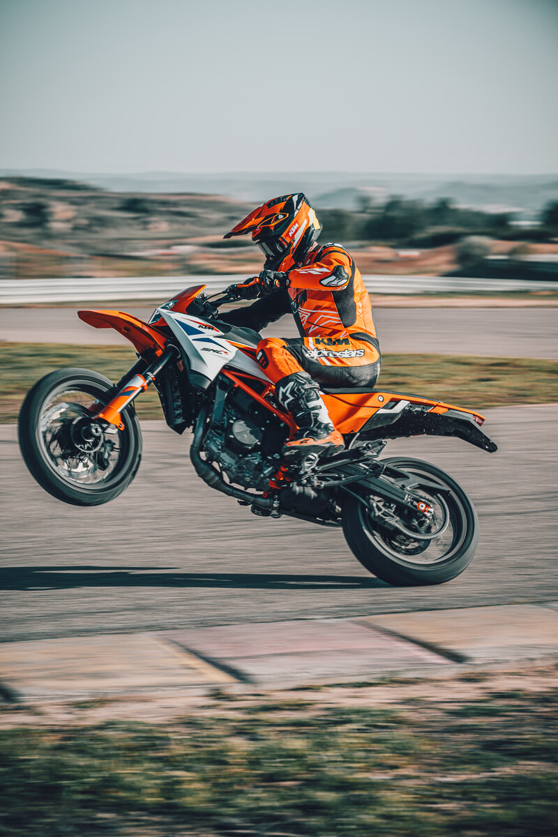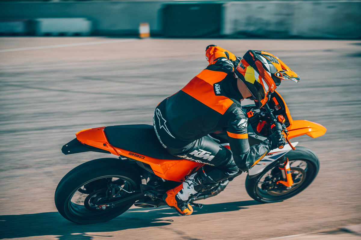 Die KTM 125 SMC R und KTM 390 SMC R bieten Supermoto-Fahrspaß für eine breite Zielgruppe. Mit ihren 17-Zoll-Rädern, griffigen Reifen, langen Federwegen und einer Auswahl an Fahrhilfen, sowie fortschrittlicher Technik ermöglichen sie ein fahrerfreundliches, zugängliches Gesamtpaket für sportliches Fahren.