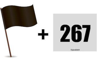Schwarze Flagge in Verbindung mit Start- Nr. auf Signaltafel