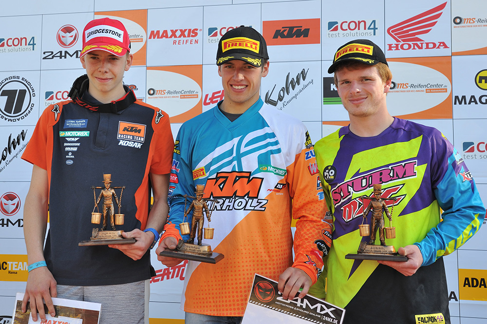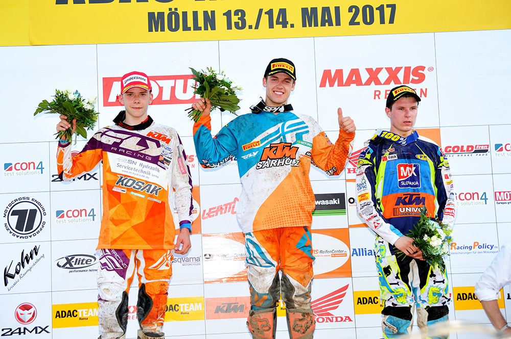 Am Rennsonntag kam Sulivan gut aus dem Gatter und fuhr nach ein paar Zweikämpfen Platz neun ins Ziel. Andy hatte einen guten Start und kam als fünfter aus Runde 1 durchs Ziel. Der Schweizer verlor jedoch ein paar Positionen auf dem technisch anspruchsvollen Kurs in Mölln und beendete den ersten Lauf als 16.  Lauf zwei lief für die zwei Kosak Importe nicht so prickelnd. Andy Baumgarnter stieg auf Platz sechs liegend ab, verletzte sich glücklicherweise nicht ernsthaft und rollte das Feld von hinten auf und brachte noch Platz 18 nach Hause. Sully hatte auf Platz 10 liegend Mitte des Rennens Magenkrämpfe und musste vorzeitig abbrechen.