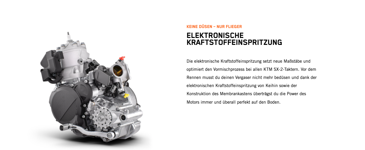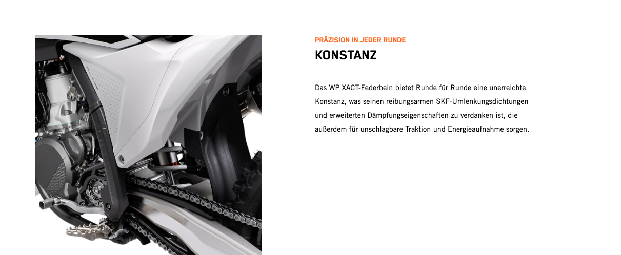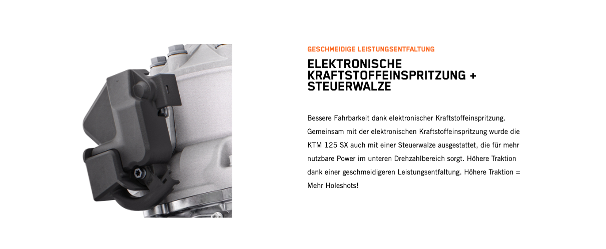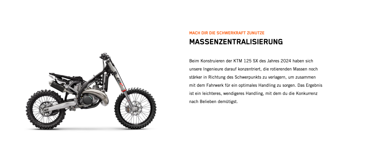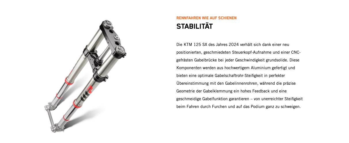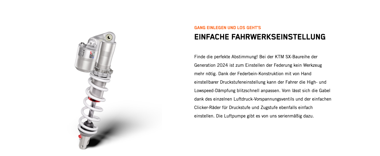 Eine aggressiv genommene Böschung reicht, um zu wissen, dass die KTM 125 SX der Generation 2024 in der 125er-Klasse einer der Hauptanwärter auf den Thron ist. Ihr typischer 2-Takt-Klang wurde nicht nur mit einer elektronischen Kraftstoffeinspritzung verfeinert – auch alle anderen Komponenten dieses Motorrads profitieren von in dieser Klasse ungeschlagenen Weiterentwicklungen. Die KTM 125 SX darf sich mit Fug und Recht als Vorreiterin der 2-Takt-Motocross-Innovation bezeichnen. Und die 2024er-Ausgabe wird auch weiterhin in der 125er-Klasse aufräumen. Du musst nur die Starttaste drücken, Gas geben und Spaß haben