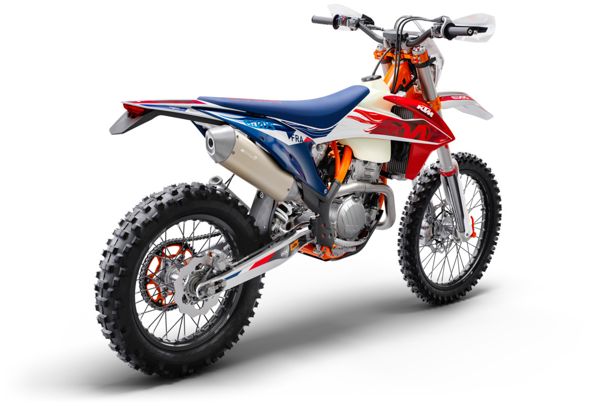 Und wieder einmal krallt sich die KTM 350 EXC-F SIX DAYS mit ihren Stollenreifen in den Boden und verteidigt ihre Stellung als Tausendsassa. Mit ihrer bewährten Performance und Wendigkeit sowie vielen KTM SIX DAYS-Komponenten – ganz abgesehen von einem prall gefüllten Trophäenschrank – bringt sich die KTM 350 EXC-F SIX DAYS des Jahrgangs 2023 für ein weiteres Jahr voller Podestplätze in Stellung.