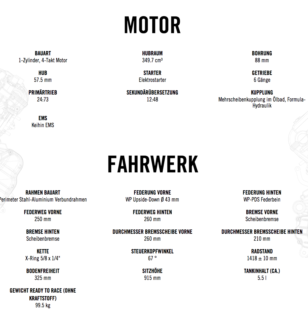 * Die Preise sind voraussichtlich gültig bis einschließlich 31.6.2017. Preis versteht sich als unverbindliche Preisempfehlung des Herstellers (UVP), inklusive 19% MWST., zzgl. Nebenkosten und kann letztendlich je nach KTM Händler davon abweichen.