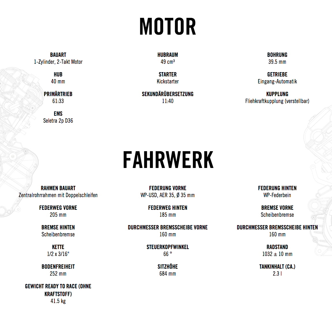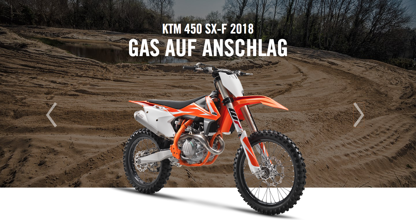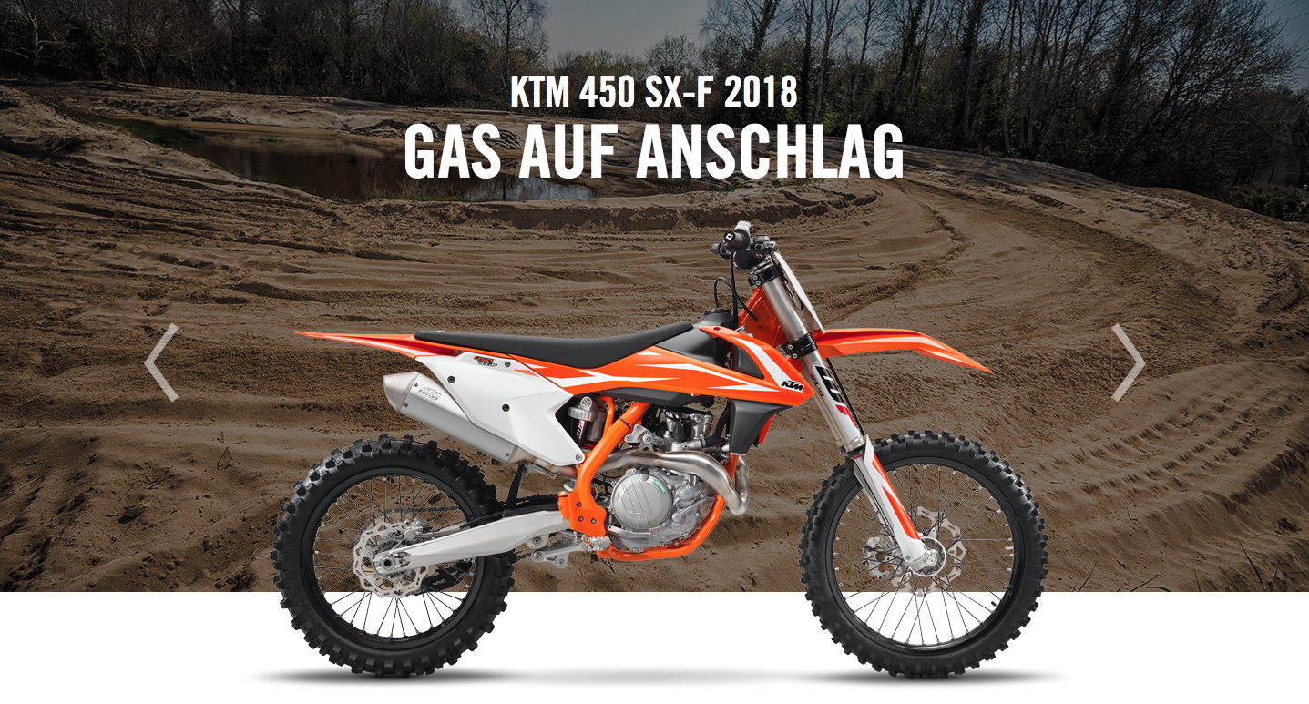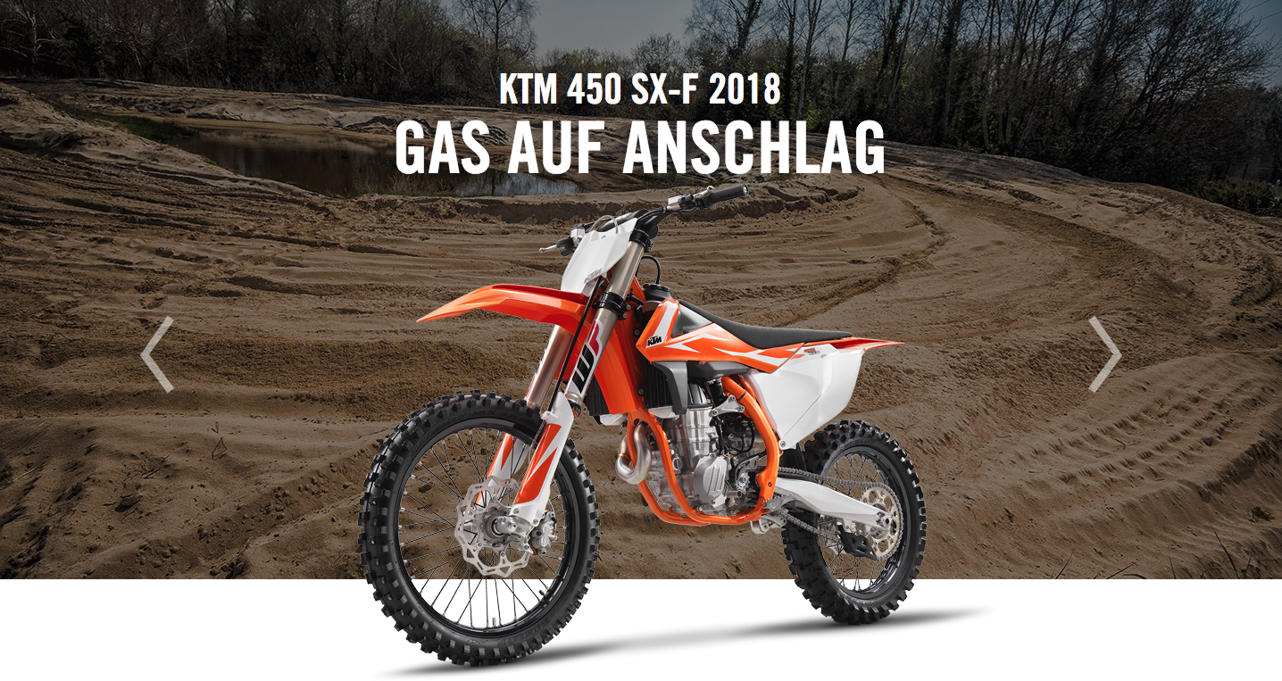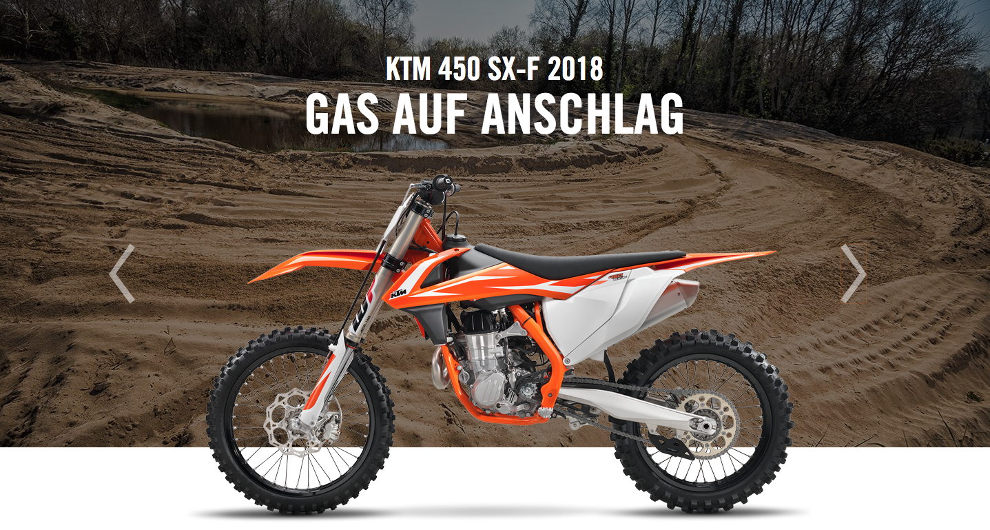 Wenn du auf Gold aus bist, musst du dir eine KTM 450 SX-F besorgen. Mit ihrem kompakten Motor, der explosive und kontrollierbare Power liefert, ist sie die Waffe der Wahl für das Red Bull KTM Factory Team und ihren Champion, Ryan Dungey. Dieses READY TO RACE-Bike dominiert die AMA Supercross-Serie wie keine andere. Ihr Geheimnis? Präzises Handling und unbändige Kraft. Gewinner bitte hier anstellen!