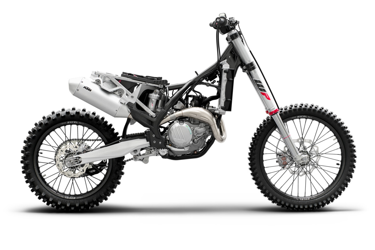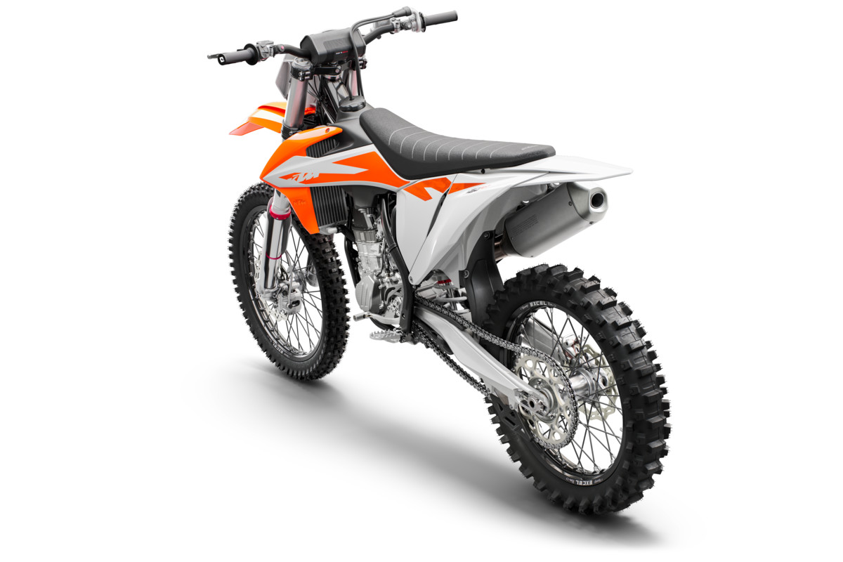 Die KTM 450 SX-F ist eine bewährte Formel und der absolute Maßstab der Branche, was sie mit vielen Meisterschaftssiegen bewiesen hat. Im Modelljahr 2020 liefert dieses Motorrad weiterhin Performance und einfaches Handling auf höchstem Niveau. Mit seinem extrem kompakten Zylinderkopf mit einzelner, obenliegender Nockenwelle und der effizienten elektronischen Kraftstoffeinspritzung wuchtet er unerreichte 63 PS auf die Kurbelwelle. Die KTM 450 SX-F ist ohne Zweifel das schnellste Motocross-Bike auf der Strecke.