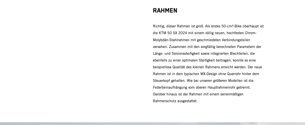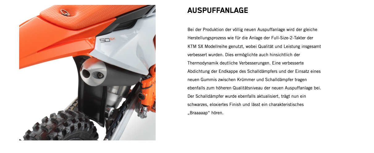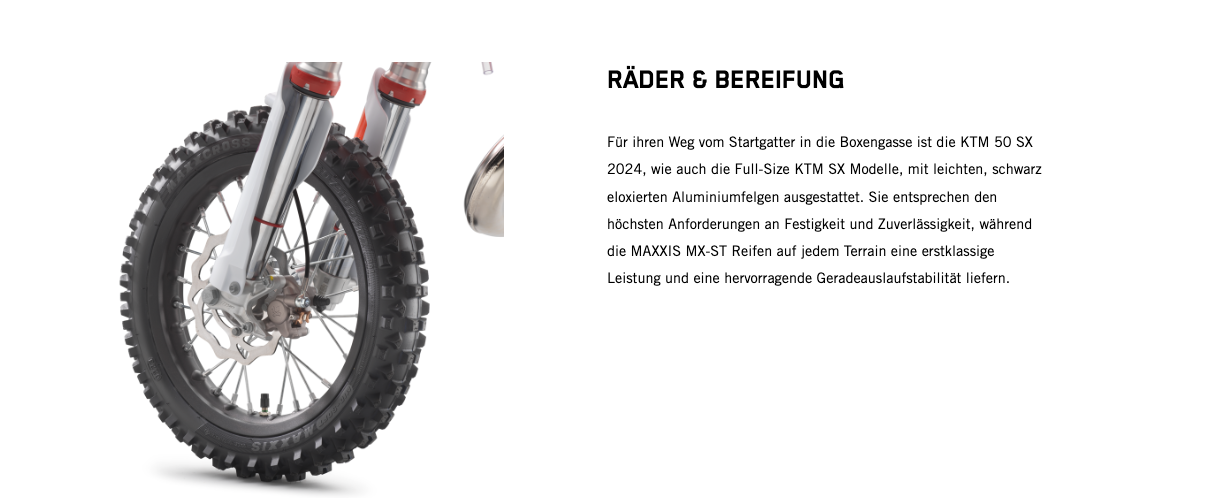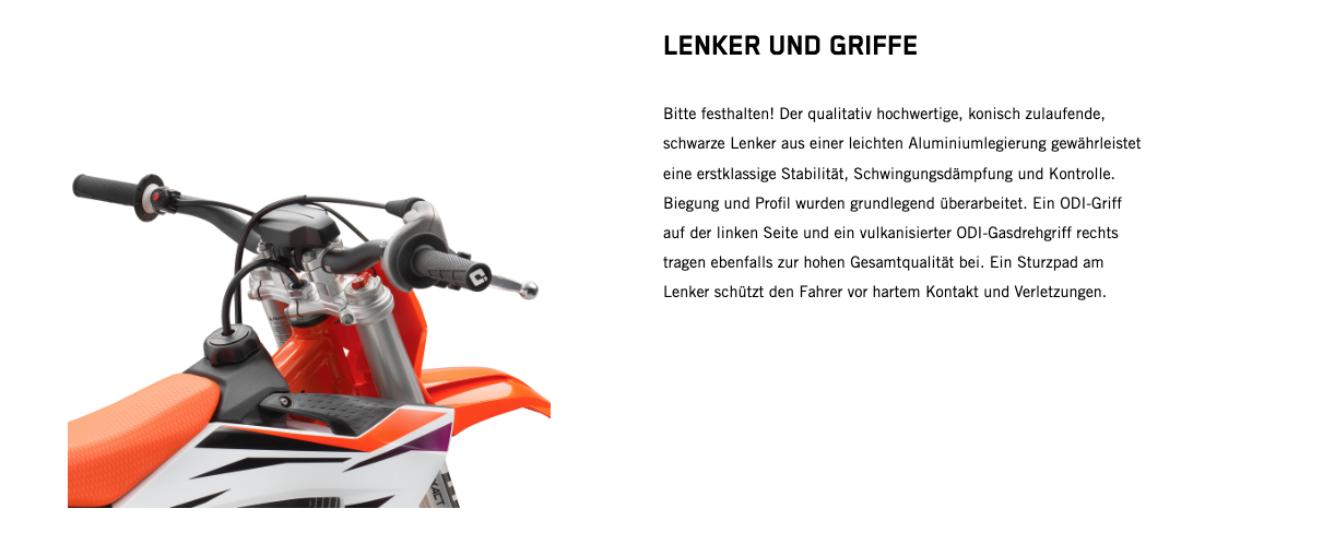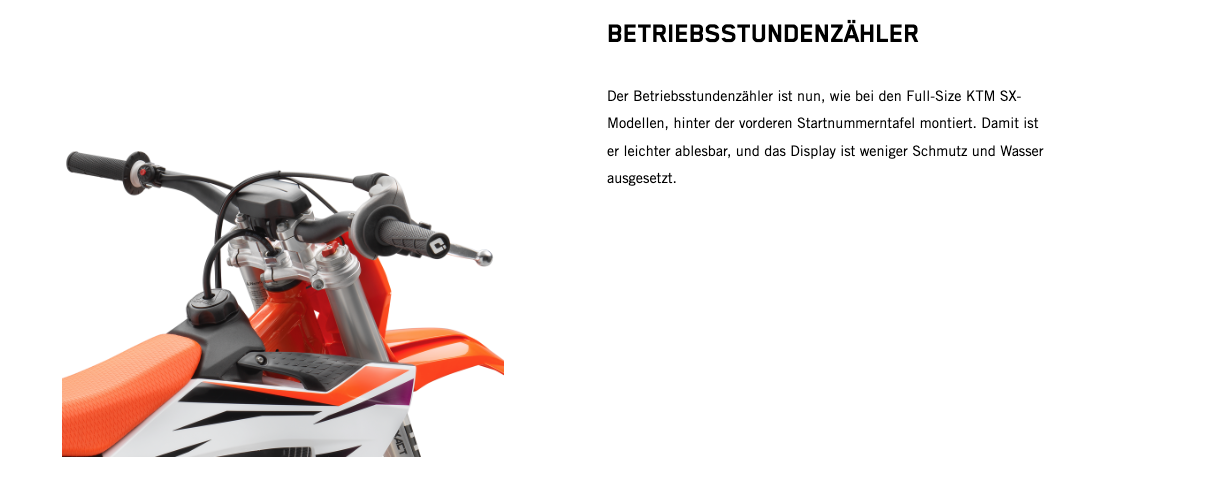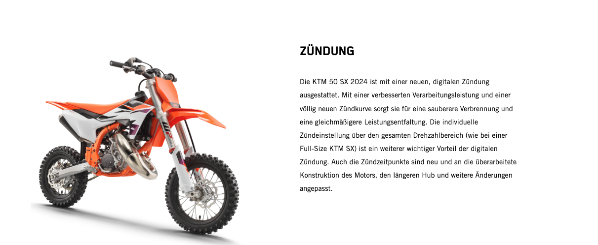 Wenn der nächste Schritt jener in die 50-cm³-Klasse ist, gibt es keine bessere Option als den Umstieg auf das leistungsstärkste 50-cm³-Bike. Zu den Highlights der KTM 50 SX 2024 gehören der robuste Stahlrahmen, ein leistungsstarker Motor, eine 35-mm WP XACT AER-Gabel, ein WP XACT-Federbein und ein modernes Formula Hydraulikbremssystem. Kurz: Dieses Bike ist der modernste READY TO RACE Mini-Crosser mit 50 cm³ Hubraum, der für deinen kleinen Rennfahrer erhältlich ist.