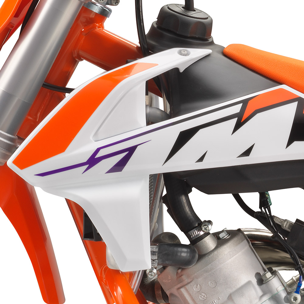 Die 2023er KTM 50 SX ist ein waschechtes READY TO RACE-Motocross-Bike. Als authentisches Motocross-Motorrad ist es – wie seine größeren Geschwister – mit hochwertigen Komponenten bestückt und wird auf Basis von Rennerfahrungen entwickelt. Das macht die KTM 50 SX zur ersten Wahl für einen Einstieg in die MX-Welt.