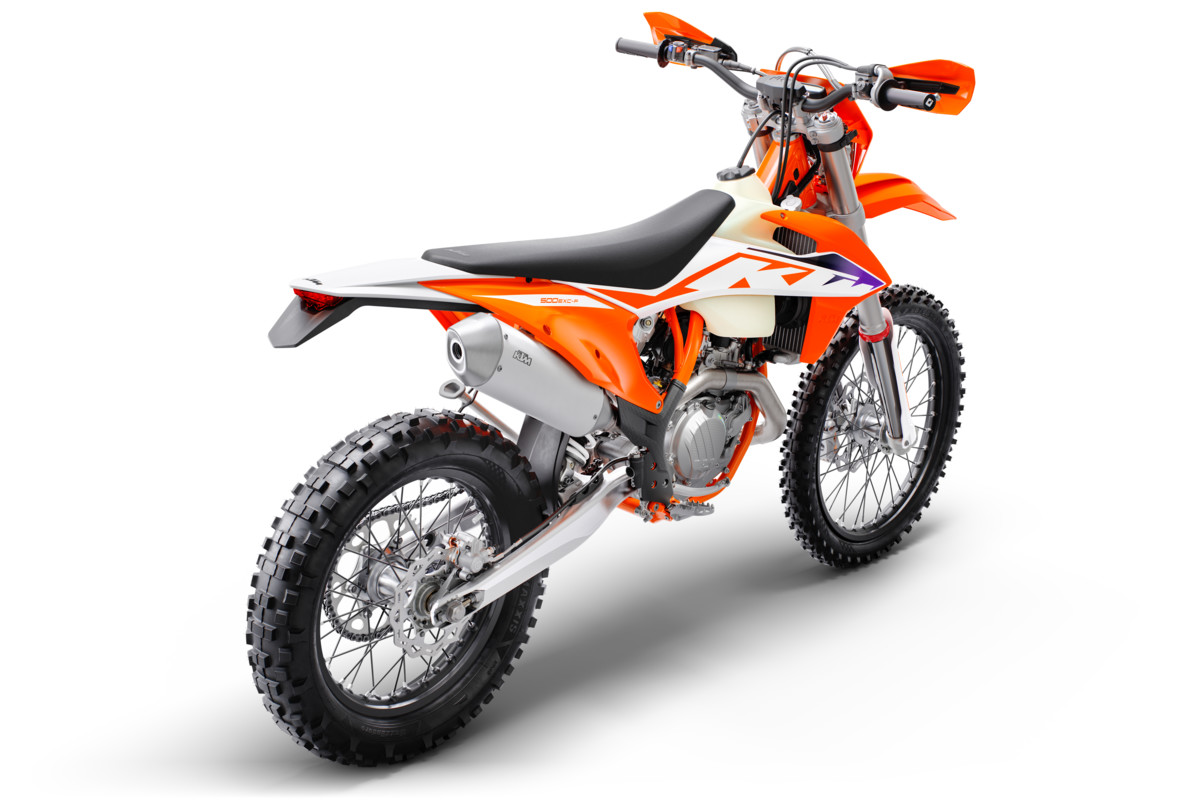 Die KTM 500 EXC-F des Modelljahres 2023 muss man sich vorstellen wie einen Vorschlaghammer. Brutal, effektiv und unbarmherzig auf jedem Untergrund. Dank eines wieselflinken Fahrwerks und seines noch kompakteren Hightech-Motors ist diese großvolumige Enduro aber überraschend leicht und wendig. Daraus resultierend besitzt dieser SOHC-1-Zylinder-Kracher mit 510 cm³ ein unglaubliches Leistungsgewicht und stellt nicht weniger dar als die dynamischste Option für Fahrten am Wochenende, Enduro-Rennen und sogar Rallys.