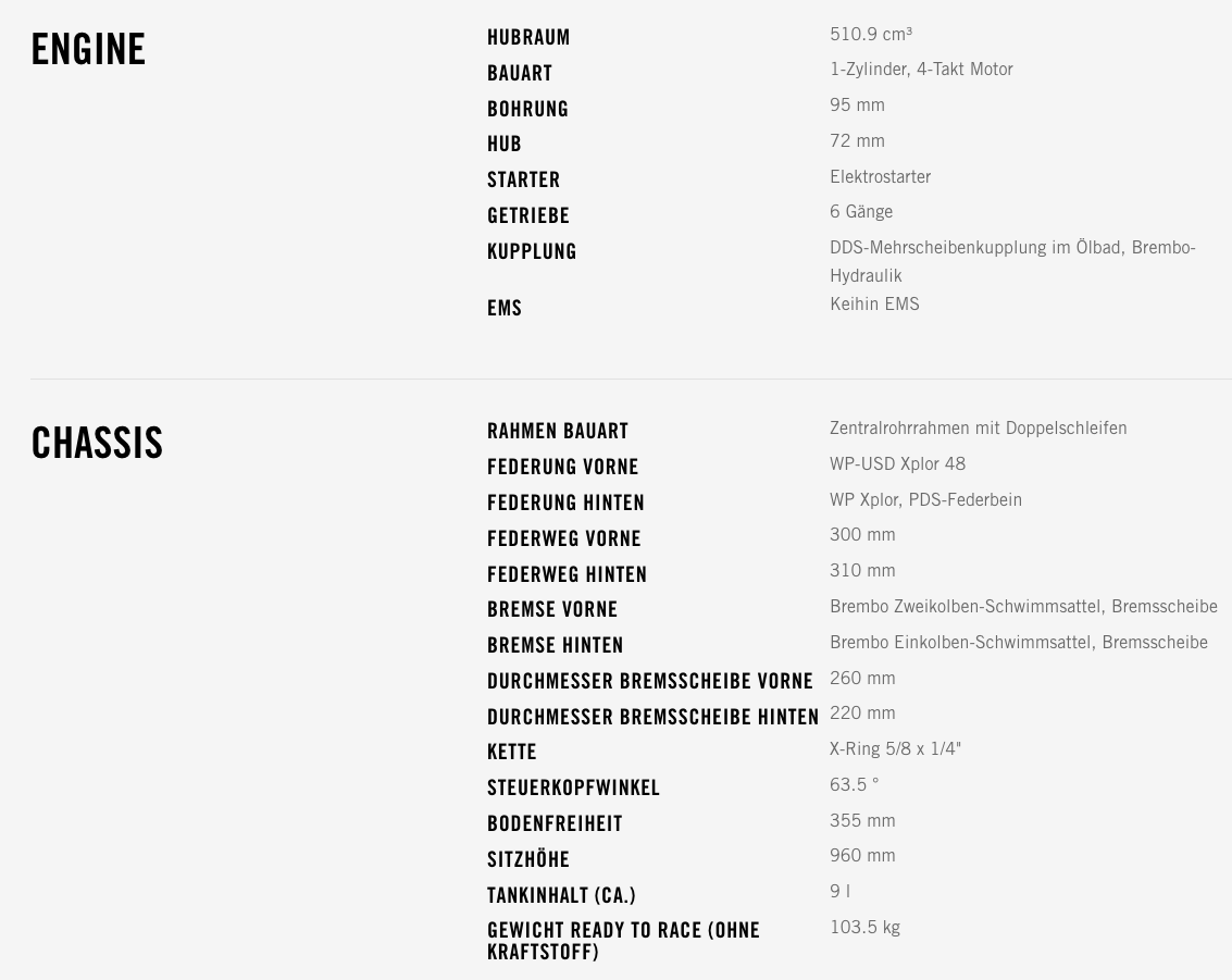 Keine andere Marke kann den Erfolgen KTMs im Enduro-Sport das Wasser reichen. Das wird bei der größten Veranstaltung des Jahres, den ‚International Six Days Enduro‘ (ISDE) immer wieder deutlich. Seit seinen bescheidenen Anfängen hat sich das ISDE zur Team-Weltmeisterschaft der Enduro-Szene entwickelt. Dieser Enduro-Marathon fordert seinen Tribut von Bikes und Fahrern und jedes Jahr läuft mehr als die Hälfte in der Farbe Orange auf. Im Jahr 2019 werden die International Six Days Enduro im anspruchsvollen Gelände Portugals ausgetragen. Jede Kette ist nur so stark wie ihr schwächstes Glied und so können jene, die das Ziel erreichen wollen, keine Kompromisse eingehen. KTM stellt sich der Herausforderung neuerlich mit der jüngsten, limitierten Version ihrer besonders hartgesottenen Six Days-Edition. Diese Motorräder sind über ihr besonderes Six Days-Design leicht zu erkennen und verfügen über eine breite Palette an Top-Komponenten, die von KTMs eigener Forschungs- & Entwicklungsabteilung speziell entwickelt und verfeinert wurden. Diese Bikes sind die ultimativen Enduros für diese Veranstaltung.