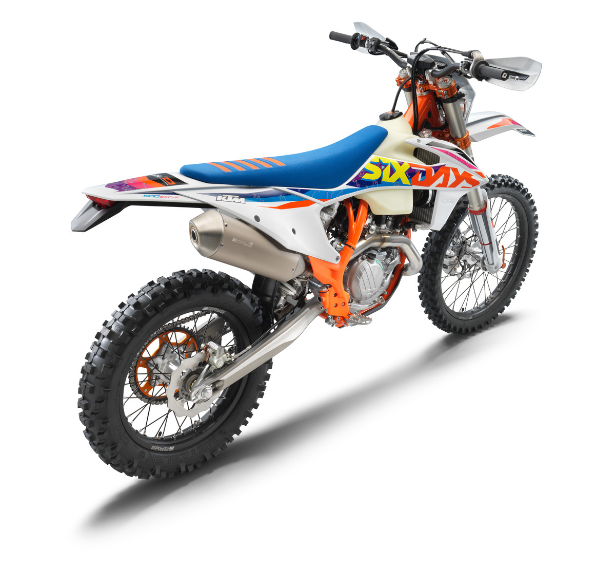 Mehr Punch hat keine andere im KTM-Arsenal: Die KTM 500 EXC-F SIX DAYS steht für all das, was wir an großen 1-Zylinder-4-Taktern lieben: Drehmoment, Beschleunigung und unerreichte Power. Diese spezielle Version glänzt mit brandneuen ISDE-Grafiken (‚International Six Days Enduro‘) und verfügt über eine breite Palette an Top-Komponenten, die von KTMs eigener Forschungs- & Entwicklungsabteilung speziell entwickelt und verfeinert wurden.