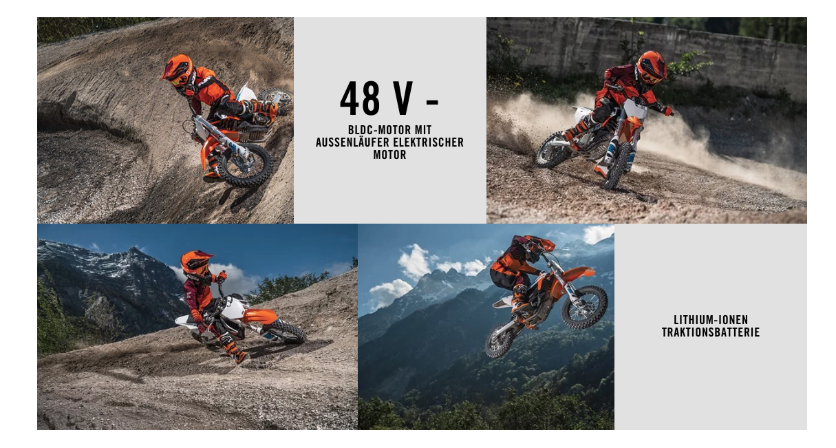 Es handelt sich hier um ein neu entwickeltes, hochwertiges, anpassungsfähiges READY TO RACE-Mini-Motocrossmotorrad mit Elektroantrieb, der sowohl auf Anfänger als auch auf erfahrene Junioren-Rennfahrer abzielt. Völlig emissionsfrei und ohne Geräuschentwicklung ist die KTM SX-E 5 das Nonplusultra bei den wettbewerbsfähigen Mini-Motocrossmotorrädern und eine legitime Alternative zu konventionell angetriebenen 50-cm³-Motoren, und sie wird ein neues Zeitalter im Rennsport einleiten. Die KTM SX-E 5 wird von einem kompakten Elektromotor angetrieben, der wiederum von einem starken Akkusatz gespeist wird, der praktisch keine Geräusche abgibt. Außerdem ist sie mit hochwertigen Komponenten ausgerüstet, welche sie deutlich von vielen elektrisch angetriebenen, aber eher an Spielzeug erinnernden Minicycles am Markt abheben. Hierbei handelt es sich um ein waschechtes Rennmotorrad mit geringer Geräuschkulisse, was sie für junge Fahrer attraktiver macht, die in Gegenden mit niedrigen Geräuschlimits fahren möchten.