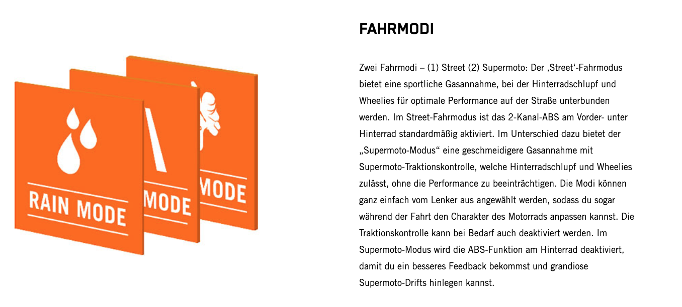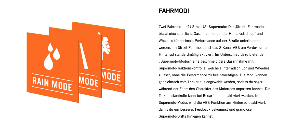 Repräsentatives Beispiel: Vorstehende Angaben stellen zugleich das 2/3-Beispiel gem. § 17 Abs. 4 PAngV dar. Ein Finanzierungsangebot der KTM Finance, ein Service-Center der Santander Consumer Bank AG, Santander-Platz 1, 41061 Mönchengladbach (Darlehensgeber). Angebot gültig bis: 30.04.2024. Alle Preise sind unverbindliche Preisempfehlungen der KTM Sportmotorcycle GmbH inkl. der gesetzlichen Mehrwertsteuer, zzgl. Überführungskosten. Änderungen, Irrtümer und Fehler vorbehalten. * Die Rückkaufvereinbarung wird zwischen dem teilnehmenden Händler und dem Kunden getroffen und ist kein Angebot der Santander Consumer Bank AG. ** Bonität vorausgesetzt.