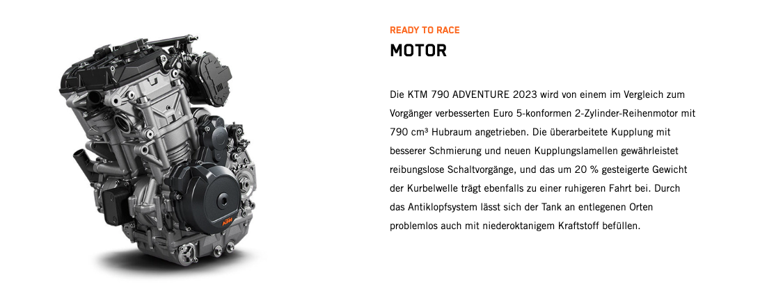 Die KTM 790 ADVENTURE 2023 wurde entwickelt, um Abenteuer auf zwei Rädern zu vereinfachen. Kompetent, komfortabel und kostengünstig: Dieses Motorrad erfüllt nicht nur alle Ansprüche an eine Adventure-Maschine, sie geht über alle Erwartungen hinaus. Mit einem drehmomentstarken 2-Zylinder-Reihenmotor und der besten Elektronik ihrer Klasse ist dieses Bike das beste Wahl für alle Fahrer, die sich nach dem Horizont sehnen.